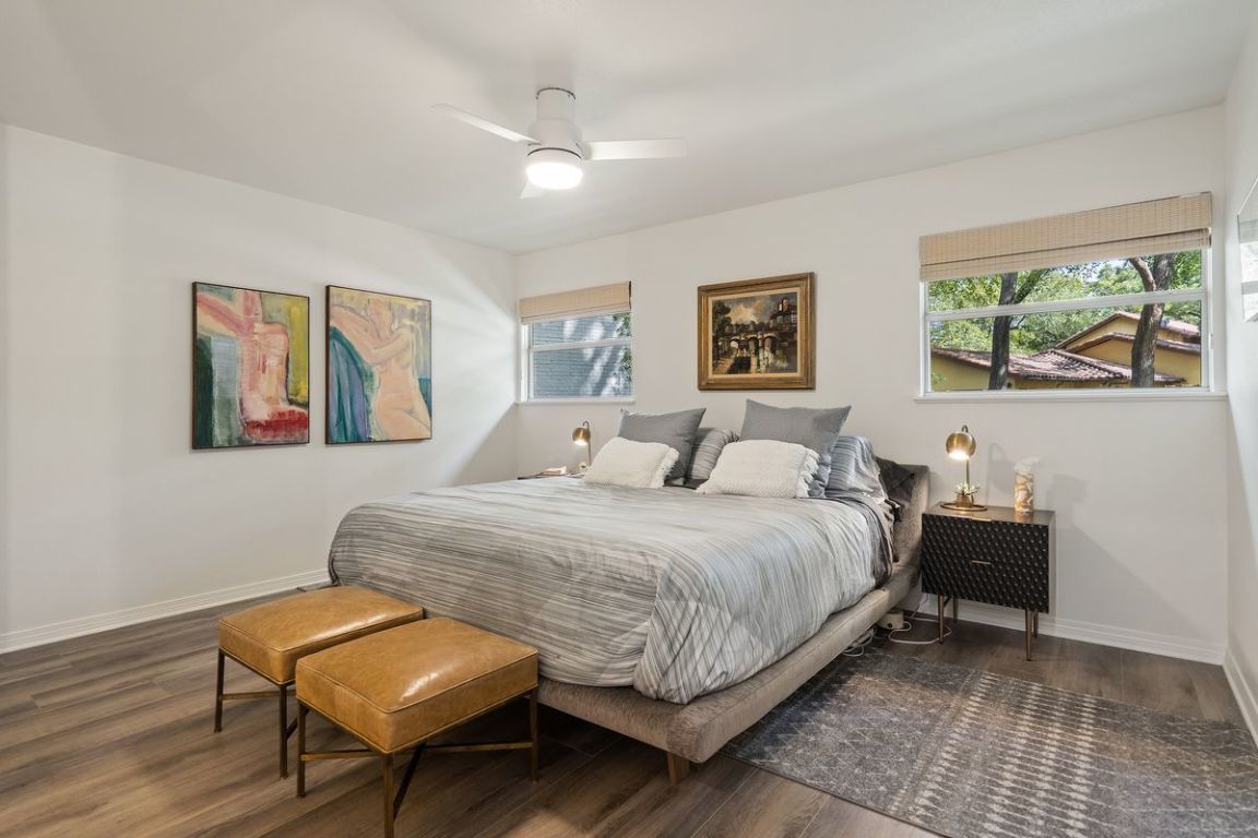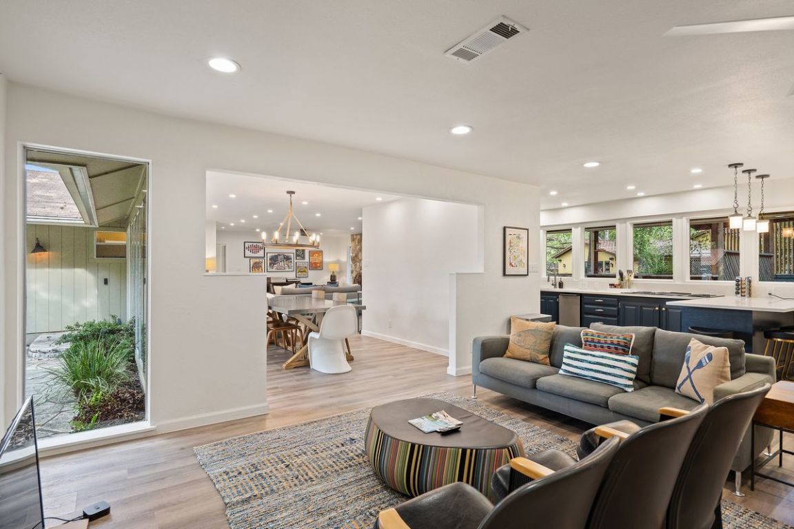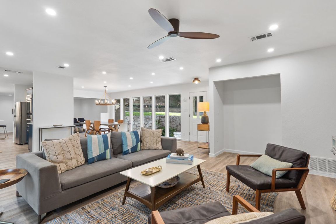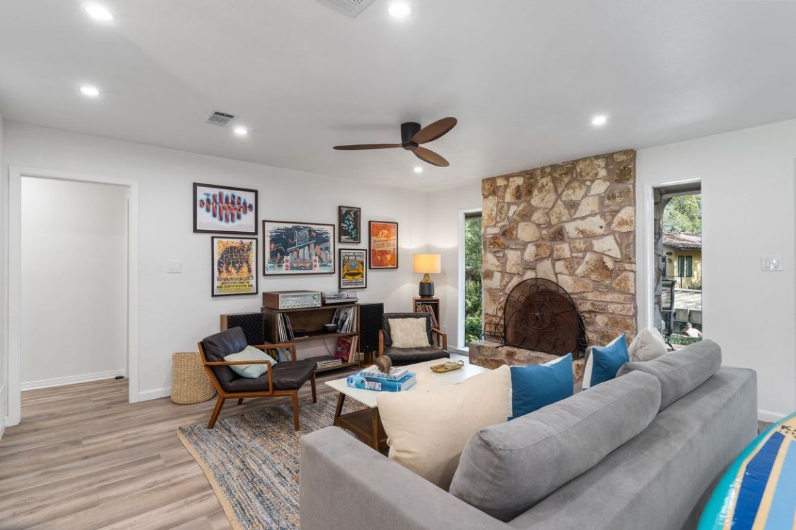 An exceptional one-story lakefront home tucked away in the highly sought-after Rivercrest community on Lake Austin. Located just west of the iconic Pennybacker Bridge, this hidden gem offers rare direct access to Lake Austin with a private boat slip and gazebo within the prestigious Eanes Independent School District. Situated at the end of a peaceful channel just off the main lake, this beautifully maintained home features a spacious and inviting layout with generous indoor and outdoor living spaces. Enjoy tranquil mornings and golden sunsets from the expansive flagstone patios in the front and back of the home, perfect for relaxing or entertaining guests. Step out your back door and onto your boat for a quick ride across the canal to local favorite Ski Shores Café, or cruise down the lake and soak in the beauty of West Austin’s lush, tree-lined shoreline. Whether you’re seeking weekend escapes or year-round lakefront living, this home offers the ideal blend of privacy, charm, and access to all the best of Austin. Don't miss this rare opportunity to live the lake life just minutes from downtown Austin.