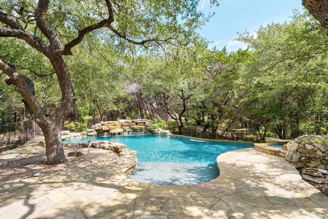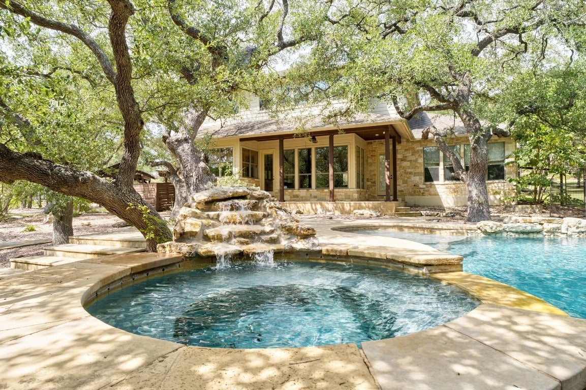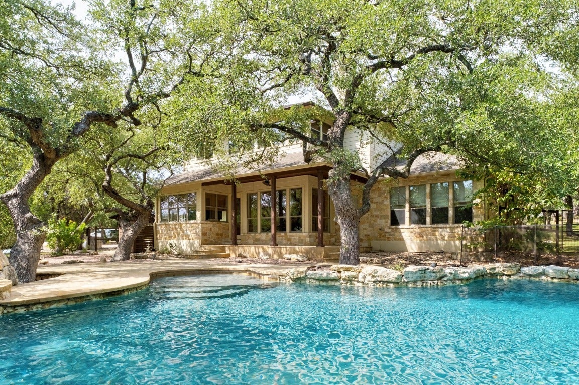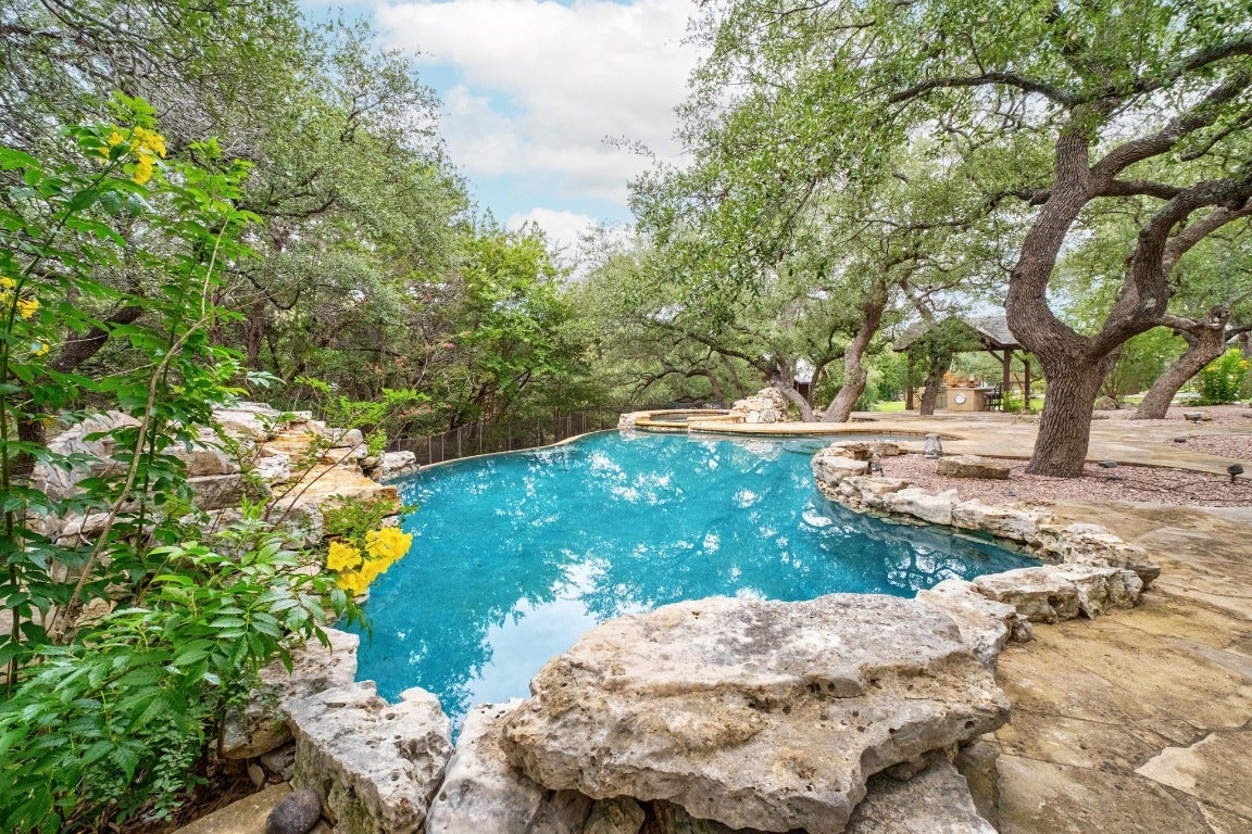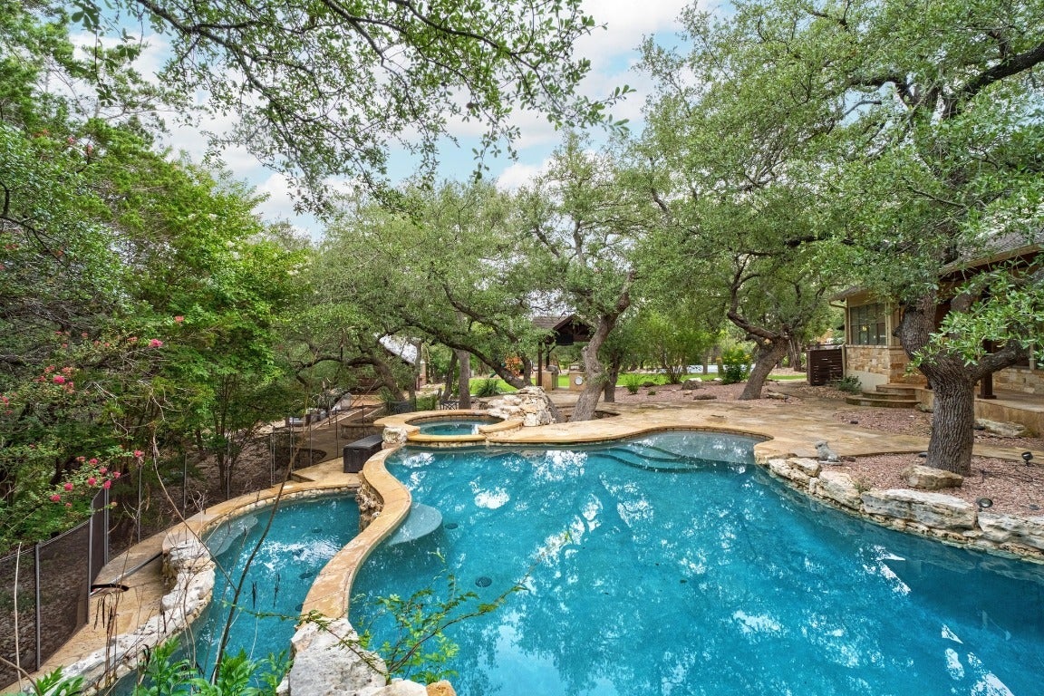 Discover this gated 1.67-acre Hill Country retreat offering privacy, craftsmanship, and comfort in the acclaimed Dripping Springs ISD. The custom stone home features quality updates and artisan finishes throughout, including an inviting living room with a classic stone fireplace that flows into the gourmet kitchen and breakfast area, ideal for everyday living and entertaining. The main level includes a spacious primary suite with a spa-like bath and custom walk-in closet, along with a separate flex/game room, dedicated office, and laundry room. Upstairs, you’ll find a second game room, three additional bedrooms, and two full baths, plenty of space for family and guests. Step outside to your own resort-style backyard featuring a pool, slide, hot tub, sport court, and a covered pavilion with built-in kitchen and grill. A separate 1BD/1BA guest house with loft offers endless options for your guest quarters, home office, or studio. The oversized garage includes a workshop and extra parking for guests, toys, or equipment. Sellers are offering a $10K allowance ($5K for upstairs flooring, $5K for window treatments) so you can personalize the space to your taste. All this just 20 minutes to Hill Country Galleria, enjoy serene Hill Country living with convenient city access.