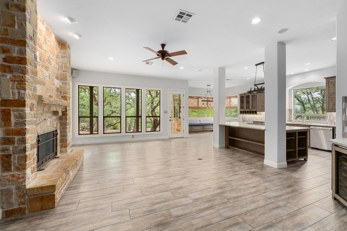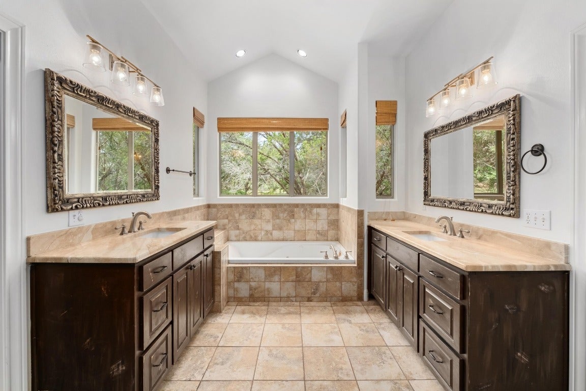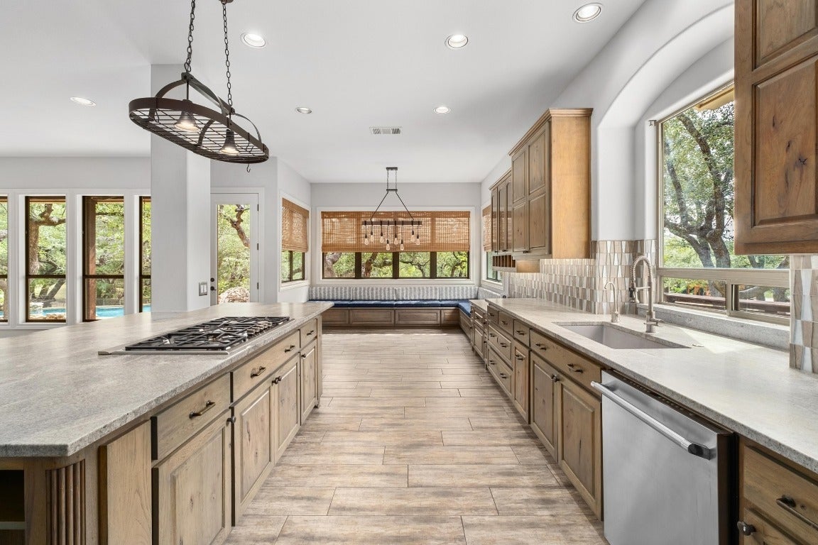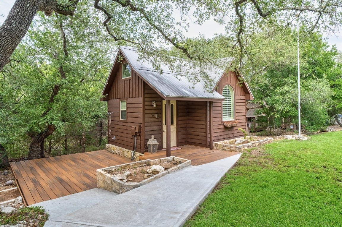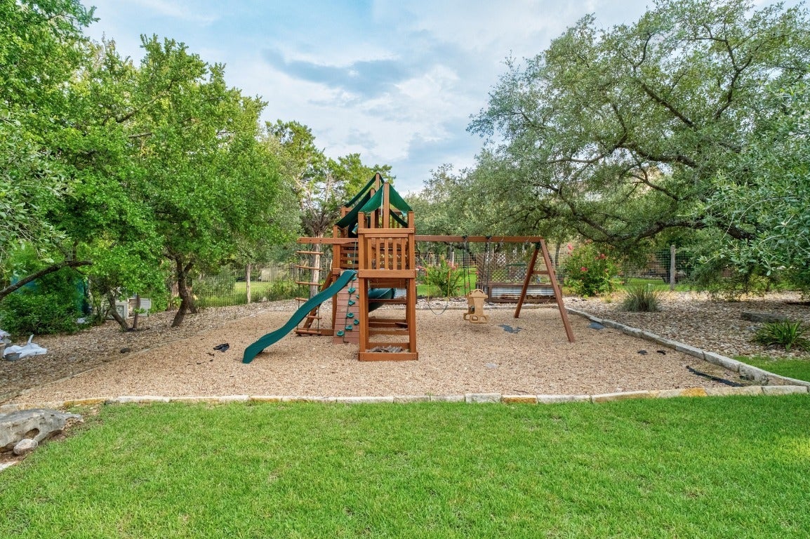Discover this gated 1.67-acre Hill Country retreat offering privacy, craftsmanship, and comfort in the acclaimed Dripping Springs ISD. The custom stone home features quality updates and artisan finishes throughout, including an inviting living room with a classic stone fireplace that flows into the gourmet kitchen and breakfast area, ideal for everyday living and entertaining. The main level includes a spacious primary suite with a spa-like bath and custom walk-in closet, along with a separate flex/game room, dedicated office, and laundry room. Upstairs, you’ll find a second game room, three additional bedrooms, and two full baths, plenty of space for family and guests. Step outside to your own resort-style backyard featuring a pool, slide, hot tub, sport court, and a covered pavilion with built-in kitchen and grill. A separate 1BD/1BA guest house with loft offers endless options for your guest quarters, home office, or studio. The oversized garage includes a workshop and extra parking for guests, toys, or equipment. Sellers are offering a $10K allowance ($5K for upstairs flooring, $5K for window treatments) so you can personalize the space to your taste. All this just 20 minutes to Hill Country Galleria, enjoy serene Hill Country living with convenient city access.