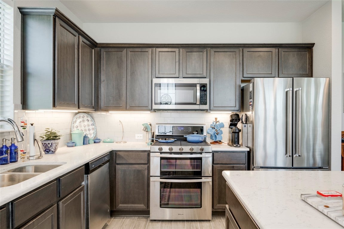 Dryer, Dishwasher, Gas Range, Microwave, Range, Refrigerator, Washer
