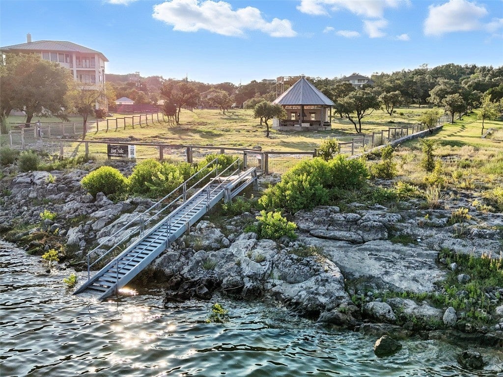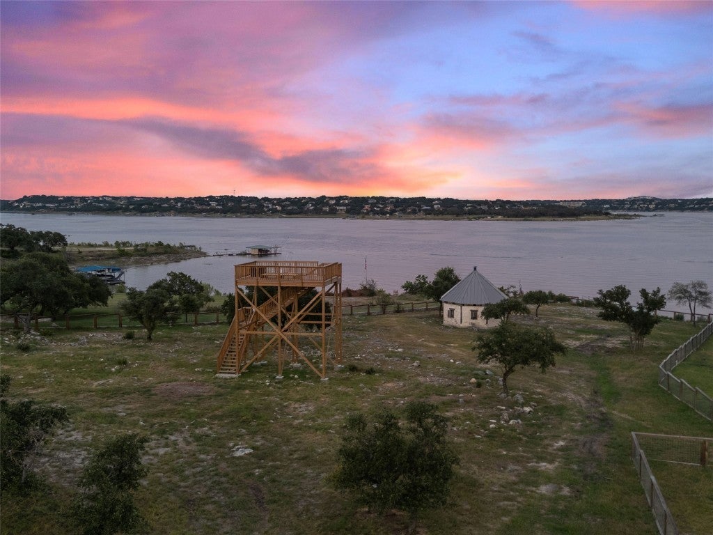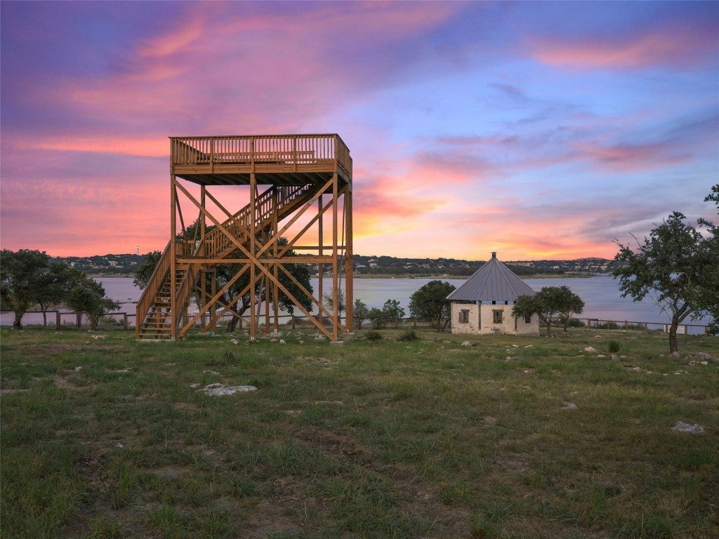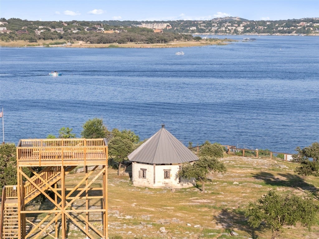 Spectacular 1.9 acre Lake Travis waterfront lot in the heart of Siesta Shores captures one of the best views of the adjacent Signature 5th Par 3 at Travis Club. This rare property boasts an exquisite gazebo visible from Travis Club, Austin's newest and most exclusive luxury golf club. (Artist renderings TravisClubAustin.com.) A viewing platform has been constructed at approximately 721' MSL (LCRA building guidelines) so the new owners may enjoy the breathtaking views of the oh-so-close Signature 5th green and expansive views of Lake Travis all the way from the cliff walls in Lago Vista across from the Reserve through Rough Hollow to Lakeway Resort! This property is ready for the new owners to build their dream estate; the property is fully fenced with 12' gate, 300 amp electrical service from PEC at the boathouse stairs with double railings (down to 656' MSL) serving the deep-water cove. Unincorporated Travis County and friendly POA provide limitless possibilities for unencumbered building of your dream lakefront estate with both waterfront access and views of the exclusive Travis Club golf course. Siesta Shores is a cherished community on the south shore of Lake Travis boasting two community parks and three boat ramps ensuring you will always have access to Lake Travis whether on your private boathouse or through the community parks and deep-water boat ramps. Siesta Shores Drive is currently under renovation by Travis Club and will soon enjoy a wonderful upgrade with two overhead passes serving Travis Club residents. This magnificent property is located within award-winning Lake Travis ISD and mapped to West Cypress Hills Elementary, Lake Travis Middle School, and Lake Travis High School. Do not miss this unique opportunity to enjoy the benefits of being on Lake Travis waterfront, adjacent to Travis Club, with none of the architectural restrictions required by an exclusive luxury club.