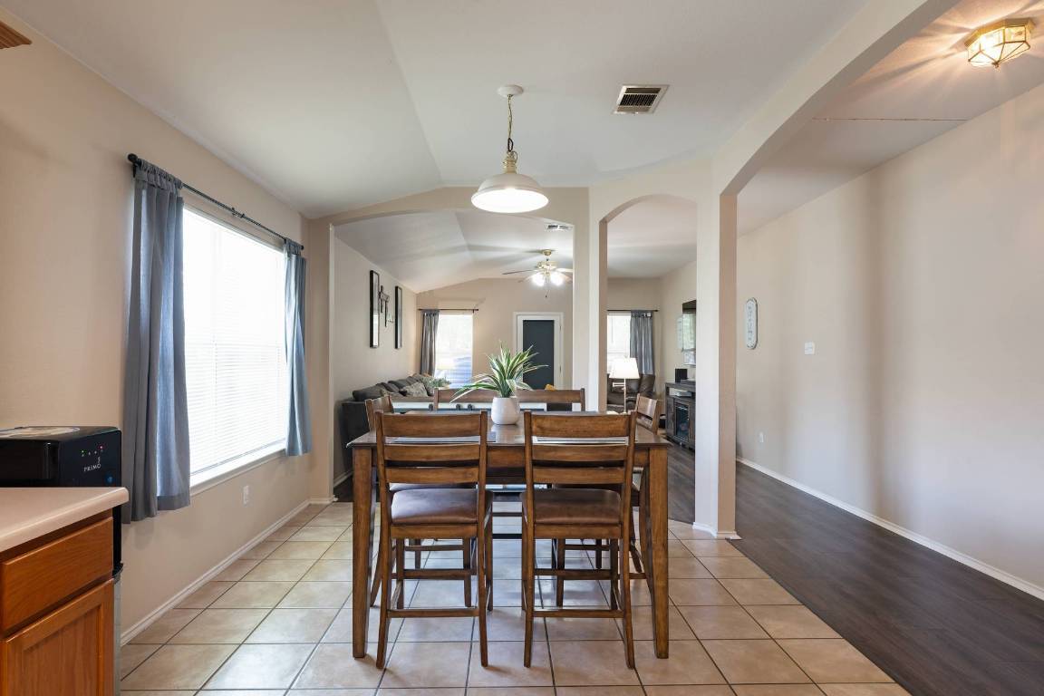Priced almost $25K below county appraisal district!!! Bring me your offers! Welcome to this spacious 3-bedroom, 2-bathroom home located in Hutto’s Creek Bend neighborhood. With nearly 2,000 square feet, this home offers flexibility and function. A front flex room greets you at the entrance—currently used as a formal living space, it could easily serve as a home office, formal dining, or playroom. The large kitchen features a tile backsplash, generous counter and cabinet space, a pantry, and an attached dining area. The primary bedroom is a true retreat with a separate sitting area that’s perfect for a nursery, reading nook, or bonus TV space. The en-suite bathroom and walk-in closet complete the suite. Flooring throughout includes tile, wood-look LVP, and carpet in the bedrooms. Enjoy outdoor living with a covered front porch and a spacious backyard patio. The home also includes a 2-car garage. Creek Bend offers community amenities including a pool, park, playground, and picnic area—everything you need for relaxing weekends or active afternoons.