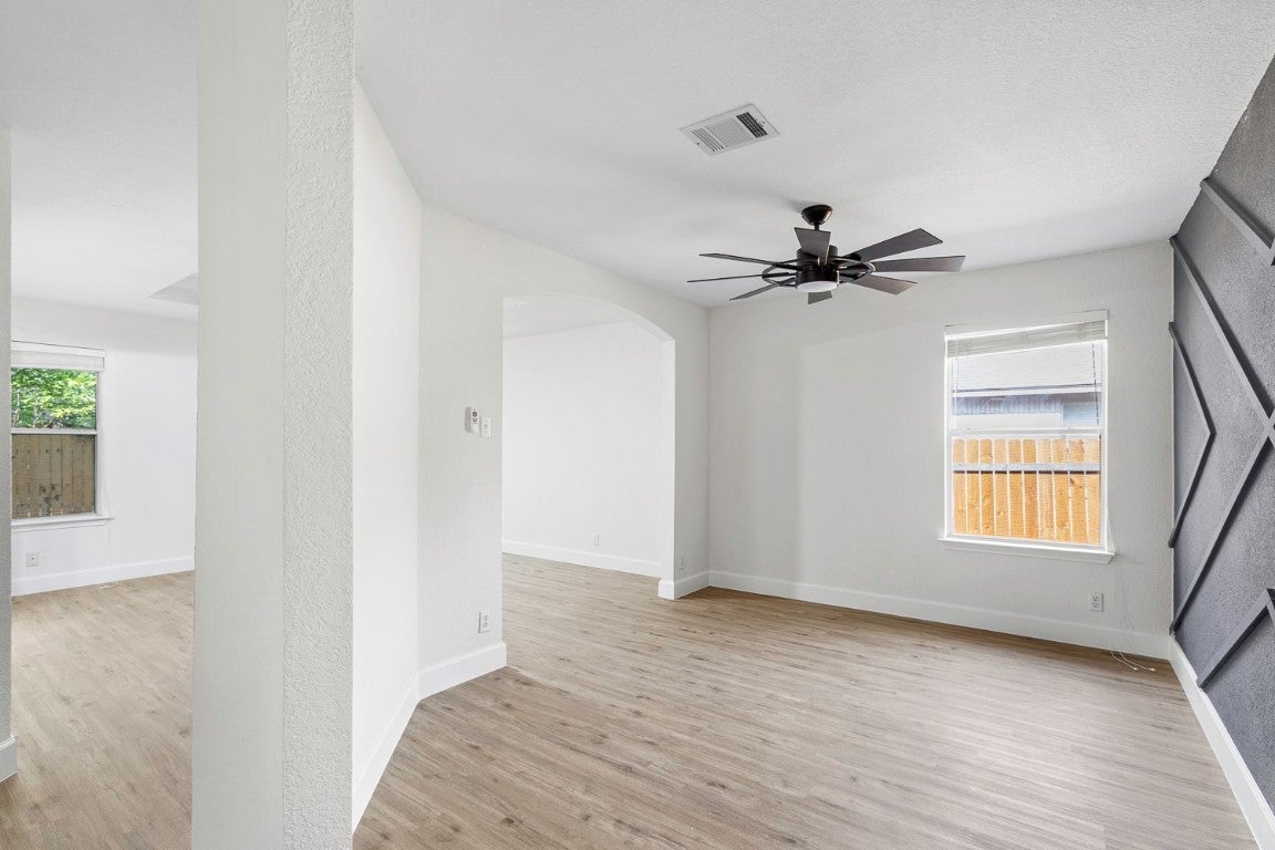 Step into comfort and style in this beautifully remodeled single-story home nestled in the heart of Bastrop’s Riverside Grove community. The open-concept layout seamlessly connects the dining, kitchen, and living areas—anchored by a cozy gas fireplace—perfect for entertaining or relaxing evenings in. Enjoy a spacious primary suite with a bonus sitting room, walk-in closet, dual vanities, soaking tub, and walk-in shower. Ceiling fans throughout the home ensure year-round comfort. The shaded backyard offers privacy and tranquility, ideal for weekend BBQs or quiet mornings. A newly replaced fence adds security and charm. Recent Upgrades Include, Luxury vinyl plank flooring throughout, new roof and exterior doors, fresh interior/exterior paint with stylish accent walls, black fixtures in kitchen and bathrooms, new cabinetry and bathroom lighting, modern appliances (gas range, refrigerator, and more).Prime location minutes from H-E-B, Bastrop Schools, Bob Bryant Park, and the Colorado River. Easy access to Hwy 71 makes commuting a breeze. Low Annual HOA – Just $85/year