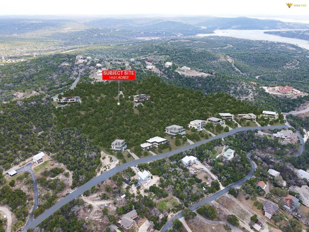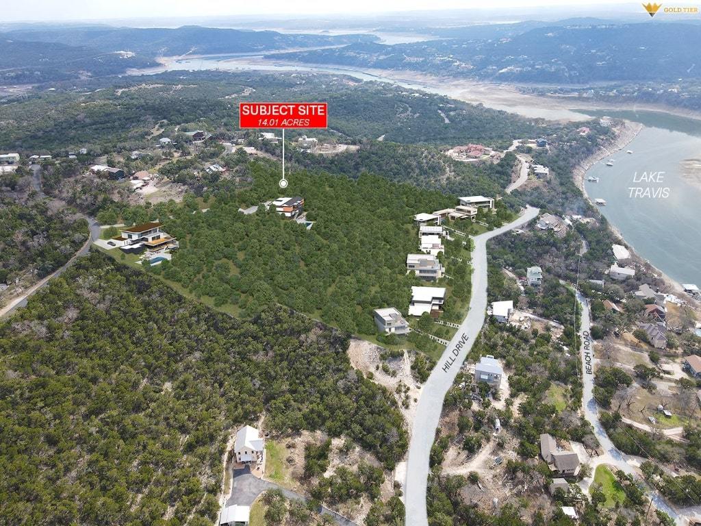 14.01 unrestricted acres with a stunning panoramic view of Lake Travis. The property has frontage on multiple paved roads Hill Drive, Beach Road and Johnson Road, allowing for future subdivision potential. The property currently has electric, 6” water line and AT&T to the site along Beach Road and Hill Drive. The property presents an opportunity to develop a beautiful and secluded residential community or build a millionaires dream estate. The property's location offers easy access to nearby attractions, including H.E.B., Starbucks, Walmart and more within a 7 minute drive. Downtown Austin is a short drive away. *Buyer to confirm development potential independently. Broker is the owner of the property.*