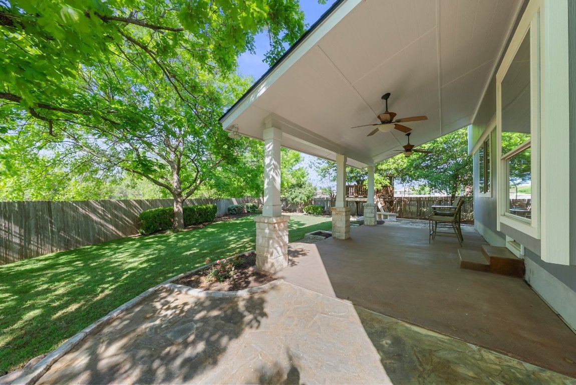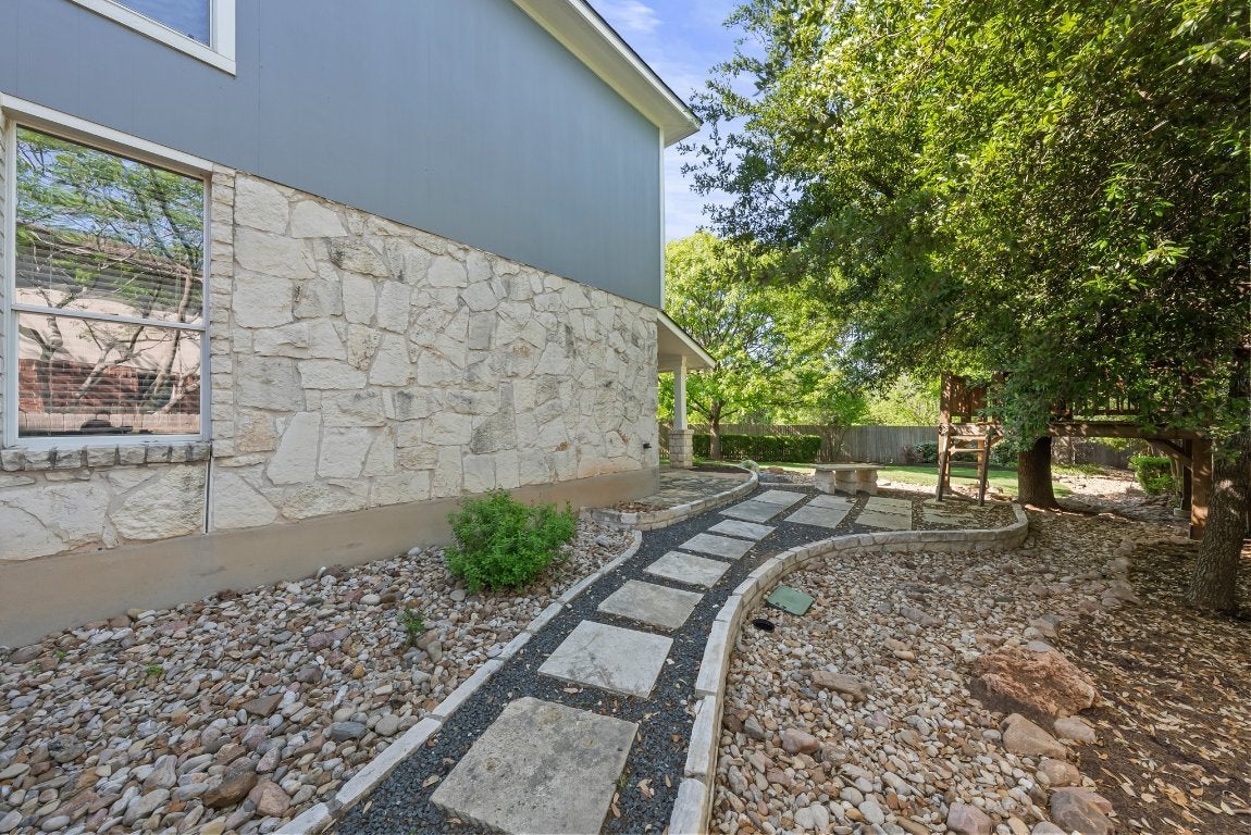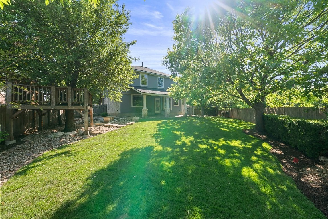 Great location just minutes from HEB and near 183A. Leander School District. House has MANY upgrades and custom features - rounded corners on all walls, arched openings, crown molding, high baseboards... too many features to list (see documentation included in listing)! The home has been very well maintained and is sparkling clean. Granite, custom dining area attached to large breakfast island. Unique, hard-to-find features that have been added to this home. Hard floors in common areas and Master. Pie-shaped lot on cul-de-sac backs up to a greenbelt and affords excellent privacy. Very rare for this type of neighborhood. No staring into a neighbor’s house! All you can see from the extra-large back porch are huge shade trees and acres of green space. Beautiful landscaping, a firepit and large storage shed complete the backyard paradise.