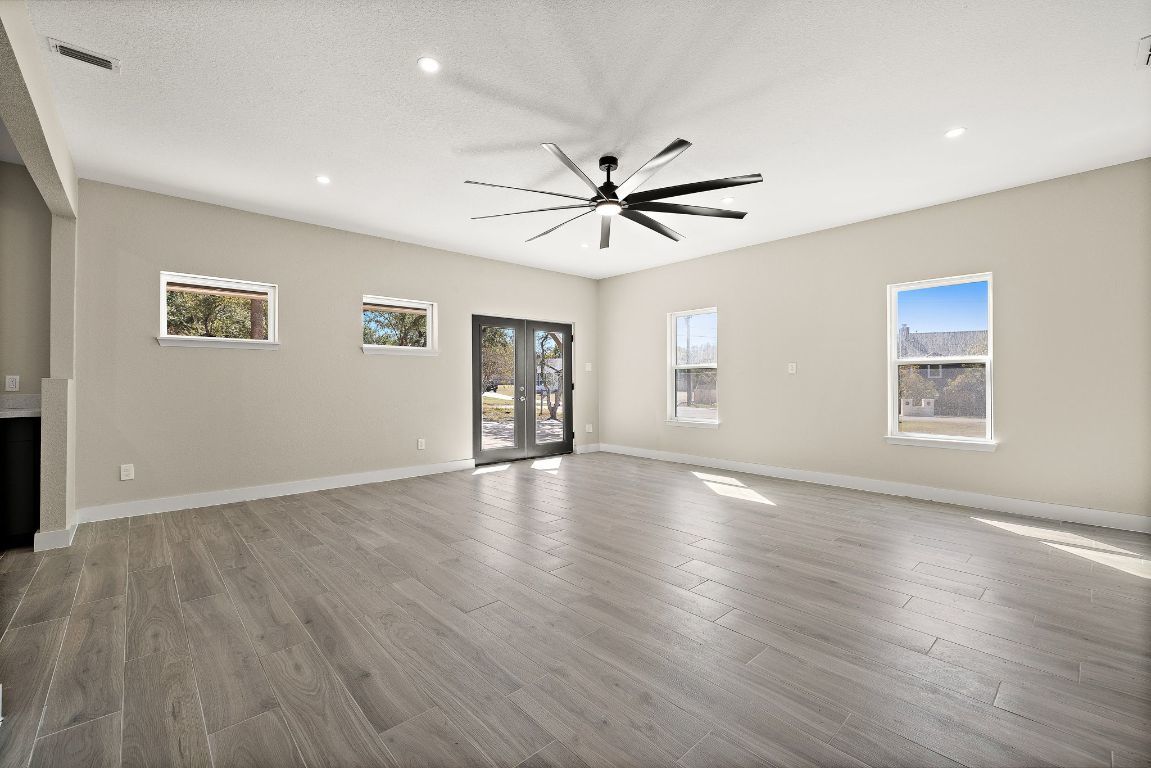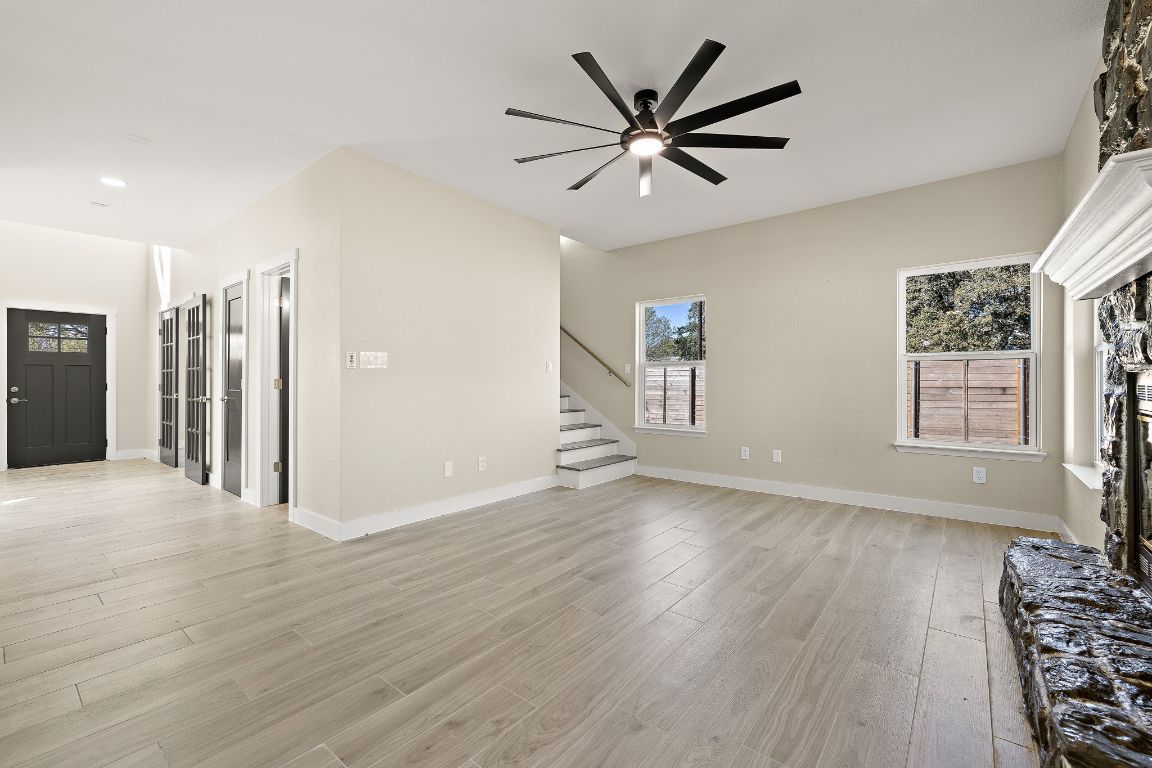 Luxurious modern cul-de-sac home on half an acre in the beautiful Blanco River Crossing neighborhood of Kyle. Completely remodeled with centerpiece kitchen – Custom cabinets, Stainless Steel Appliances, Corian Countertops. Fresh Paint throughout, New Flooring, New Windows, Upstairs Utility/Craft Room, Walkthrough Primary Closet with custom cabinetry, All New Appliances, Plumbing Fixtures and Fans, Large rear Patio, Mud Room/Half bath off of Patio, Two Outdoor Storage/Utility Buildings. No HOA. Easy Access to Five Mile Dam Blanco River Park and Soccer Fields, HEB, Sprouts, and more. Assigns to Blanco Vista Elementary, Wallace Middle School, and Hays High School.