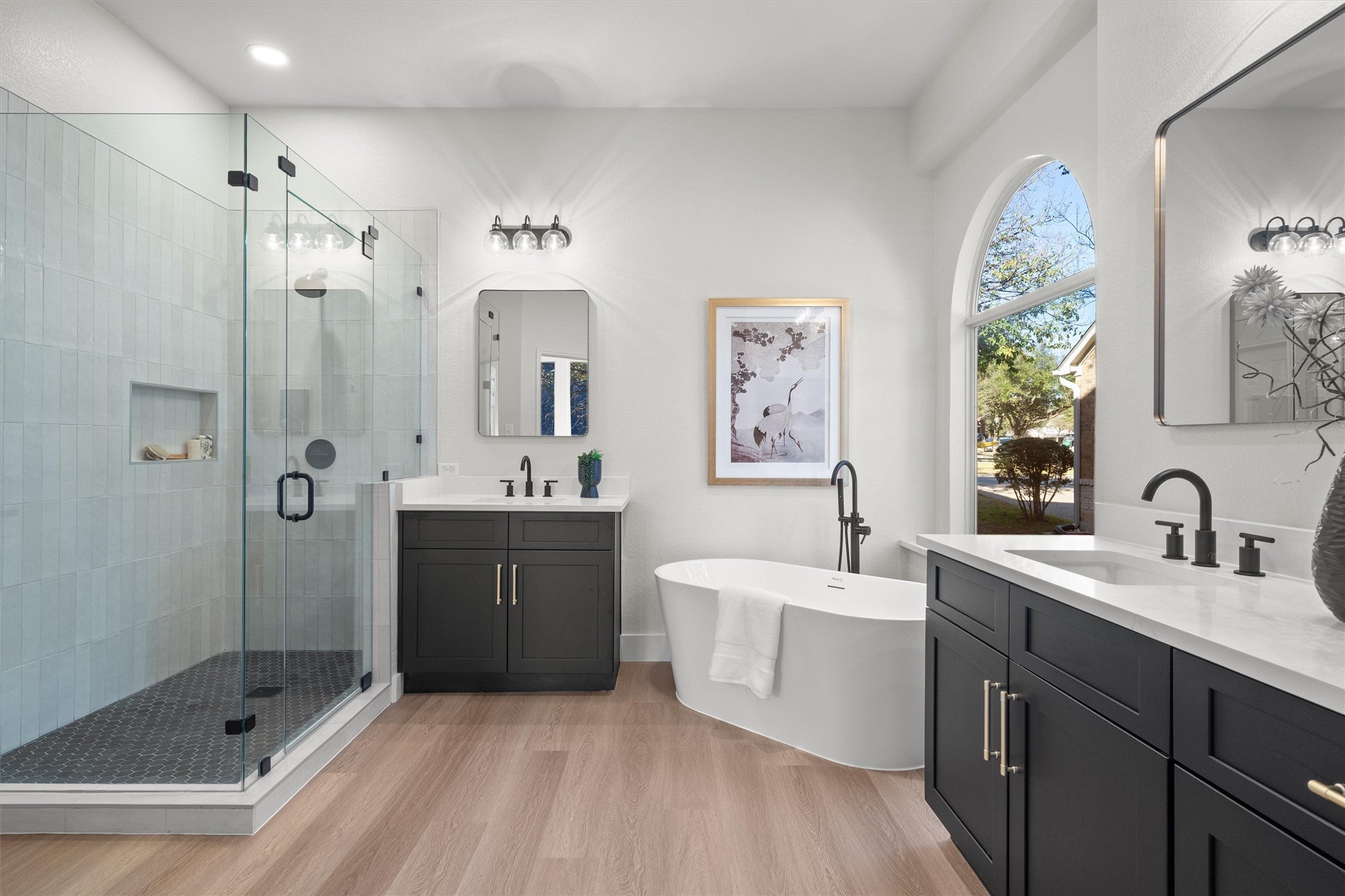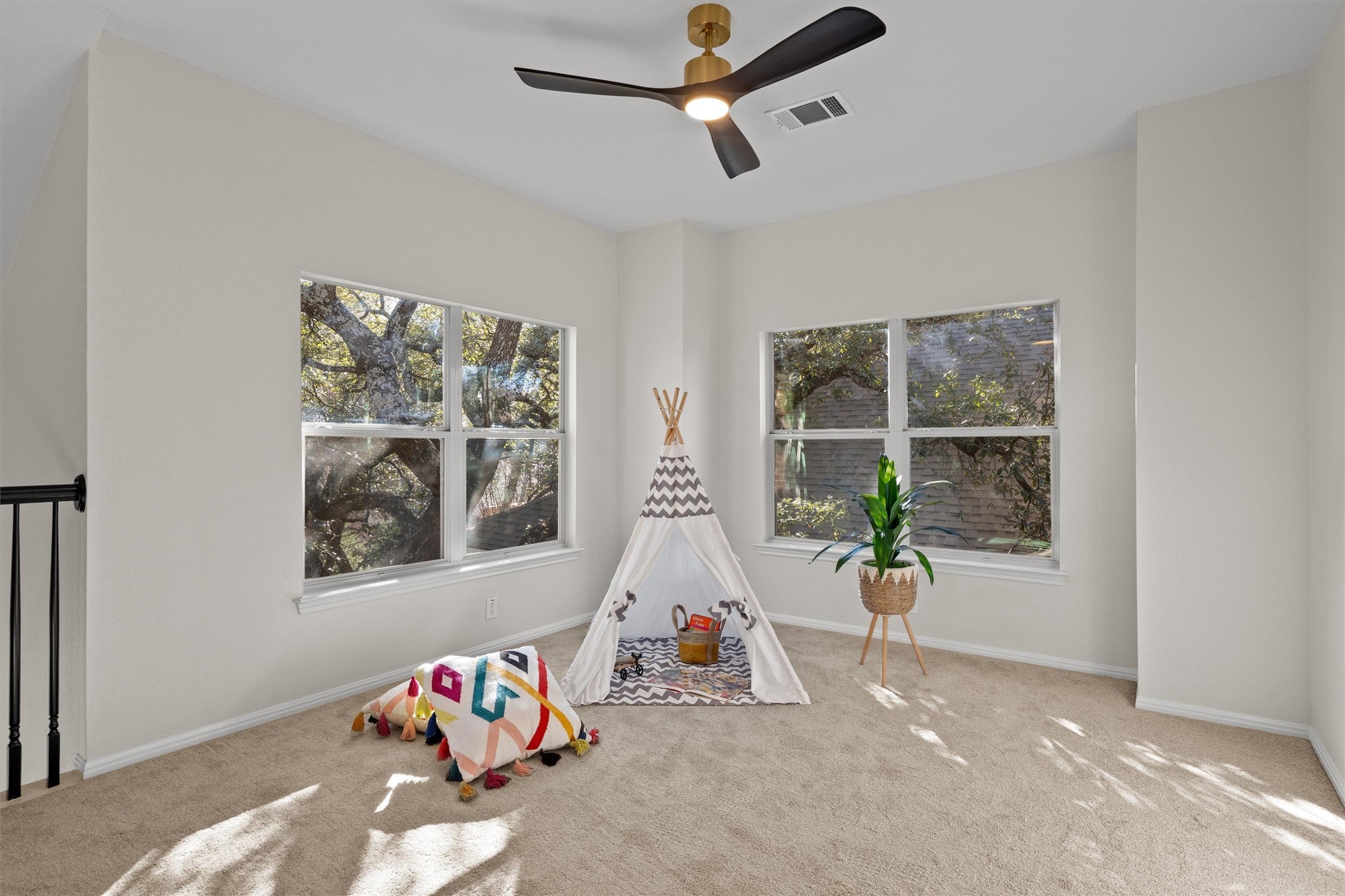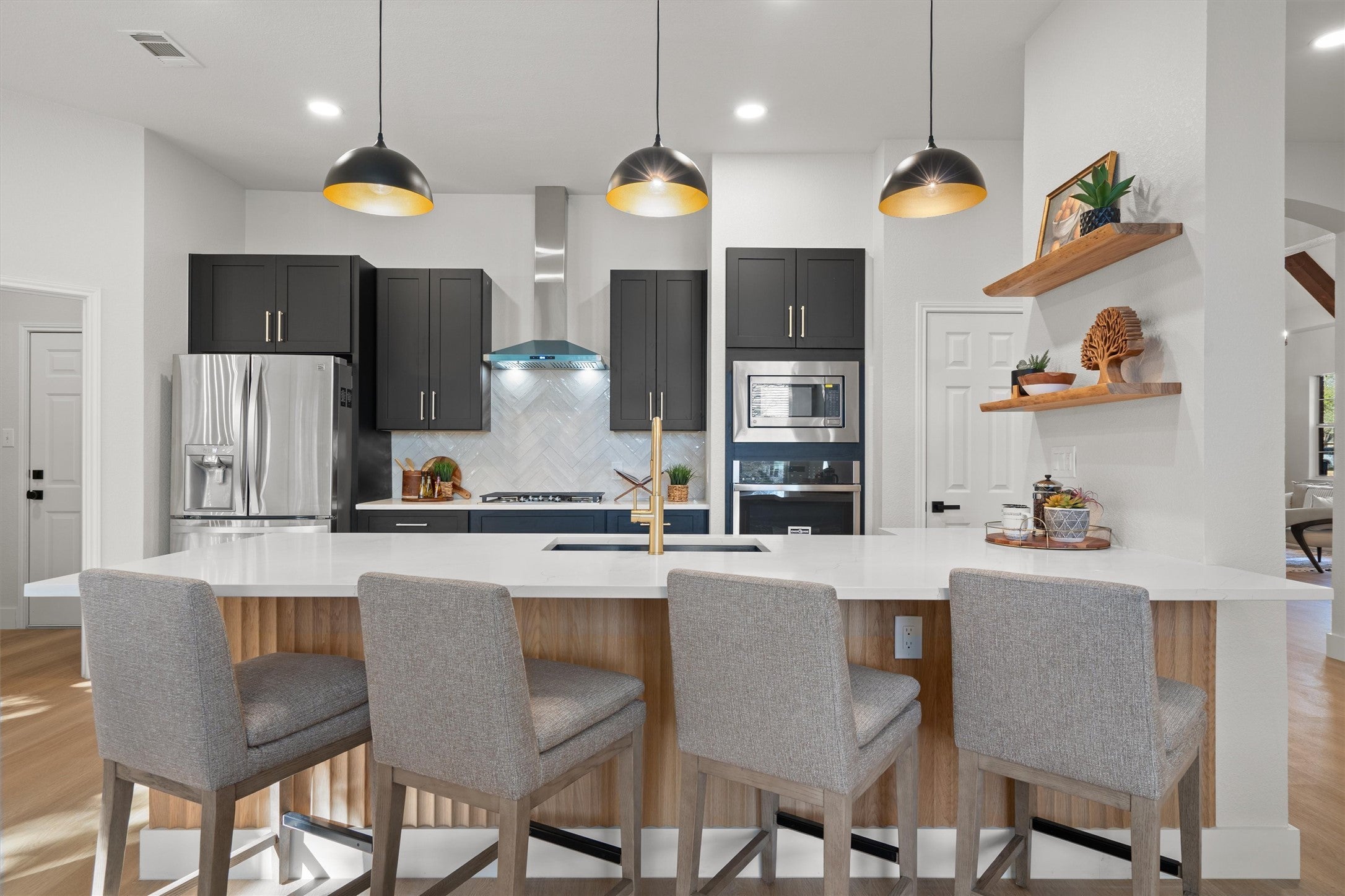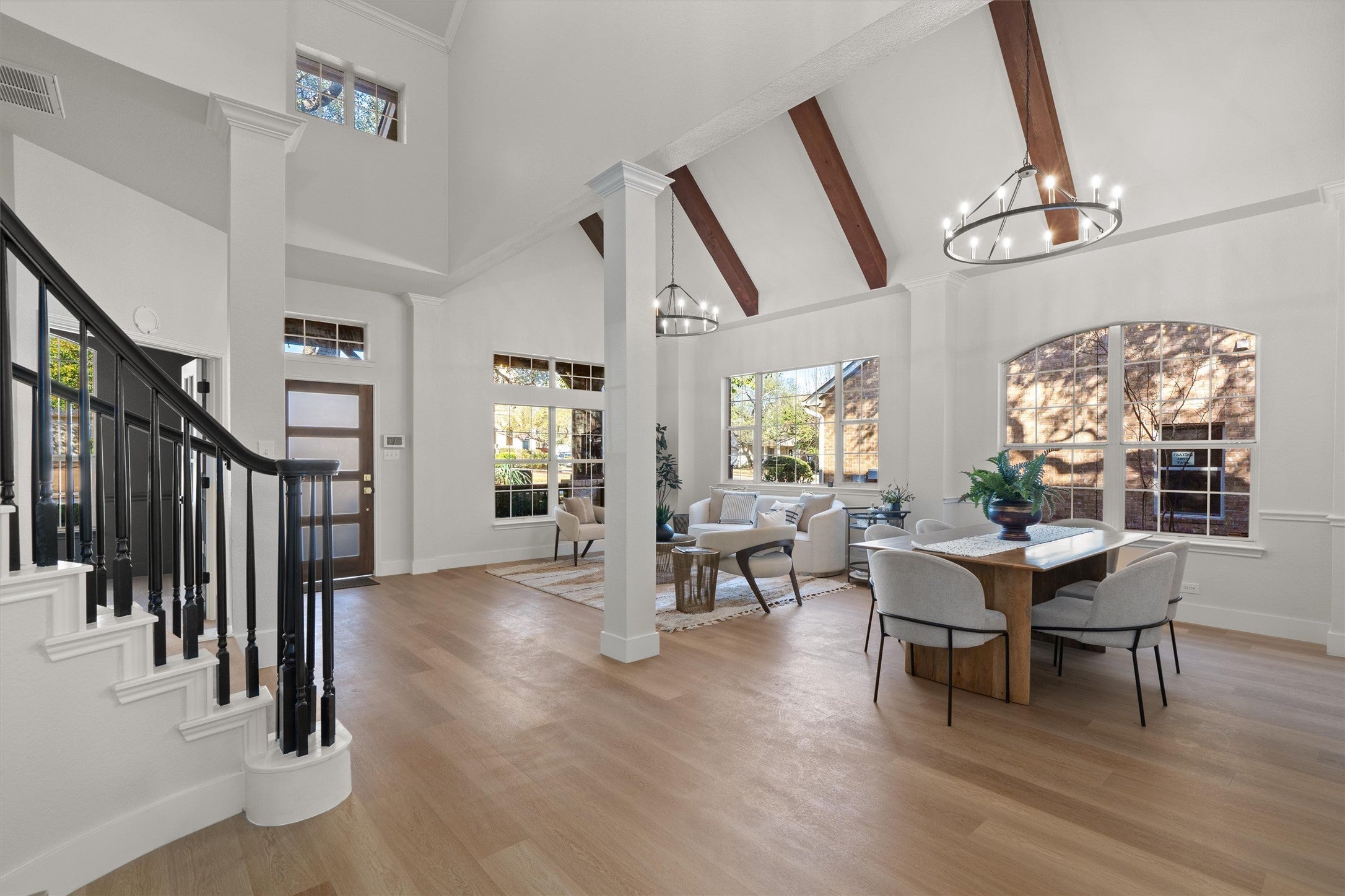 Beautifully remodeled and move-in ready, 4-bedroom, 3.5-bath home located in the highly sought-after Twin Creeks Country Club community. This spacious layout features two primary suites, three living areas, two dining spaces, and a dedicated front office, offering exceptional flexibility for multi-generational living or work-from-home needs. The home has been fully updated with a completely renovated kitchen and bathrooms, new flooring throughout, a high-end Vivint security system, and thoughtful modern finishes. Outdoor living shines with a cozy front porch, large back patio, and a two-level backyard deck overlooking artificial turf, flower beds, and mature oak and crape myrtle trees. Residents enjoy access to premier Twin Creeks amenities, including a Fred Couples–designed golf course, a clubhouse with a restaurant and bar, fitness center, pools, tennis courts, trails, and more.