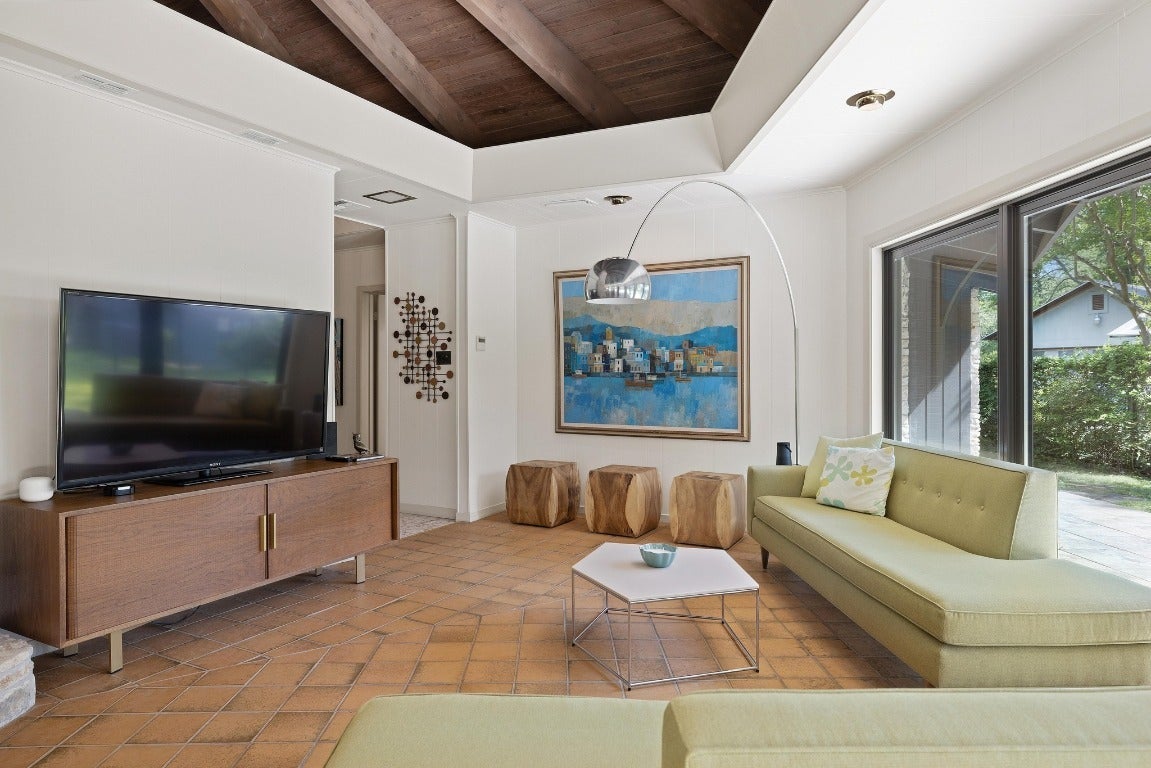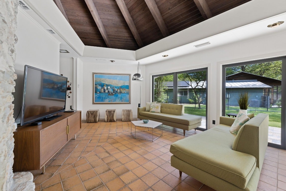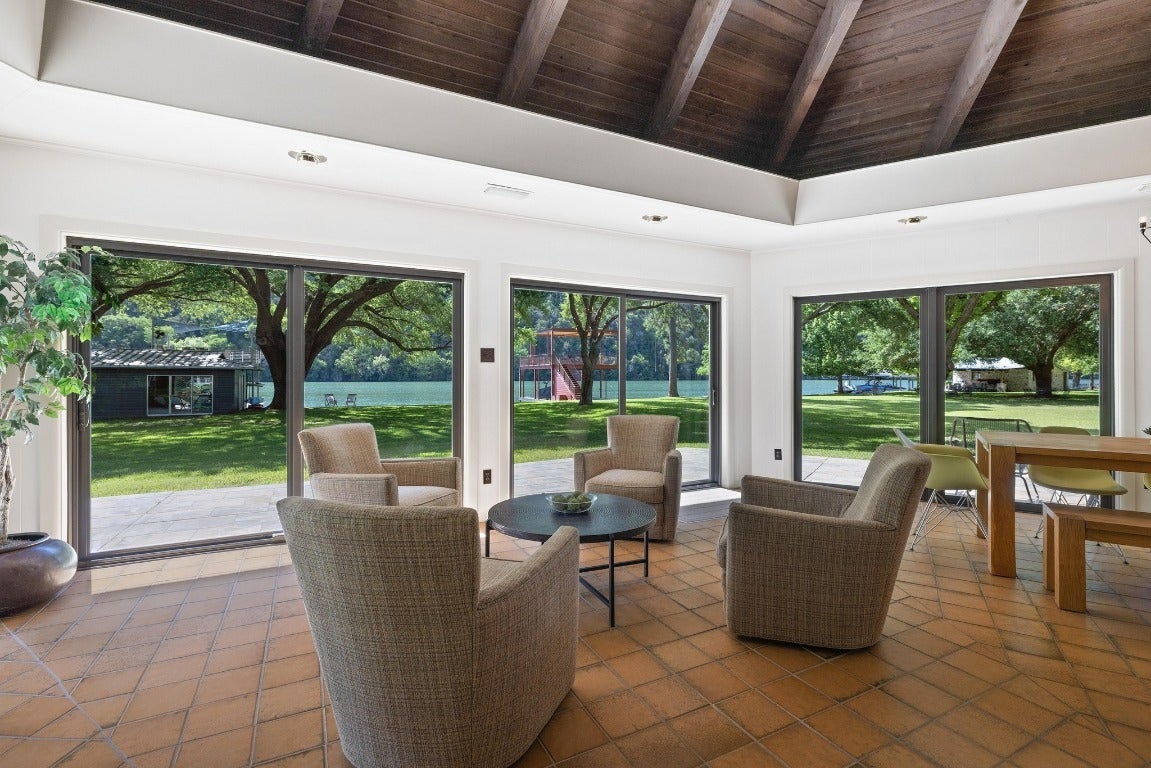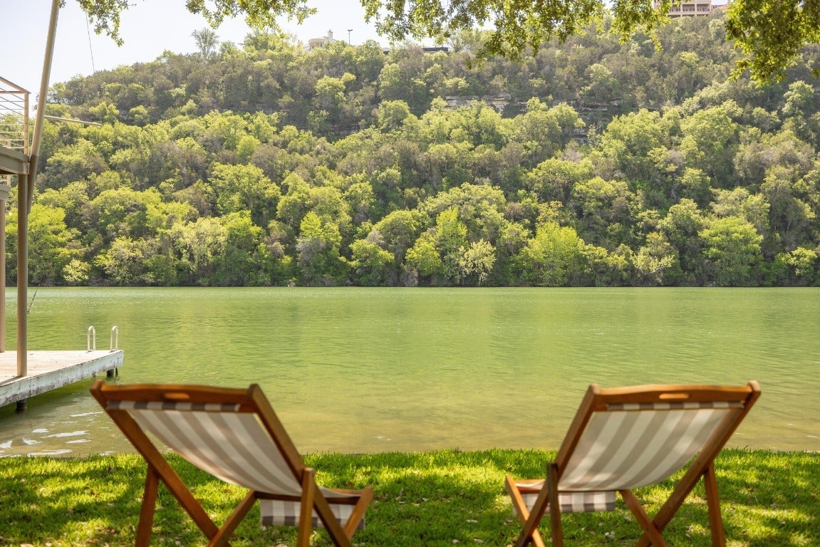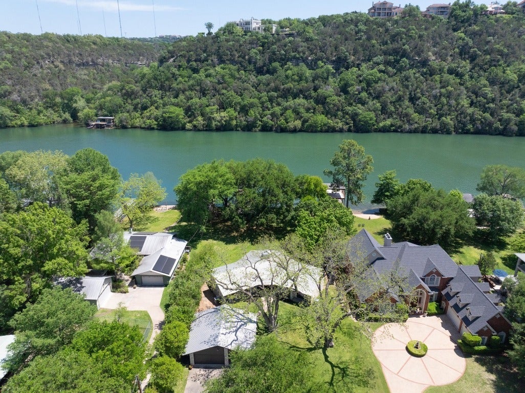 Set on one of the most iconic stretches of Lake Austin, 2401 Manana St. is a rare midcentury retreat that effortlessly balances architectural pedigree with laid-back Lake Austin living. Inspired by Frank Lloyd Wright’s organic aesthetic, the rotunda-style home features dramatic yet welcoming vaulted ceilings, warm teak cabinetry in the updated kitchen, and sliding glass doors throughout the entire living and dining space that opens to the expansive, flat lawn. Shaded by a canopy of mature oak trees and two producing heritage pecan trees, the lawn leads you gently toward +/- 100’ of private waterfront, where iconic oak trees frame the view. The calm waters here are ideal for water skiing, wakeboarding, and wake surfing—one of the best stretches on the lake for smooth conditions. The main house includes three bedrooms and two full bathrooms, while a detached two-car garage and guest suite offers its own living space, bedroom, and bathroom. On the water, a rare, grandfathered boathouse includes a full bathroom and lounge outfitted with a kitchenette, and the recently updated two-story boat dock features ipe decking, a hydraulic boat lift, touchless boat cover, shaded lounging and sunbathing areas, and even a jump gate into the lake. The property also boasts a full-yard sprinkler system and an updated water purification system. Located on a coveted neighborhood street, this home is within walking distance of Ski Shores Café (but just far enough to avoid the crowds), close to the natural beauty of Emma Long Park and all its recreational offerings, and benefits from a private neighborhood fireworks show on the Fourth of July. Tax and assessed values are estimates for illustration purposes only. All figures should be independently verified.