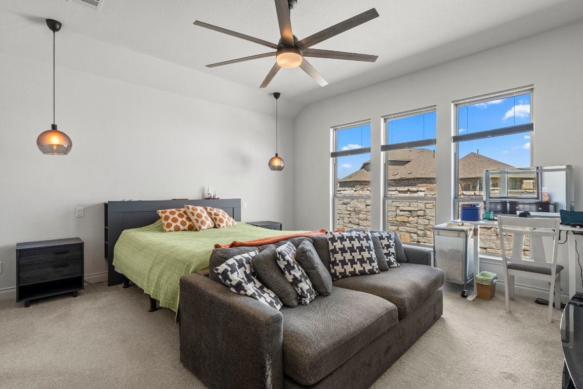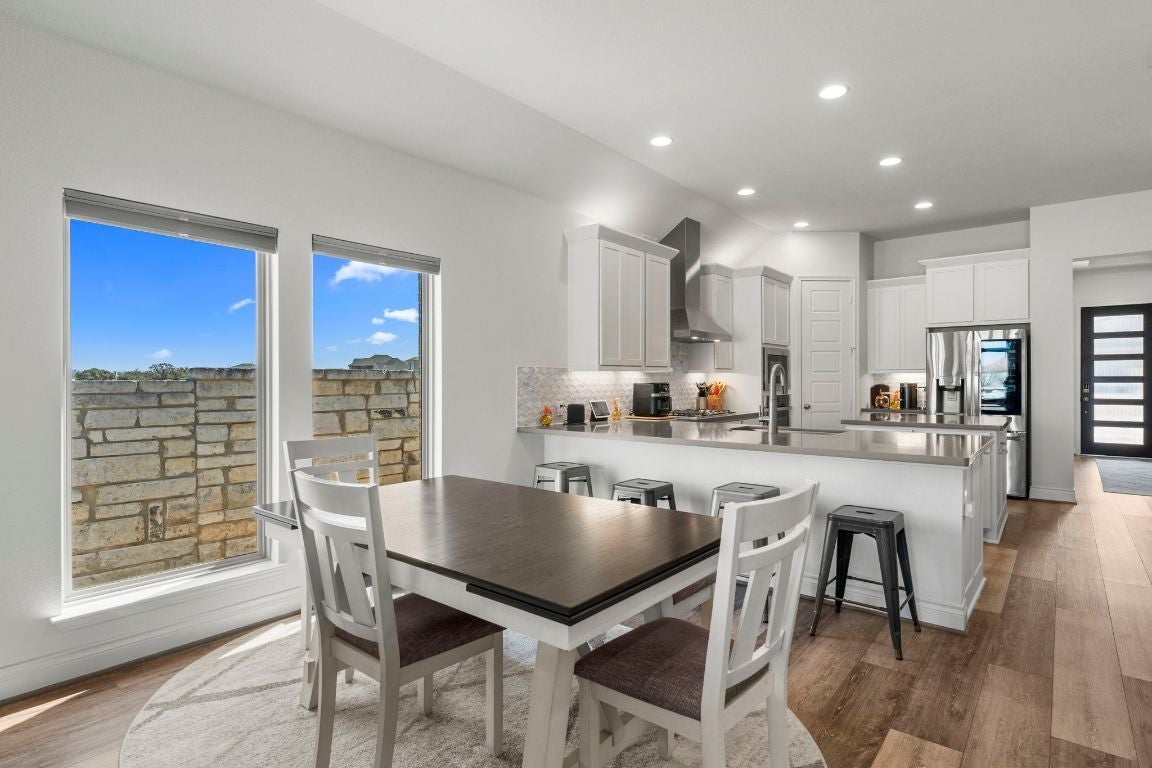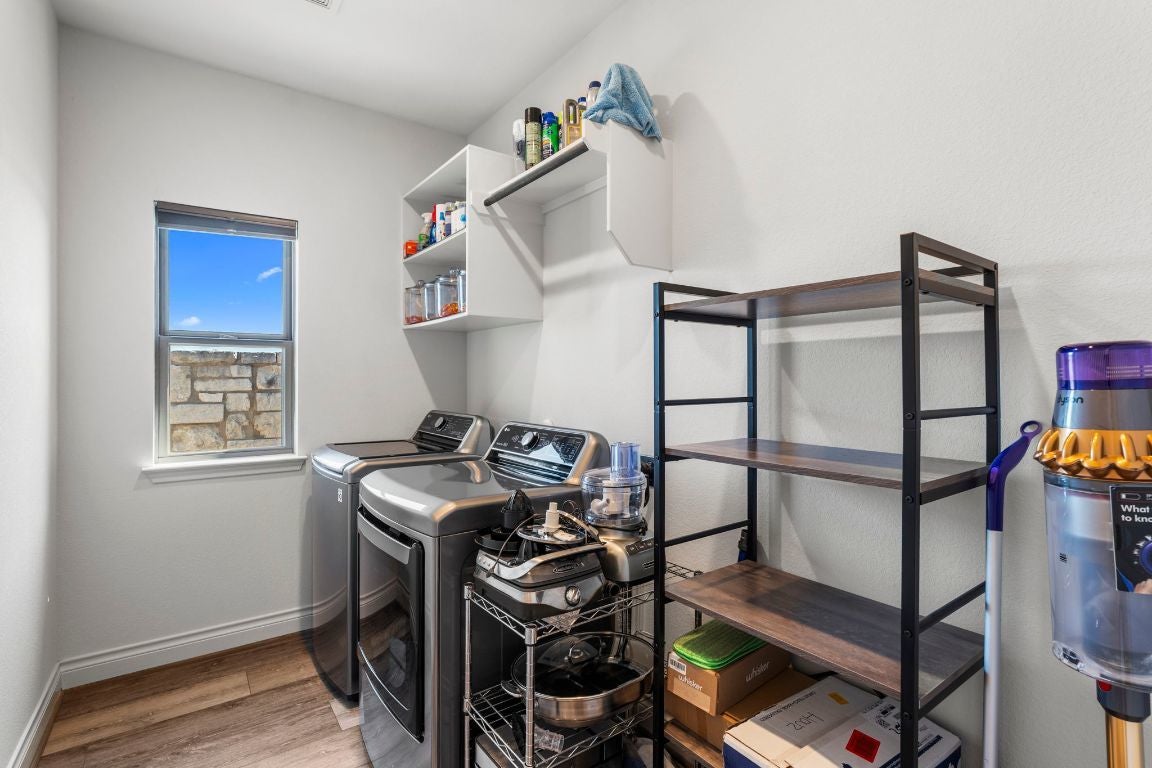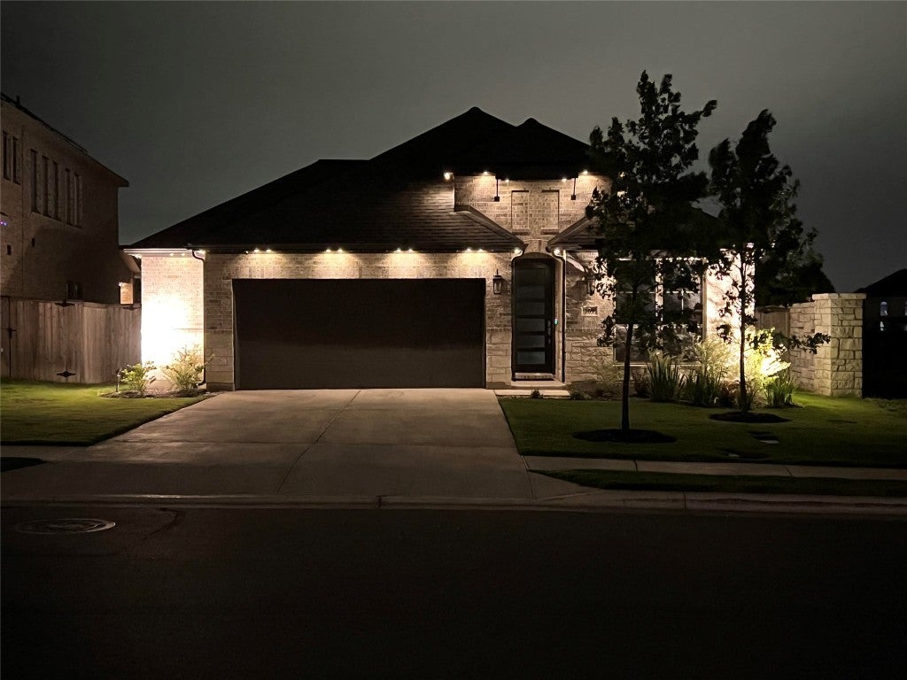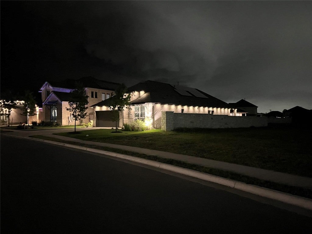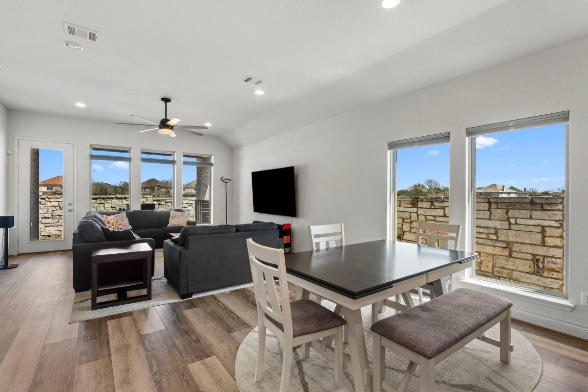 Modern, energy efficient 3/2 single story on corner greenbelt lot in upscale 6 Creeks. Nearly new 2021 home with over $60K in upgrades: owned solar, Tesla Powerwall, Tesla/EV charger, whole home water softener/filtration, smart thermostat/doorbell, gutters, full sprinklers. Open concept with luxury vinyl plank, bright living area, and kitchen with quartz counters, SS appliances, gas range, large island, and pantry. Private primary suite overlooks greenbelt with dual vanity bath, oversized walk in shower, and walk in closet. Covered patio, no rear neighbors, established landscaping. Unobstructed view of the coveted and recently relocated Stagecoach Heritage Oak. Enjoy 6 Creeks amenities: pool, trails, parks, pickleball, fishing pond, and Hays ISD. Strong value vs nearby new construction with costly extras already included.