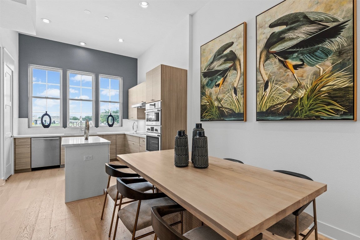 *Builder offering rates as low as 4.99% until January 31st. If purchasing in cash builder will credit back 3% of sales price at closing!* Wonderful opportunity in the heart of Downtown Round Rock, just completed new construction 2 blocks from Main Street, Short Term Rentals allowed! This sleek two-bedroom/2.5 bath townhome is truly urban living at its finest and was thoughtfully designed to be a perfect mix of traditional and modern. Home features beautiful finishes throughout, soaring 12-ft ceilings, large windows that enhance the natural light, recessed lighting, Bosch appliances, a two-car garage & low-maintenance landscaping to boot. On the first floor you'll find a spacious entryway that can be used as a sitting space, office nook, exercise area + more. You will find the well-laid out kitchen and living space on the second floor. Both en-suite bedrooms are situated on the third floor, the luxurious primary suite boasts a spacious walk-in shower and dual vanities. Enjoy the walkability of this amazing location just steps from Downtown - great coffee shops, restaurants, bars, parks are all just steps from your front door. HOA includes the water & trash bill. New home warranty included. There is nothing like this on the market, must see this gem!