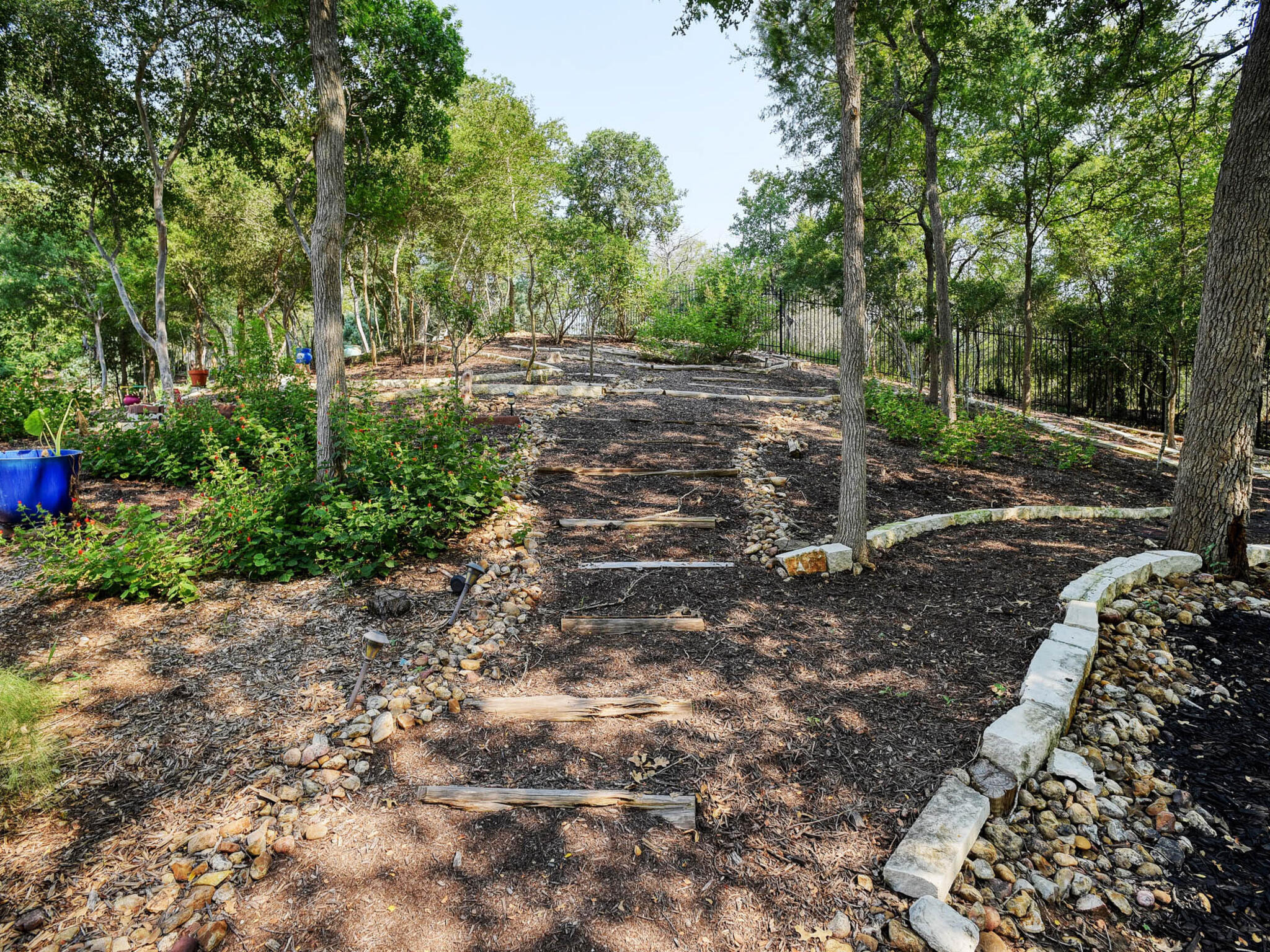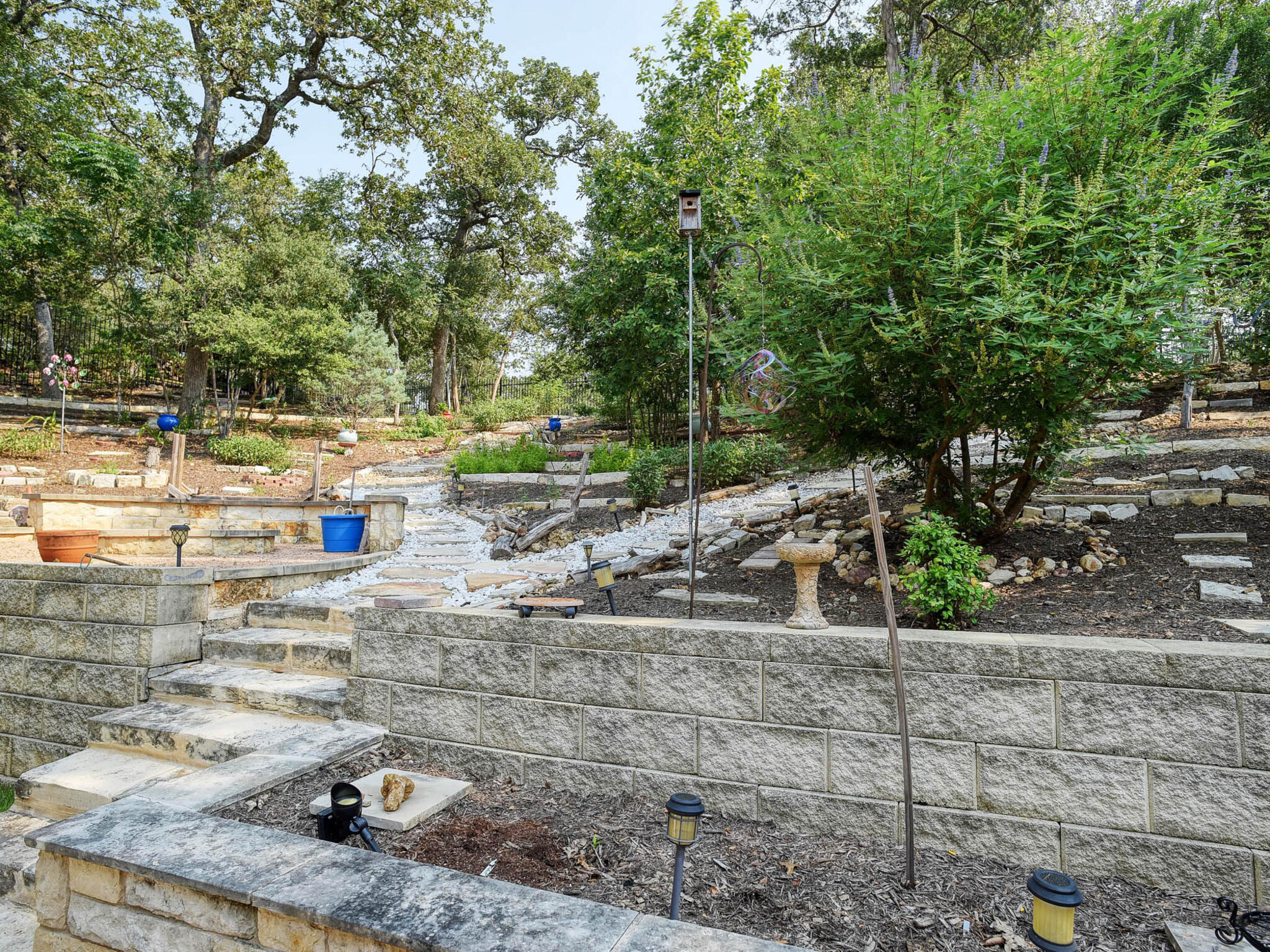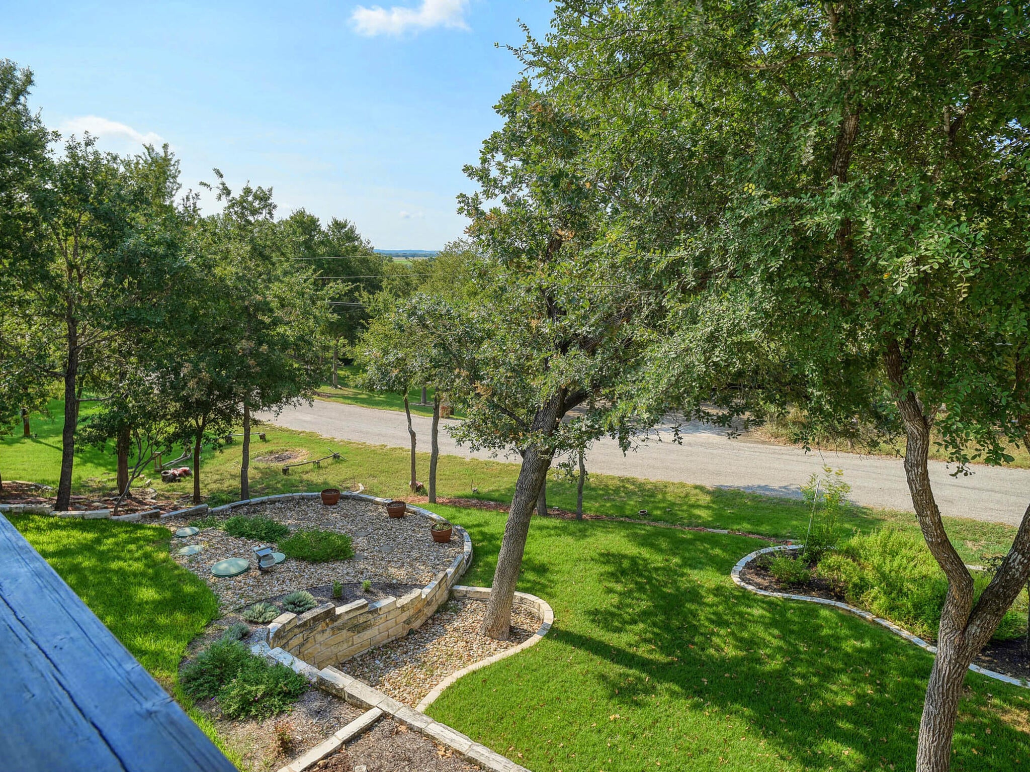 Beautiful custom home with stunning views from a private balcony. Located just steps from the the Colorado River park & trails and the new Bastrop River Club (golf course, wellness center & gym). Exterior features include magnificent tiered gardens with Texas native plants and automatic irrigation system. Garage is extra large to accomodate larger vehicles with extra storage space. Home has 2 large bedrooms and 2 full bathrooms on main level (including primary suite). Owners suite has large walk in shower, plus outdoor shower and separate door to private doggie patio. Upstairs there is a large bedroom/living or office area plus additional 224 sf flex space (not reflected in sq ft) and covered balcony facing river and golf course.