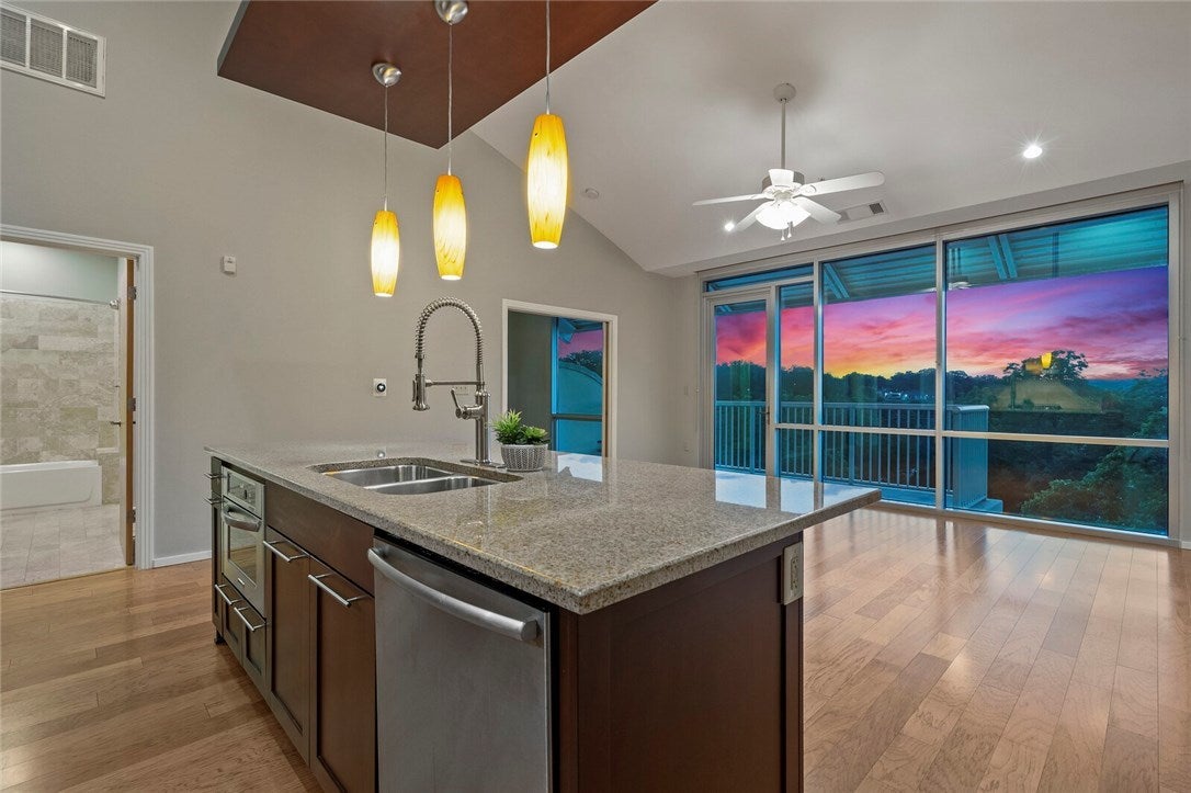 Relax and unwind in this stunning sunset penthouse residence. 16' barrel arched ceilings bring in beautiful natural light and make the space live large and bright. Rare pecan flooring stretches throughout living and kitchen. Thoughtful upgrades include industrial gooseneck faucet, Nest thermostat, and floor-to-ceiling windows fitted with custom shades. Live where Austin plays with Zilker Park just blocks away, amazing local restaurants out your back door - infamous hike and bike trail out your front door.FEMA - Unknown Sprinkler Sys:Yes