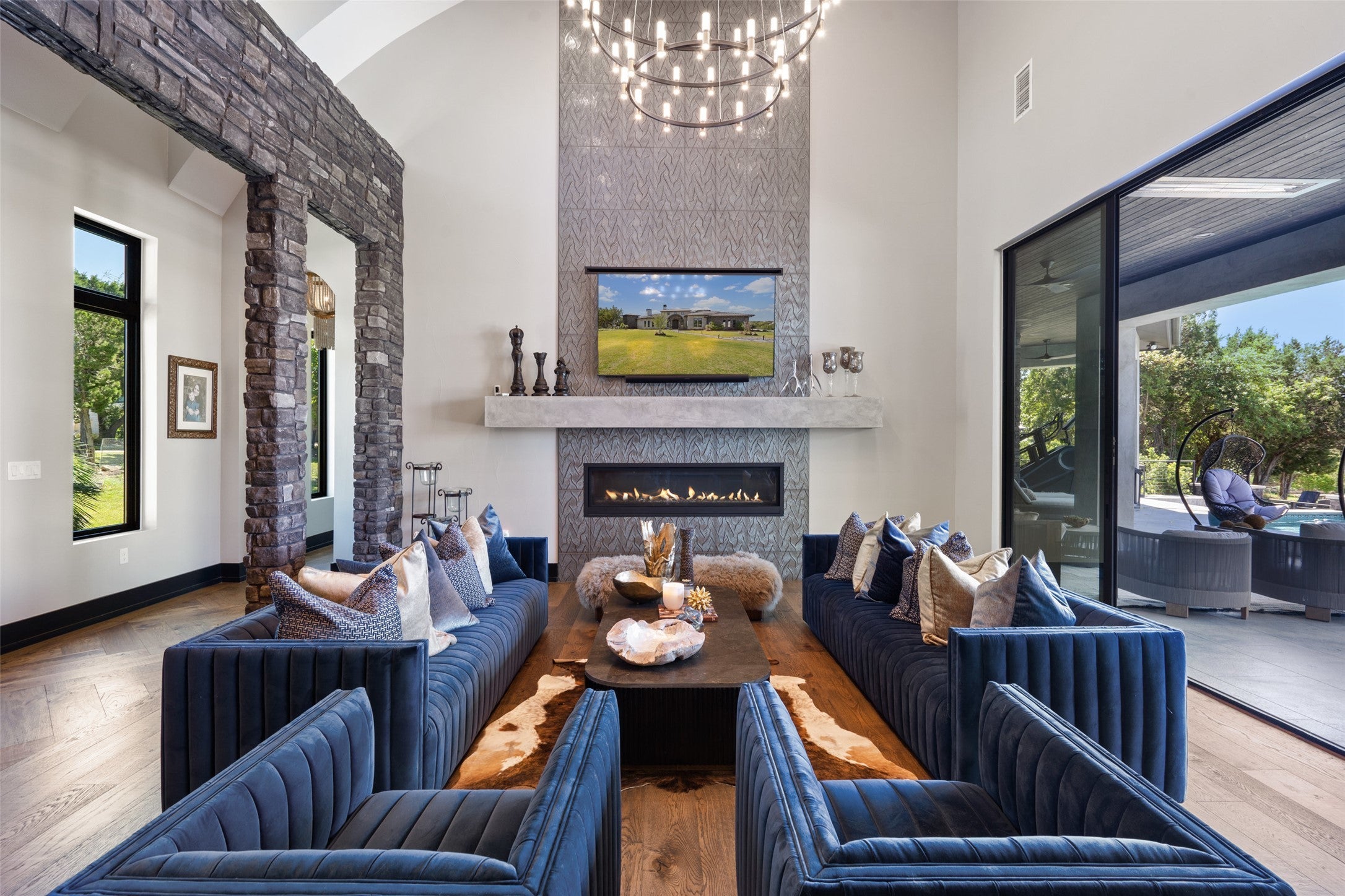 Nestled on a serene cul-de-sac, this stunning Modern Venetian residence, completed in 2021, seamlessly blends timeless architecture w/ contemporary charm. The home is situated on 1.13 acres, with a southwest orientation that captures the hill country panoramas and glimpses of Lake Travis, while graciously welcoming southern breezes. Meticulously crafted, the residence strikes a harmonious balance between seclusion and sweeping vistas. Its intelligently curated layout accentuates al fresco living, with the great room and gourmet kitchen effortlessly spilling onto an expansive veranda & poolside haven, perfect for social gatherings or tranquil moments. The owner's suite, a sanctuary of comfort, features private veranda access, a cozy fireplace, and a lavish ensuite bath w/ ample natural light. Adjacent, a spacious study provides a stylish and tranquil workspace. The recreational wing overlooks the outdoor oasis, offering entertainment options aplenty, from the poolside bar and game room to the media center and stylish wet bar. Completing the home, a 3.5-car garage with ample storage, a convenient laundry/mudroom with pet access, and a second level dedicated to guest accommodations, each with private baths and captivating views. Located in the prestigious gated Reserve at Lake Travis, residents enjoy access to the acclaimed Lake Travis ISD schools, coupled with an enviable locale a mere 15 miles away from the Hill Country Galleria, renowned for its upscale boutiques, culinary delights, and convenience to Whole Foods market. For the boater, a state-of-the-art marina resides within the community. Resort-style opulence, this residence epitomizes both luxury & seclusion, offering an idyllic retreat in an unparalleled setting. The Reserve is an active luxury waterfront community nestled among 311 acres of hill country beauty, surrounded by miles of Lake Travis shoreline w/ an in-neighborhood marina. Seller will convey boat slip lease in marina, boat also available for sale.