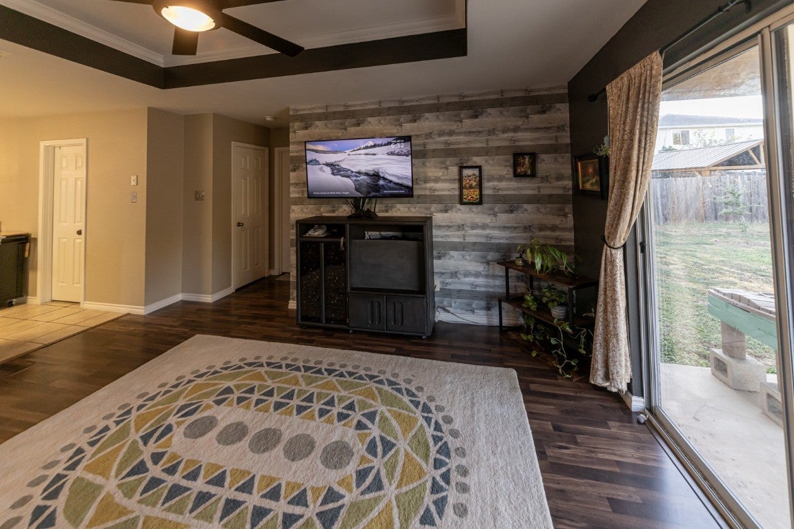 Short drive time to many highways and international manufacturing companies including Samsung, Applied Materials, and Tesla. This perfect home has a great open layout for the living areas, a large walk-in kitchen pantry, 3 main bedrooms, and an optional 4th bedroom or office space. The house has a modern feel and is in a quiet neighborhood with a large backyard. Radiant attic barrier with a solar-powered vent fan helps protect you from the Texas heat. Close to a green belt and a charter school, it has a pleasant neighborhood park with a playground, tether ball, and horseshoes. A community pool and clubhouse with a great gym are a short drive away.