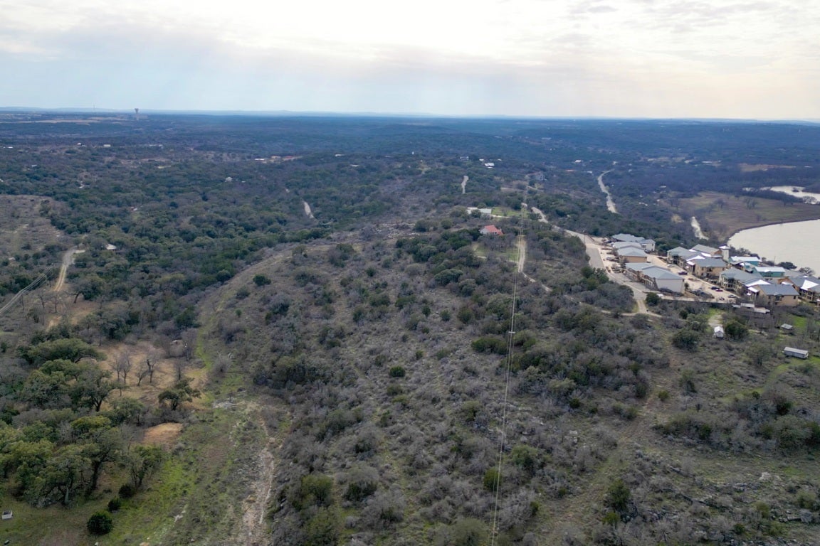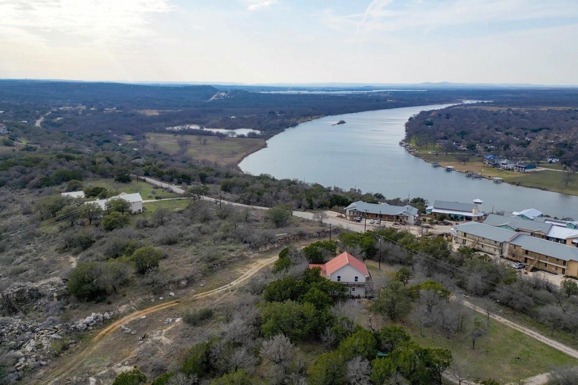 Over 10 acres with panoramic views of Lake Marble Falls, downtown Marble Falls and rolling Texas hill country, plus a two-story 2,400 sqft 3 bed/3.5 bath custom home set amidst established landscaping, oaks and native trees, and rocky outcroppings. Two detached carports plus two large water storage tanks. Huge development opportunity with elevated lake views and close proximity to historic Marble Falls (approx 2 miles); The Horseshoe Bay Resort (approx 5.4 miles); Hilton's $18.5m 'The Ophelia Hotel & Conference Centre' under construction (approx 2.2 miles); The Shops at Flatrock Crossing which is a $130 million, 350,000-square-foot retail center expected to open in 2026 (approx 2.6 miles), and Baylor Scott & White Medical Center (approx 4.6 miles). The acreage, views and location make this a great opportunity if you are looking to build your dream home and you may consider using the existing home as an income producing rental property subject to permits. Lots of development possibilities. New survey.