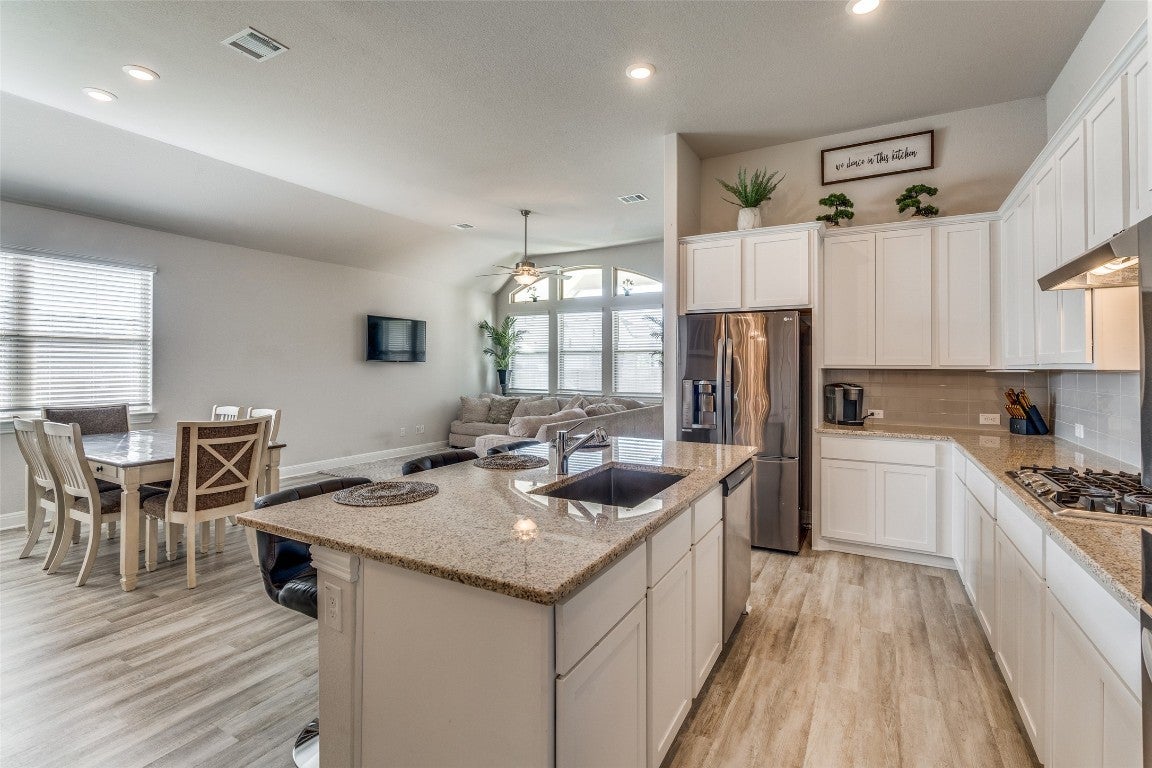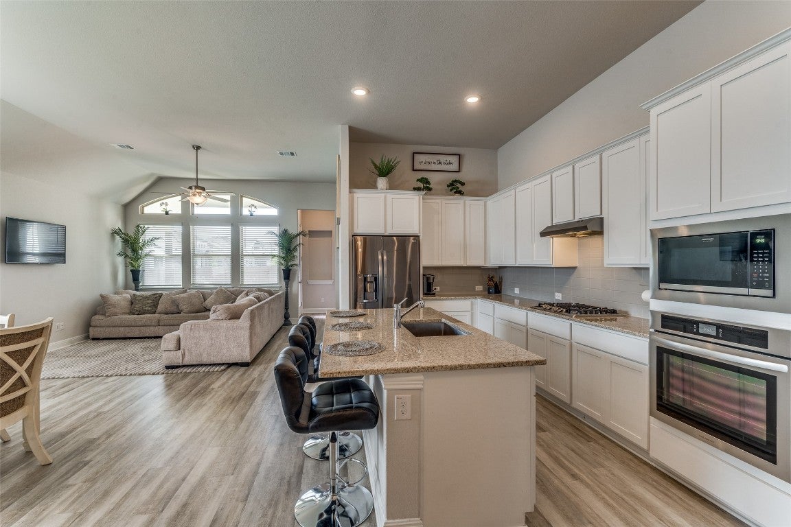 Built-In Electric Oven, Built-In Gas Range, Built-In Refrigerator, Dishwasher, Disposal, Gas Range, Microwave, Stainless Steel Appliance(s)