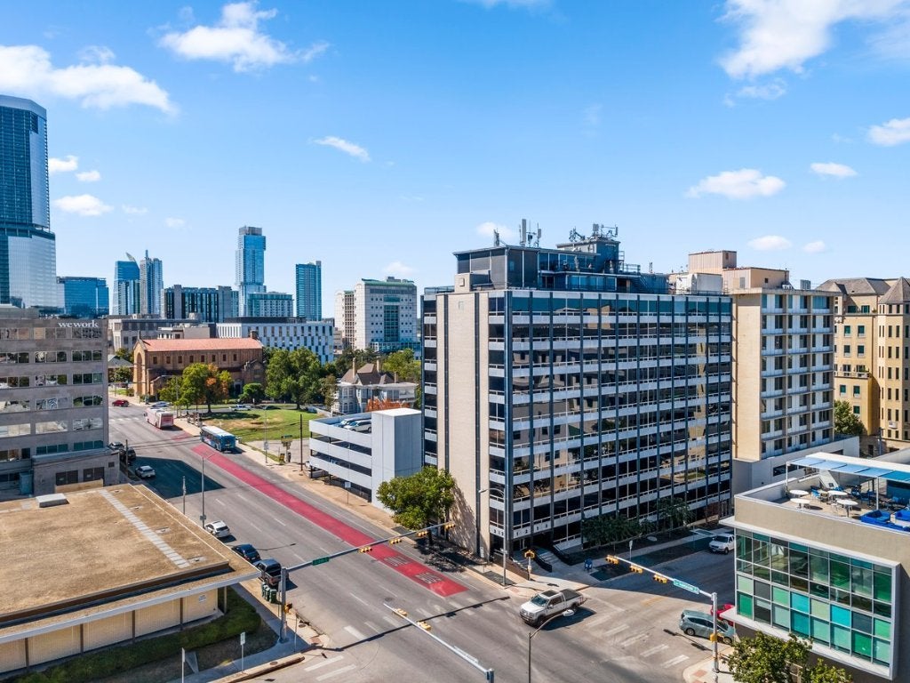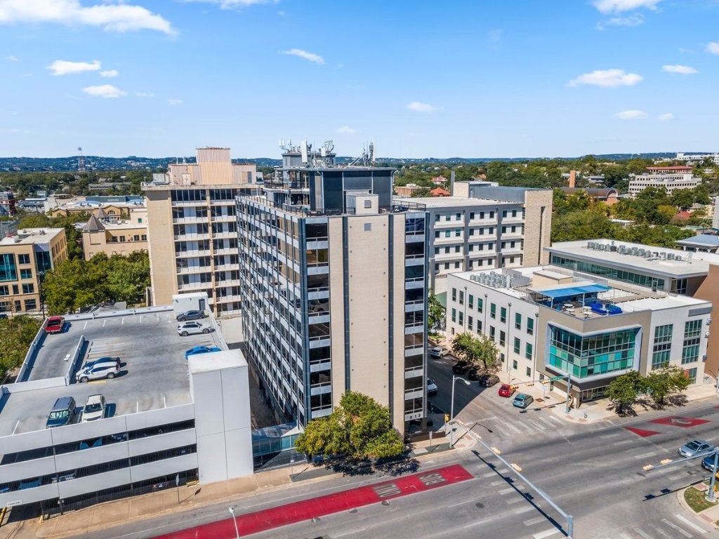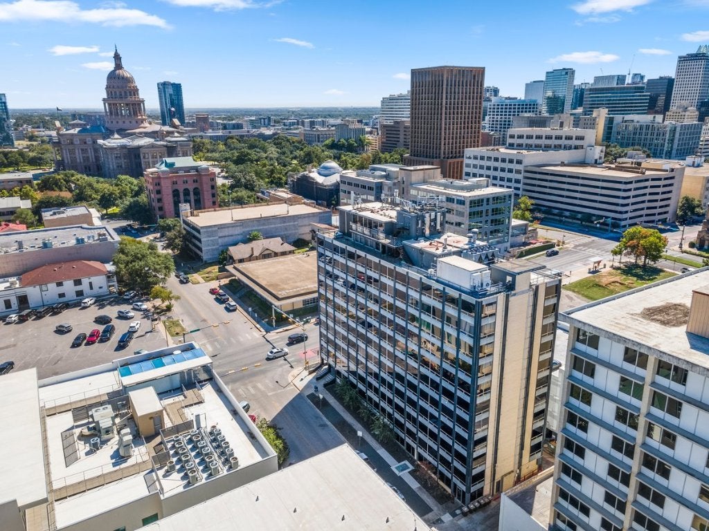 Location, Location, Location!!!! Live a walk-able lifestyle in this beautiful 1-bedroom condo just footsteps from the State Capitol and the University of Texas. This part of town is known for its vibrant atmosphere and proximity to numerous amenities including convenient access to UT sporting events, restaurants, entertainment venues, shopping centers, public transportation, and cultural landmarks. This condo offers a compact, yet functional living space suitable for individuals looking for a convenient urban lifestyle. This unit boasts an open floor plan that maximizes space efficiently. You'll be able to work, study or lounge in style! The Penthouse Condos offers controlled access through a private lobby and includes one reserved parking space in an attached, gated garage. The HOA dues cover electricity, water, sewer, gas, trash, recycling, common area insurance and exterior maintenance. All you pay for is Internet. Refrigerator conveys. Great price for downtown living! All appliances, furniture and accessories on display convey.