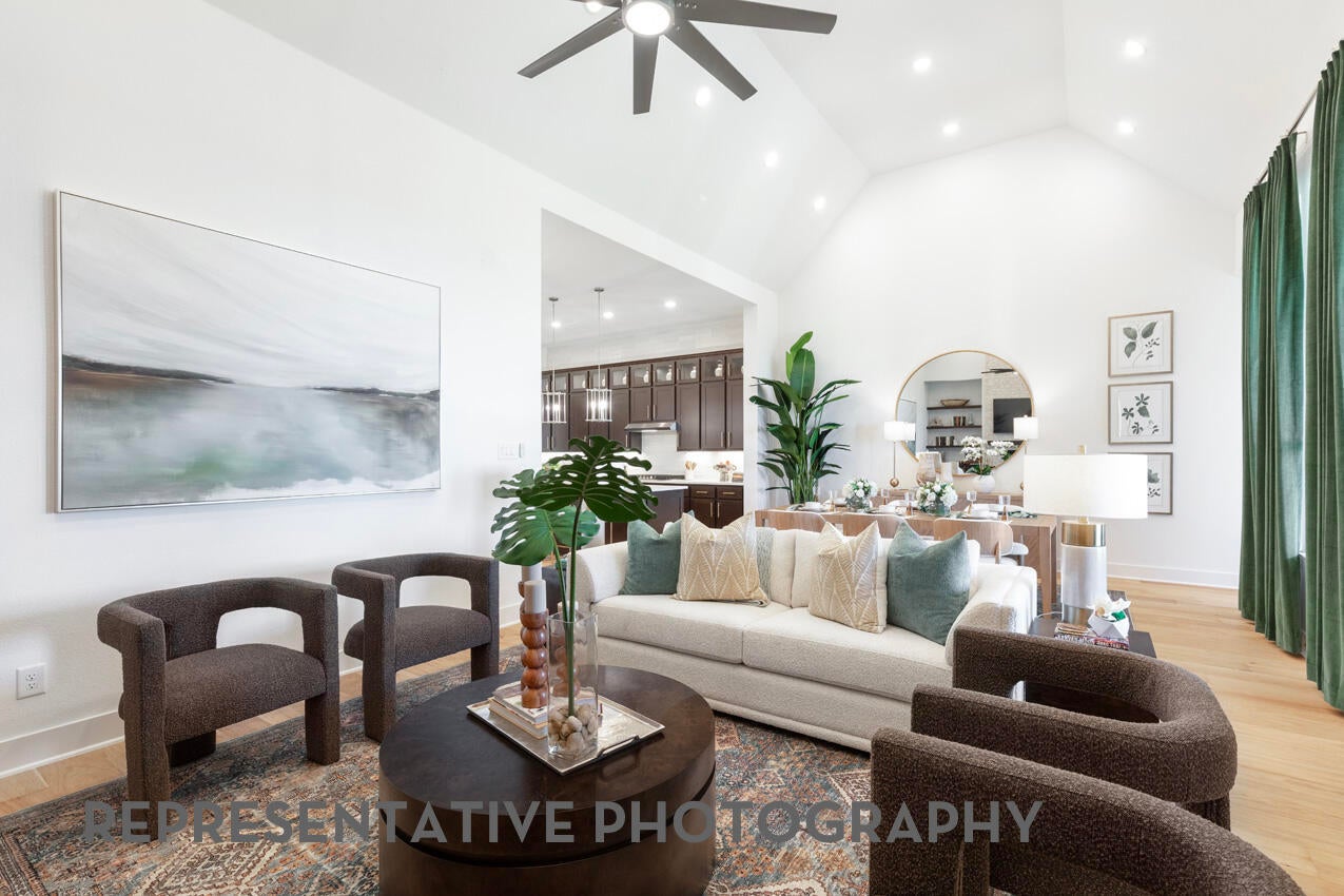 Exceptional new Highland Homes Ramsey plan in the desirable 6 Creeks community in Kyle. This expansive one-story home offers 4 bedrooms, 4.5 baths, 3-car garage, a private study, and a game room, all thoughtfully designed with elevated finishes and functional luxury in mind. Featuring 11-foot ceilings and 8-foot interior doors, the home feels open and airy with abundant natural light throughout. The spacious open-concept layout centers around a stunning living area with a cozy fireplace, seamlessly connected to a gourmet kitchen with upgraded appliances, ideal for entertaining and everyday living. Each bedroom includes its own private en-suite full bath, offering exceptional comfort and privacy for everyone. The dedicated study provides the perfect work-from-home space, while the game room adds flexibility for recreation or additional living space. Step outside to enjoy the extended covered outdoor living area, perfect for relaxing or hosting gatherings year-round. Located in the amenity-rich 6 Creeks master-planned community with convenient access to shopping, dining, and major commuter routes, this home blends modern design, craftsmanship, and versatile living.
