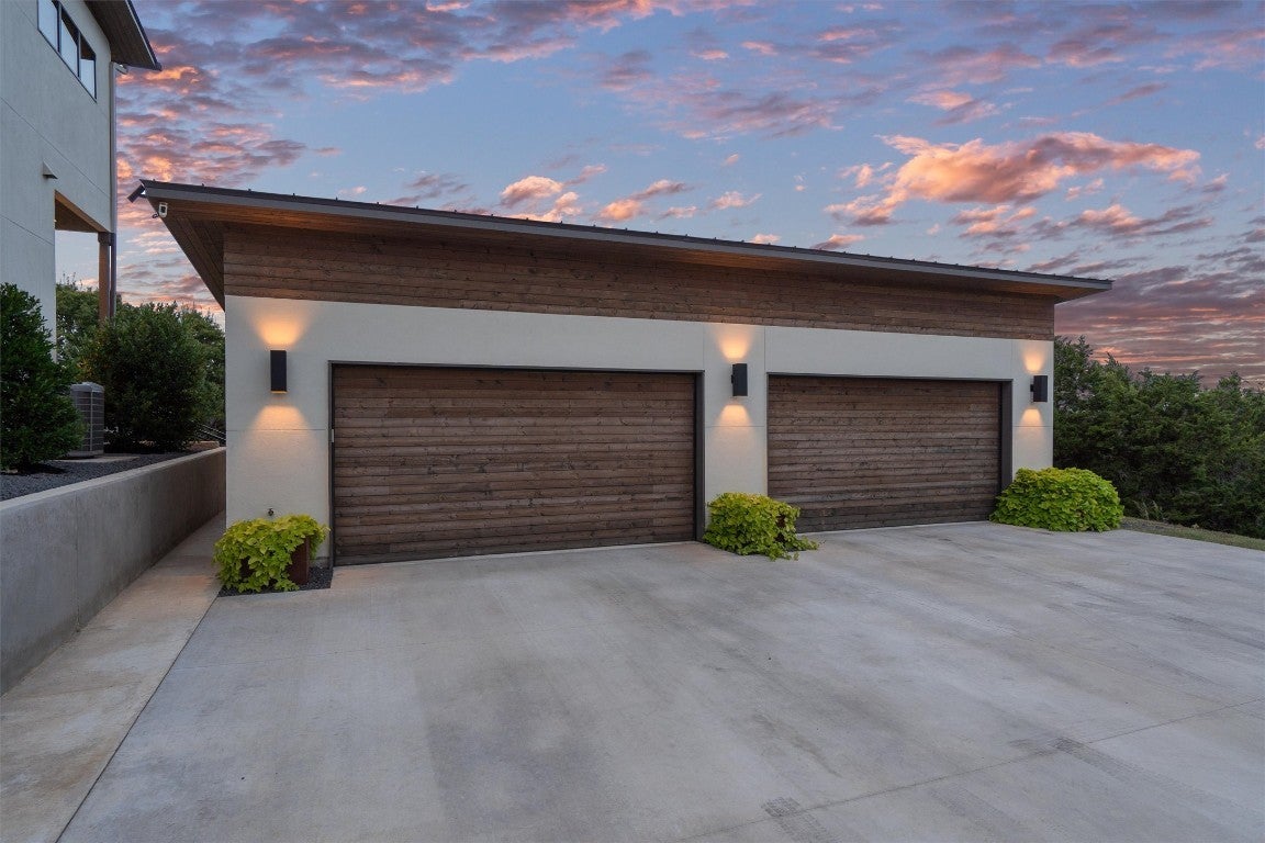 Assumable 4.125% Interest Rate — 30-year loan with a 10-year ARM (subject to buyer approval). Exceptional Value in Insurance — Enjoy roughly half the cost of comparable homes thanks to a full metal roof, detached 4-car garage, and a fire hydrant on the property. Built for Efficiency — Ceramic window tint, superior insulation, and thoughtful construction keep energy costs impressively low — typically $80–$380 per month. Located outside city limits and ETJ, with no HOA and no zoning restrictions. Conveniently located near shopping, dining, and the tech corridor — just under 30 minutes from Austin! Discover modern Hill Country luxury in this 2023 custom-built estate, perfectly positioned on 5.01 private acres just off Hwy 183. Designed to capture panoramic Hill Country views and provide seamless access to Austin in under 30 minutes, this home blends architectural sophistication with everyday comfort and efficiency. Every detail was designed for lasting quality — from 6–8” thick exterior walls and full spray foam insulation to mirror-tinted Pella windows, steel doors, and upgraded half inch thick drywall for sound control and durability. The open-concept layout features 12' ceilings, custom white oak cabinetry, and soapstone and Calcutta quartz surfaces that define modern elegance. The chef’s kitchen includes a full Thermador suite with a 48” dual oven, built-in espresso machine, and dual-column refrigerator/freezer. The primary suite is a true retreat with a private HVAC system, steam shower, and 66” solid resin soaking tub. Engineered for performance, the home offers a 400-amp electrical service, 500-gallon propane tank, dual tankless water heaters, whole-house filtration, and EV-ready 4-car garage (one installed charger, two prepped). Outdoors, enjoy 1280 square feet of covered patios with fireplace, sunset views, and 21+ new trees supported by a 2025 irrigation system.