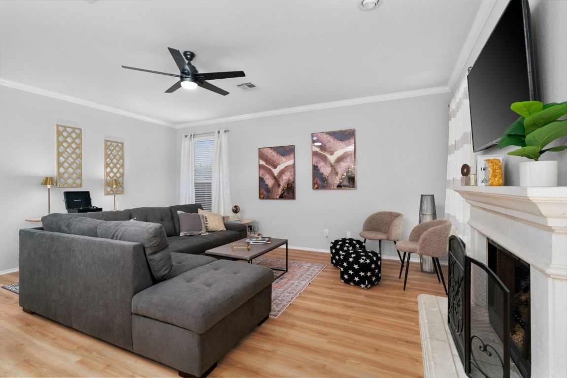 Located at 807 Clarence Bohls Ln in Pflugerville, TX, this well-maintained single-family home seamlessly blends comfort, style, and functionality. Currently operating as a Short-Term Rental (STR), this versatile property can also serve as a Mid-Term Rental (MTR) or a private residence—making it an exceptional investment opportunity or a flexible living option. Turnkey STR income is currently $145K, and seller financing is available with just 25% down. At the heart of the home is the beautifully designed kitchen, featuring a spacious island perfect for cooking, gathering, and entertaining. Elegant crown molding, a bright skylight, and sleek stone countertops elevate the space, while the stylish backsplash and convenient kitchen bar add both charm and practicality. The inviting living room offers a warm and comfortable setting, centered around a striking fireplace. Crown molding and a vaulted ceiling enhance the room’s openness and sophistication, creating a space perfect for relaxing or entertaining. The primary suite serves as a private retreat, complete with a soaking tub, a roomy double vanity, and a luxurious tiled walk-in shower. An additional bedroom features its own ensuite bathroom, providing added comfort and privacy for guests or family. With its open floor plan, the home feels bright, connected, and spacious throughout. Step outside to your private oasis—an inviting pool and in-ground hot tub ideal for year-round enjoyment. The patio offers the perfect setting for outdoor dining or lounging, while the fenced backyard ensures privacy and peace of mind. Whether you’re searching for your next home or a high-performing investment property, this residence offers the perfect combination of indoor comfort, outdoor relaxation, and versatile rental potential.