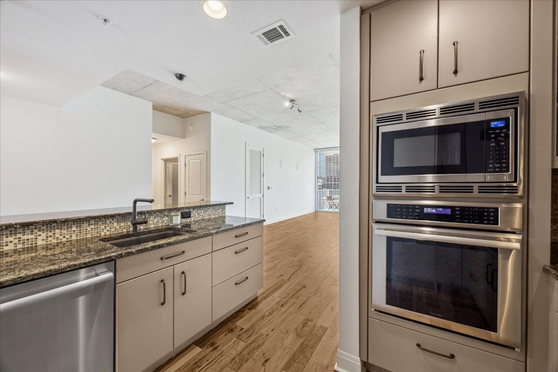 Stunning Upgraded 2-Bed, 2-Bath Condo in Prime Downtown Austin Location. This beautifully remodeled home offers luxury and functionality in a highly sought-after location. Featuring electric solar shades, floor-to-ceiling windows that flood the space with natural light and provide breathtaking city and lake views, this condo is the perfect blend of modern design and comfort. Impressive 10ft ceilings create an open and airy atmosphere, accentuating the home’s expansive layout. Custom cabinets and closets throughout offer abundant storage space while maintaining a sleek, contemporary aesthetic. A built-in custom Murphy bed provides a versatile solution for guests or multi-use spaces, maximizing the home’s functionality without sacrificing style. The gourmet kitchen with high-end finishes, upgraded appliances, and ample counter space, perfect for cooking and entertaining. Spacious bedrooms with large closets offer the ultimate in relaxation and convenience, while two elegant baths feature modern fixtures and designer touches. Located in the heart of downtown, you’ll enjoy easy access to the best of Austin—world-class dining, entertainment, shopping, and the vibrant culture that make this city one of a kind. Enjoy building amenities including 24 hr. concierge, heated lap pool, fitness center, club room, dog park, media & conference room. Amazing location in the heart of Downtown Austin, within walking distance to 2nd St District, Lady Bird Lake and the Hike & Bike Trail, Seaholm District & so much more! FREE HIGH-SPEED INTERNET INCLUDED. Whether you’re looking for a relaxing home base or an energetic urban retreat, this condo offers the ideal lifestyle. Don’t miss out on the opportunity to own this exceptional property in one of Austin’s most desirable neighborhoods. Schedule your private tour today!