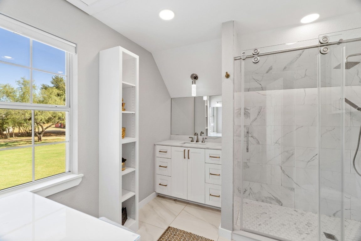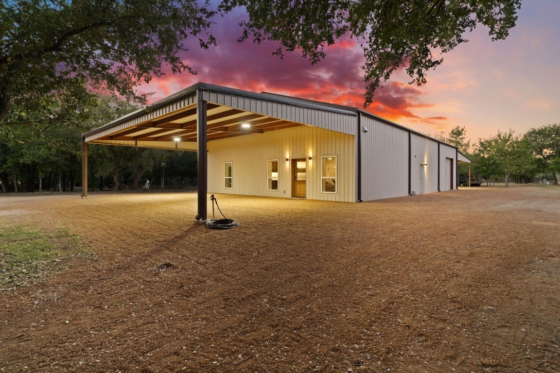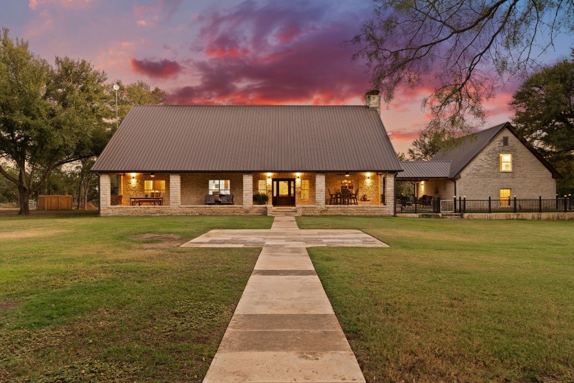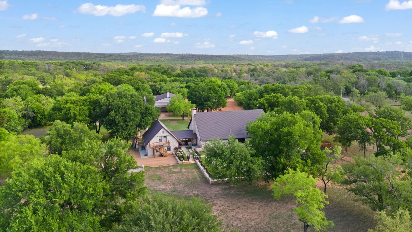 This hidden gem has everything. Nestled on approx. 7 acres along Backbone Creek every custom detail is perfection. Main house (3687sq. ft) offers 3 oversized BRs w/ ensuite baths & high end custom cabinetry throughout. Elegant study with giant fireplace for cool evenings and a Murphy bed (could function as 4th BR). Hidden, built in gun safe for the the shooting enthusiast. The kitchen is a gourmet cook's dream with Bertazonni appliances, custom cabinets, built-in espresso machine, wine fridge, and plenty of prep space - all with a view of your sparkling pool. Upstairs are two bedrooms and a large flex space. Outside, shoot hoops on the basketball pad or host your friends to watch the game in the breezeway connecting. Your friends will love the game room complete w/ fridge, wet bar, and room for your pool table, poker set up, and arcade games. Above the game room is the first of two charming guest houses. The manicured backyard is your personal oasis with pool, hot tub and sauna. The barn has two roll up doors, built in storage, a Big Ass Fan, spray foam insulation and epoxy flooring with an air conditioned home gym upstairs. The second guest house is attached to the barn. Plenty of space for your entire family to make treasured memories in the Hill Country. Whether you choose to spend your time indoors or out, this property is the best of all worlds - your private escape only fifteen minutes from town.