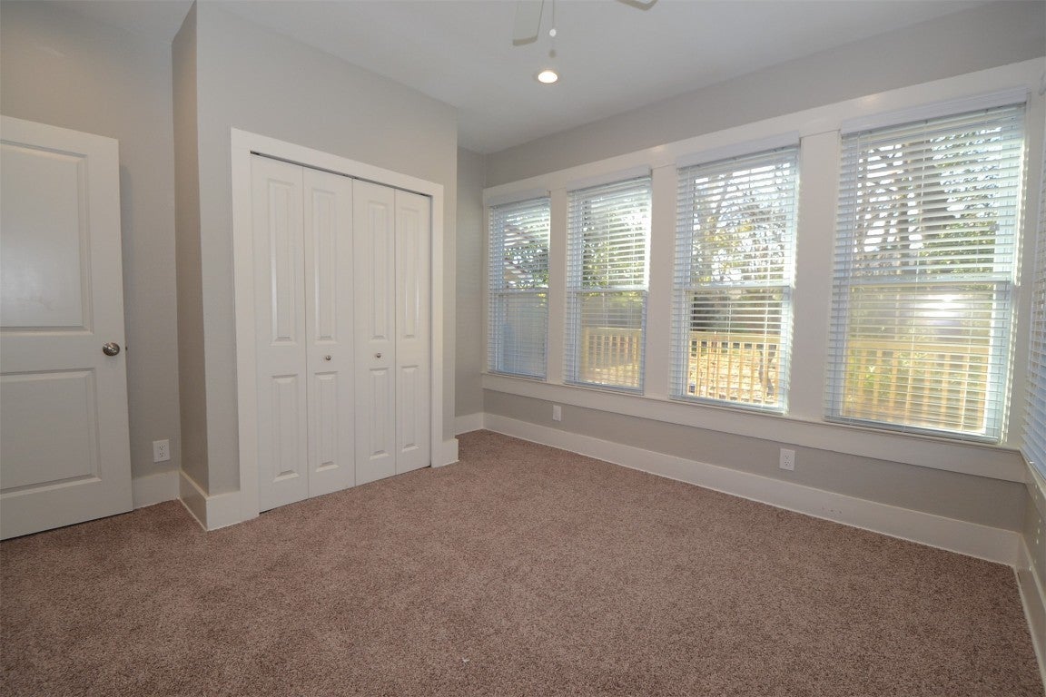 Tastefully Renovated Ranch-Style Residence in Coveted St. Johns. This refined single-story home is currently leased at top market value and offers a sophisticated blend of charm and function. Thoughtfully updated throughout, the property features two spacious bedrooms and a beautifully reimagined full bath. A gracious covered front porch creates a warm and welcoming entry, while inside, the living room exudes style with rich wood flooring, custom built-ins, designer recessed lighting, and expansive picture windows that flood the space with natural light. The formal dining area, accented with timeless tile flooring and ambient lighting, flows seamlessly into a chef-inspired kitchen outfitted with a gas range, built-in microwave, deep farmhouse sink, and abundant cabinetry and counter space. The serene primary bedroom is privately positioned at the rear of the home and is bathed in natural light. The spa-like bathroom features a walk-in shower, elevated vanity, and elegant lighting. The secondary bedroom offers plush neutral carpeting and designer finishes. A spacious deck overlooks a generous, tree-shaded backyard—perfect for outdoor dining and quiet evenings. Located just minutes from Downtown Austin, major employers, and the city’s top dining, shopping, and entertainment.