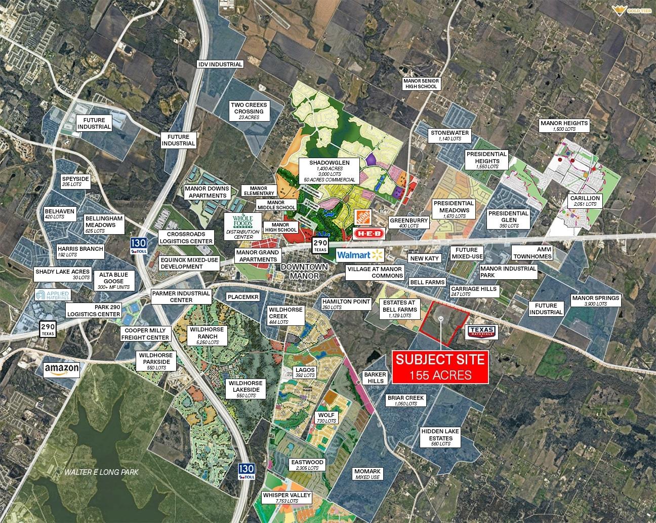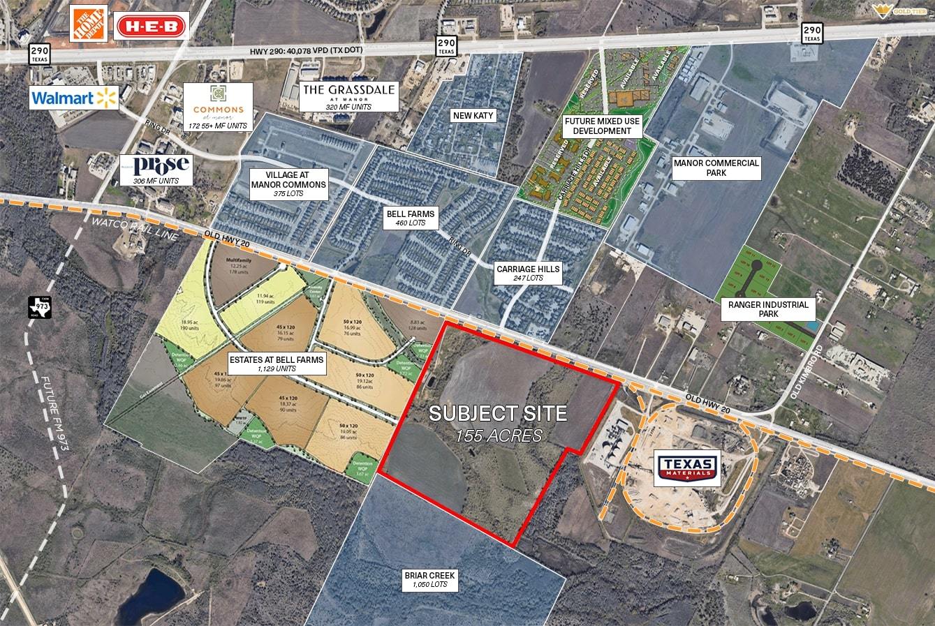 An unbelievable opportunity to acquire 155 acres in the heart of Manor. This prime property boasts an exceptional advantage with 2,700 feet of railroad frontage, a prospect that has received preliminary approval from WATCO for rail access. Furthermore, the adjacent frontage road, Old Highway 20, is poised for expansion, as it is prominently featured on the City of Manor's Thoroughfare Map for a future upgrade to 4 or 5 lanes. Currently situated within Austin's ETJ (Extraterritorial Jurisdiction), this property also stands to benefit from Senate Bill 2038, which could potentially facilitate its inclusion within the City of Manor. In terms of infrastructure, an 8-inch water line and a 12-inch sewer line are conveniently located across the street on Old Highway 20, while electric service is readily near the site. Don't miss this remarkable opportunity to secure a valuable piece of land in a rapidly developing area. **Any purchase must do their independent research regarding the development potential of this site.** Property Highlights Adjacent to New Developments, Including Major Manufacturers Austin ETJ - Potential Swap to City of Manor 8” Water Line & 12” Sewer Line Approx. 2,700 Feet of Railroad Frontage Old Highway 20 Road Expansion