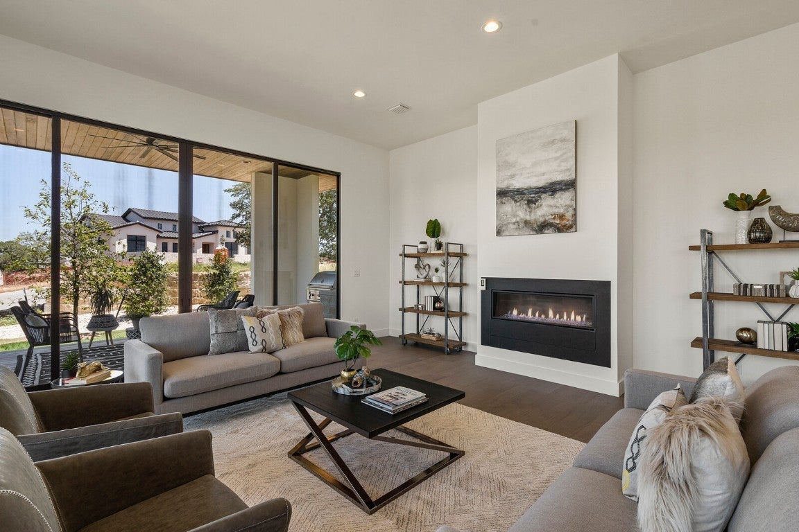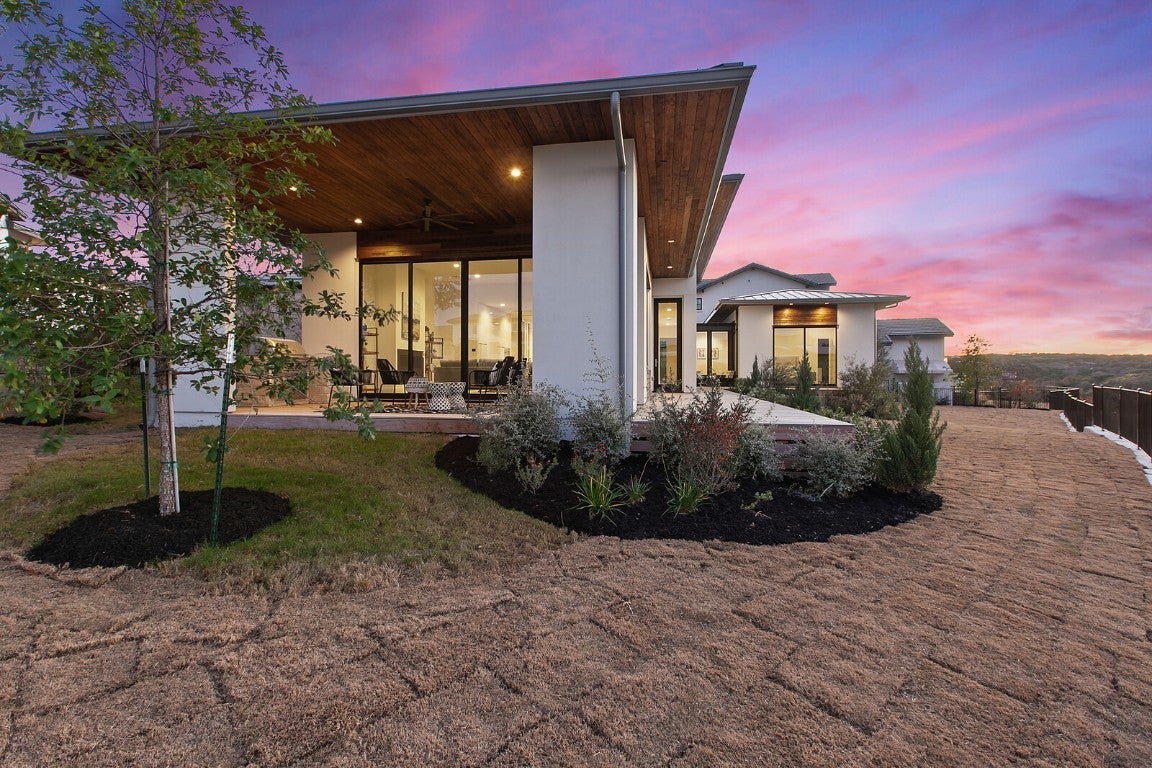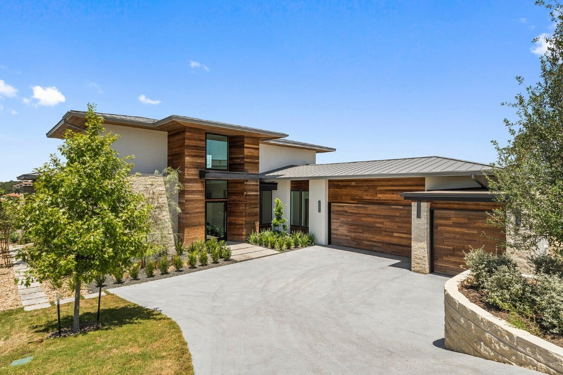 Welcome to a luxurious, low-maintenance home in the coveted Spanish Oaks community. This newly listed resale offers an ideal lock-and-leave lifestyle, showcasing modern design with wood exterior finishes and the perfect blend of privacy and sophistication. Built in 2020, the home features contemporary architectural details, with a stunning exterior and nearly 2,000 square feet of usable backyard space—perfect for relaxation or entertaining. A substantial 10-foot retaining wall, wrought iron fencing, and meticulous landscaping ensure total privacy while preserving the spectacular, protected golf course views. Inside, the home offers soaring ceilings, recessed lighting, and expansive glass doors that flood the space with natural light. The open-concept kitchen features a waterfall marble island, sleek textures, and minimalist design elements that combine warmth and modern elegance. A spacious three-car garage offers ample storage and parking. The primary suite features oversized windows with breathtaking views, a spacious walk-in closet with a central storage island, and a luxurious ensuite bath with a soaking tub, dual shower heads, and high-end finishes. The backyard is an entertainer’s dream, with a covered patio that includes warm wood ceilings and an industrial ceiling fan—perfect for enjoying morning coffee or evening cocktails while taking in the panoramic golf course views. All the amenities of Spanish Oaks are yours to enjoy—from miles of walking and biking trails to the sparkling pool and pavilion. Add a Golf Club membership to access world-class golf, tennis, and more. With its modern finishes, prime location, and elevated living experience, this home offers the perfect balance of privacy, convenience, and luxury in one of Austin’s most desirable communities.
