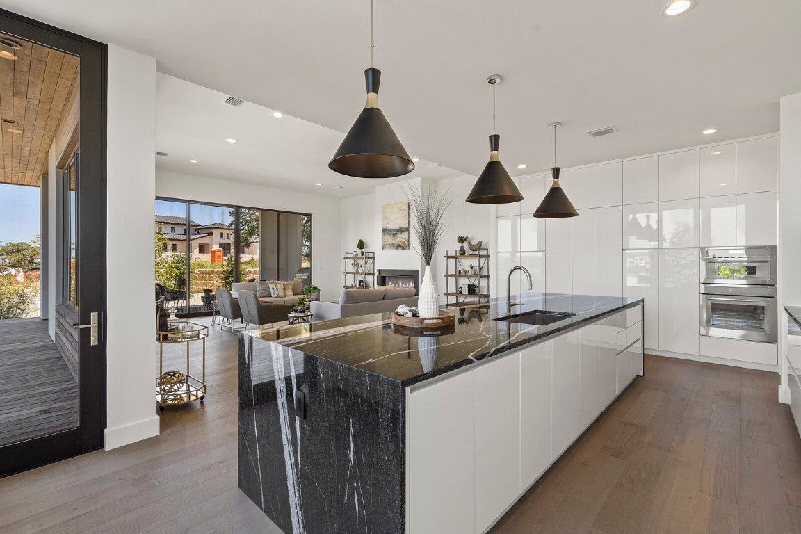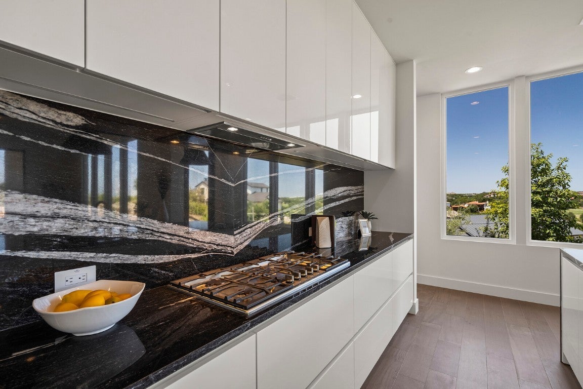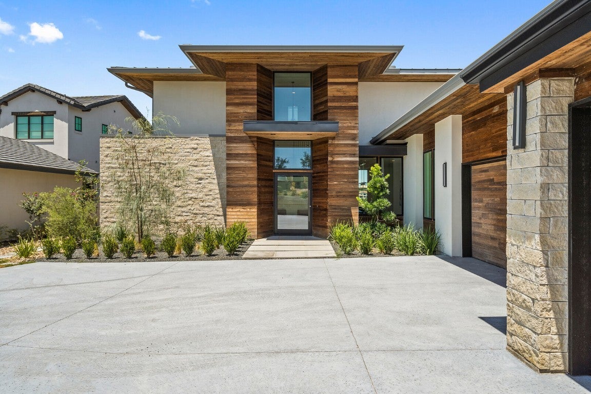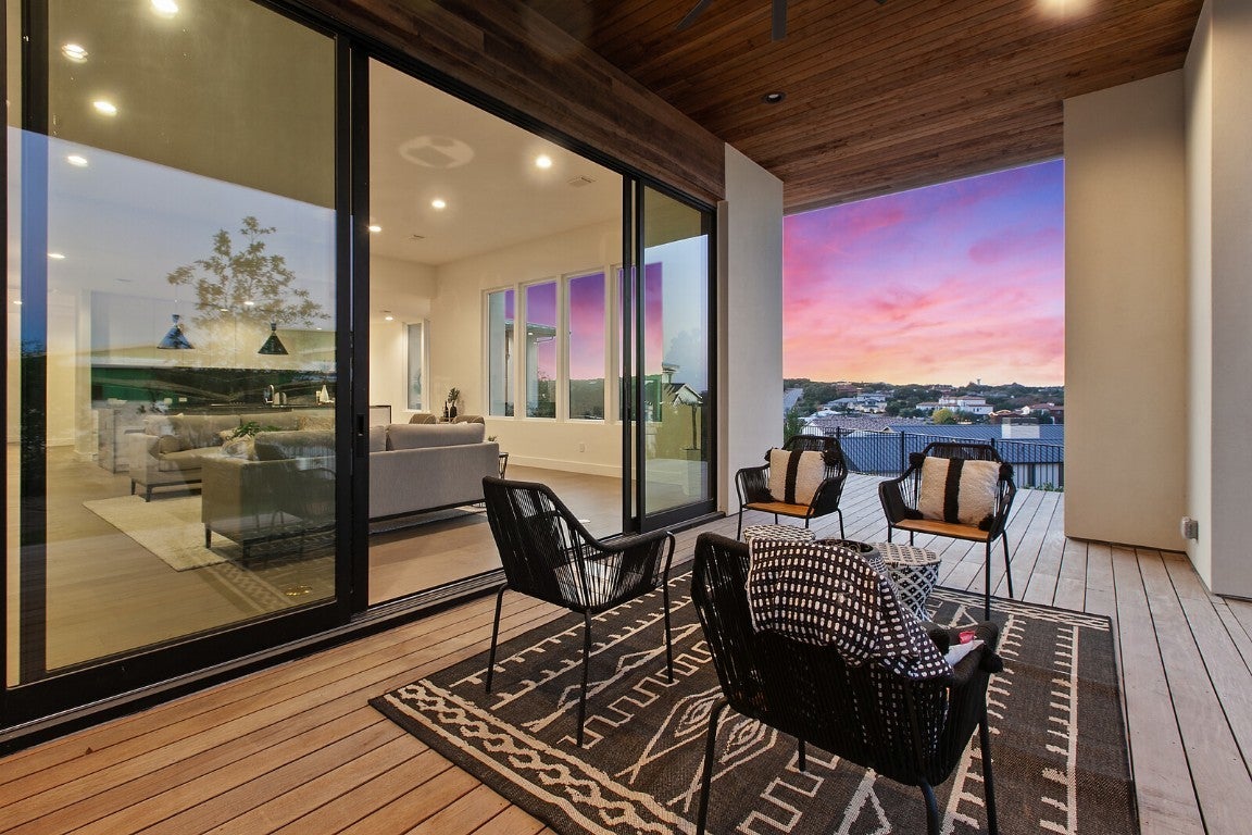Welcome to a luxurious, low-maintenance home in the coveted Spanish Oaks community. This newly listed resale offers an ideal lock-and-leave lifestyle, showcasing modern design with wood exterior finishes and the perfect blend of privacy and sophistication. Built in 2020, the home features contemporary architectural details, with a stunning exterior and nearly 2,000 square feet of usable backyard space—perfect for relaxation or entertaining. A substantial 10-foot retaining wall, wrought iron fencing, and meticulous landscaping ensure total privacy while preserving the spectacular, protected golf course views. Inside, the home offers soaring ceilings, recessed lighting, and expansive glass doors that flood the space with natural light. The open-concept kitchen features a waterfall marble island, sleek textures, and minimalist design elements that combine warmth and modern elegance. A spacious three-car garage offers ample storage and parking. The primary suite features oversized windows with breathtaking views, a spacious walk-in closet with a central storage island, and a luxurious ensuite bath with a soaking tub, dual shower heads, and high-end finishes. The backyard is an entertainer’s dream, with a covered patio that includes warm wood ceilings and an industrial ceiling fan—perfect for enjoying morning coffee or evening cocktails while taking in the panoramic golf course views. All the amenities of Spanish Oaks are yours to enjoy—from miles of walking and biking trails to the sparkling pool and pavilion. Add a Golf Club membership to access world-class golf, tennis, and more. With its modern finishes, prime location, and elevated living experience, this home offers the perfect balance of privacy, convenience, and luxury in one of Austin’s most desirable communities.