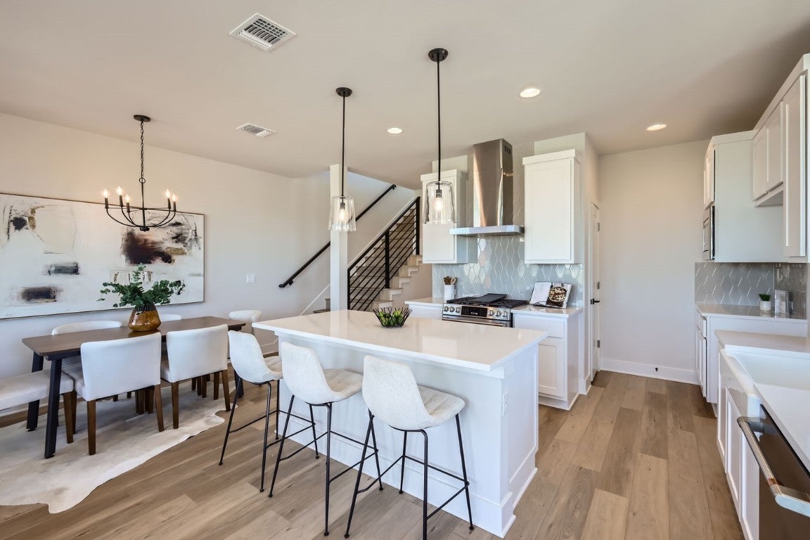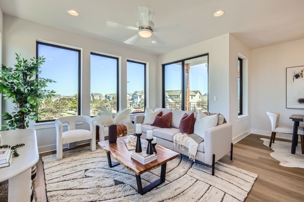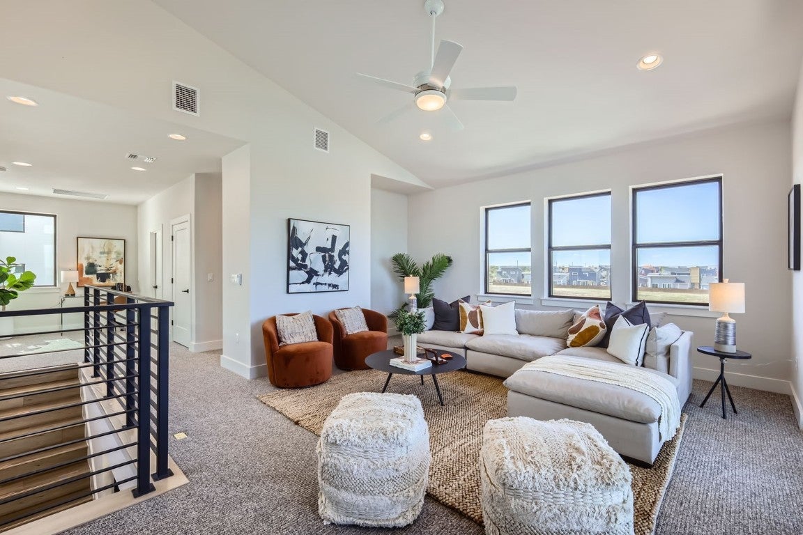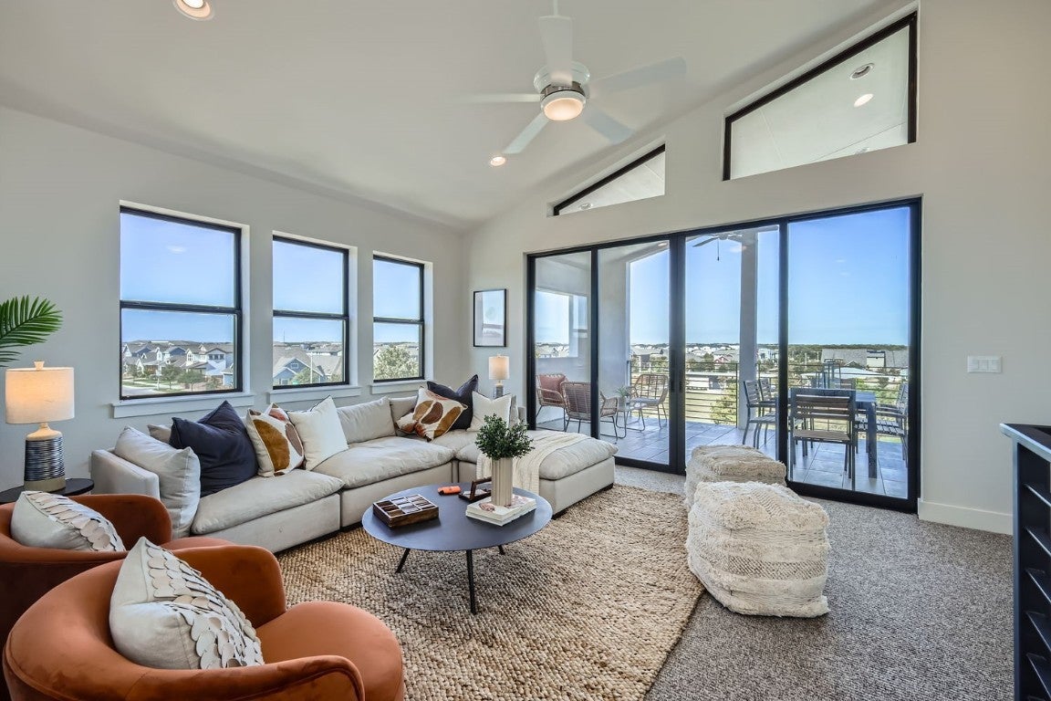 The Ramble series is a very limited collection of 3 bedroom homes featuring elevations that compliment Goodnight Ranch and the new urbanism vibe. Unobstructed downtown views! Modern style with high-end finishes. Step into this beautiful 3-bedroom, 3.5-bathroom home which boasts a 2-car garage and 2,443 sq.ft. of living space, featuring Downtown Austin skyline views from your third story balcony! On the main floor, you’ll find two spacious bedrooms and large storage rooms to keep the home organized. The second level was designed with intimate areas to relax and unwind, and is where the home’s open-concept kitchen, dining area and family room reside. An impressive primary bedroom can also be found on this floor, located at the front of the house. The third floor’s exceptional game room and massive porch is ideal for entertaining parties of all sizes, complementing the 2-car garage which accommodates families with multiple vehicles. * Please see Onsite for all details - subject to change without notice.**