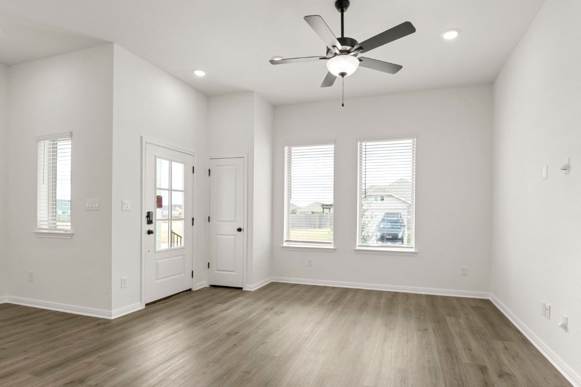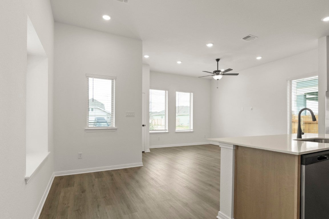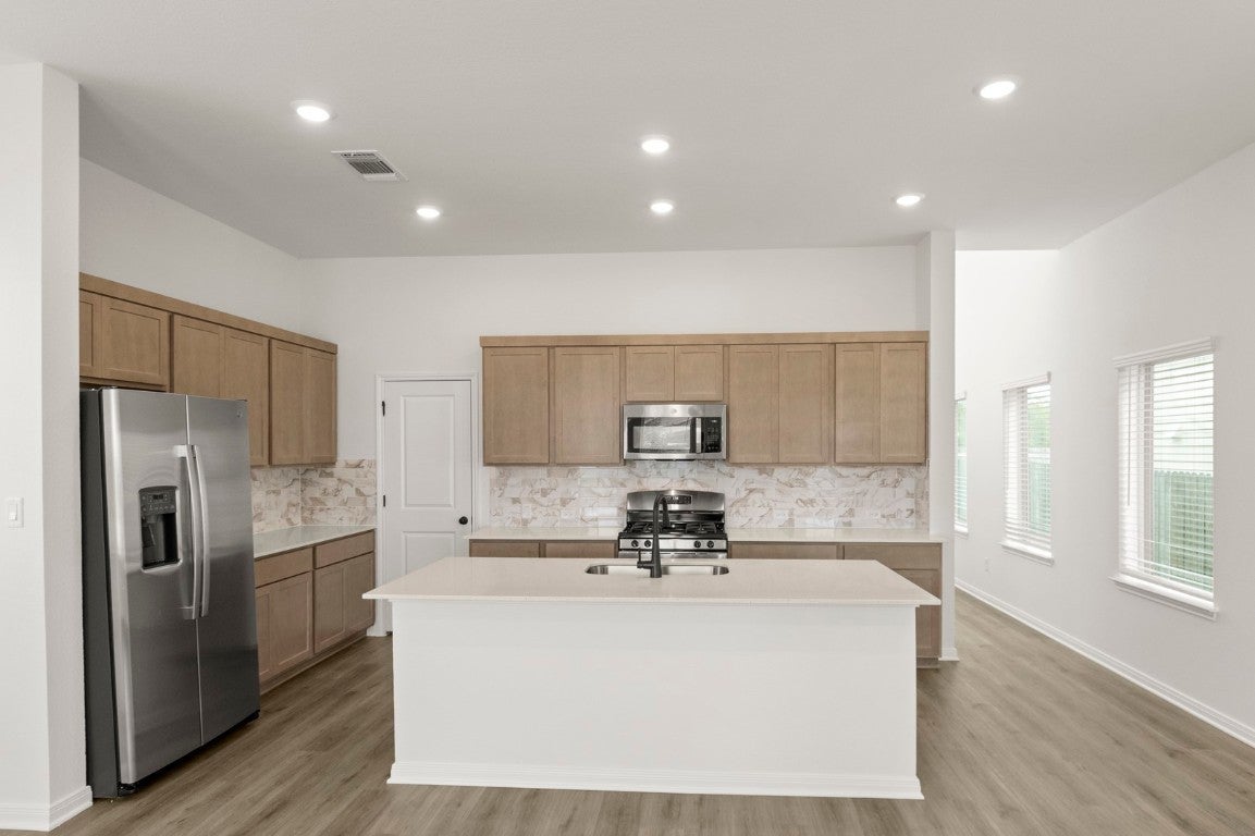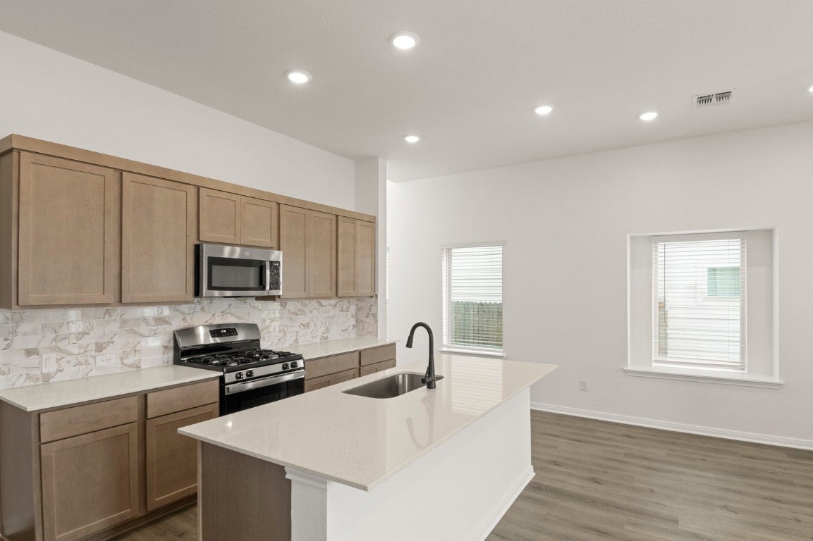 MLS# 3732280 - Built by Pacesetter Homes - Ready Now! ~ Discover modern living in this stunning, single-family residence located in the desirable Blanco Vista subdivision. This thoughtfully designed home offers a spacious 1,623 square feet, featuring 3 bedrooms, including a primary suite, along with 2 full bathrooms and a convenient half bath. The layout provides two secondary bedrooms and ample living space. The heart of the home showcases an open floorplan that seamlessly connects the living and dining areas, perfect for hosting gatherings or enjoying family time. The well-appointed kitchen includes a pantry for additional storage, while the primary bedroom, conveniently located on the main level, features a luxurious walk-in closet and a double vanity in the ensuite bathroom, enhancing daily routines. Enjoy year-round comfort with central heating and cooling, complemented by ceiling fans in the primary and living room. The interior is designed for modern convenience, with hookups for both a washer and dryer, ensuring that laundry day is a breeze. Step outside to a beautifully landscaped yard complete with an in-ground sprinkler system, making maintenance effortless. The private yard is an inviting space for outdoor activities, gardening, or simply unwinding after a long day. The home also boasts partial gutters and tasteful exterior lighting, adding to its curb appeal. Additional highlights include a two-car garage, providing secure parking and extra storage space, and the lot features curbs and a few trees, adding to the home's aesthetic charm. Call us today for more details!