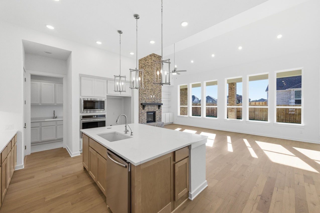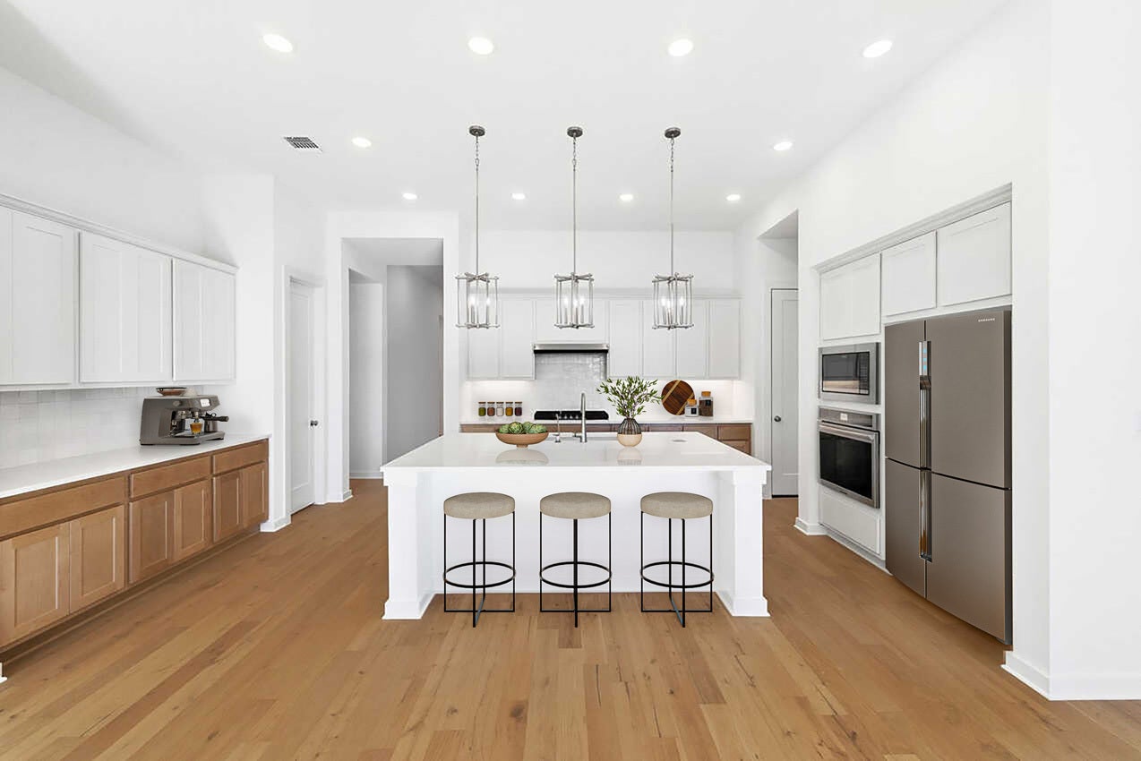 Welcome to 122 Stock Pond Trail, located in the highly sought-after 6 Creeks at Waterridge community in Kyle, Texas. This stunning Highland Homes Birchwood plan sits on a 60-foot homesite and offers approximately 2,848 square feet of thoughtfully designed living space. With 4 spacious bedrooms, 3.5 bathrooms, and a 3-car garage, this home provides the perfect balance of comfort and functionality for today’s modern lifestyle. Inside, you’ll find an open-concept layout highlighted by a gourmet kitchen, expansive family room with a cozy fireplace, and a seamless flow that makes entertaining effortless. The primary suite features a spa-inspired shower upgrade for a true retreat, while the additional bedrooms and bathrooms offer ample space for family and guests. Thoughtful enhancements such as utility room cabinetry with a sink, extra storage in the family room, and a rear brick exterior elevate both style and convenience. Outdoor living is equally inviting with a gas drop on the patio, ideal for grilling or cozy evenings by the fire. Beyond the home, 6 Creeks at Waterridge offers a lifestyle like no other. Residents enjoy scenic greenbelt trails, a resort-style amenity center with pool and playgrounds, a serene fishing pond, and brand-new pickleball courts.