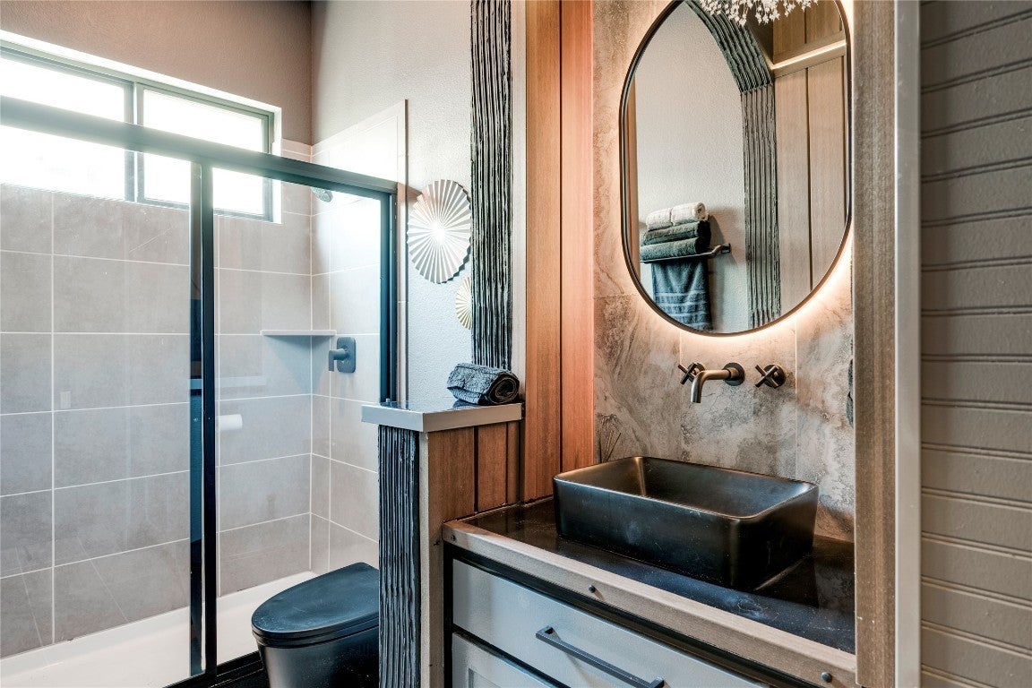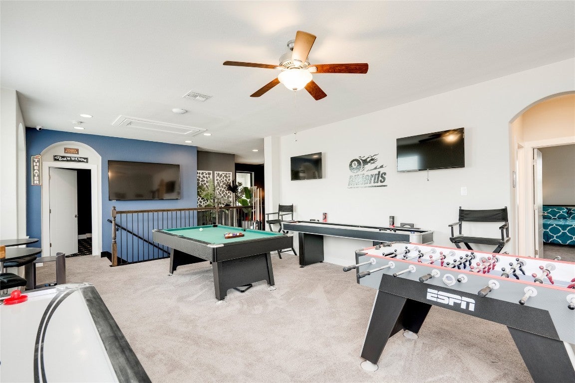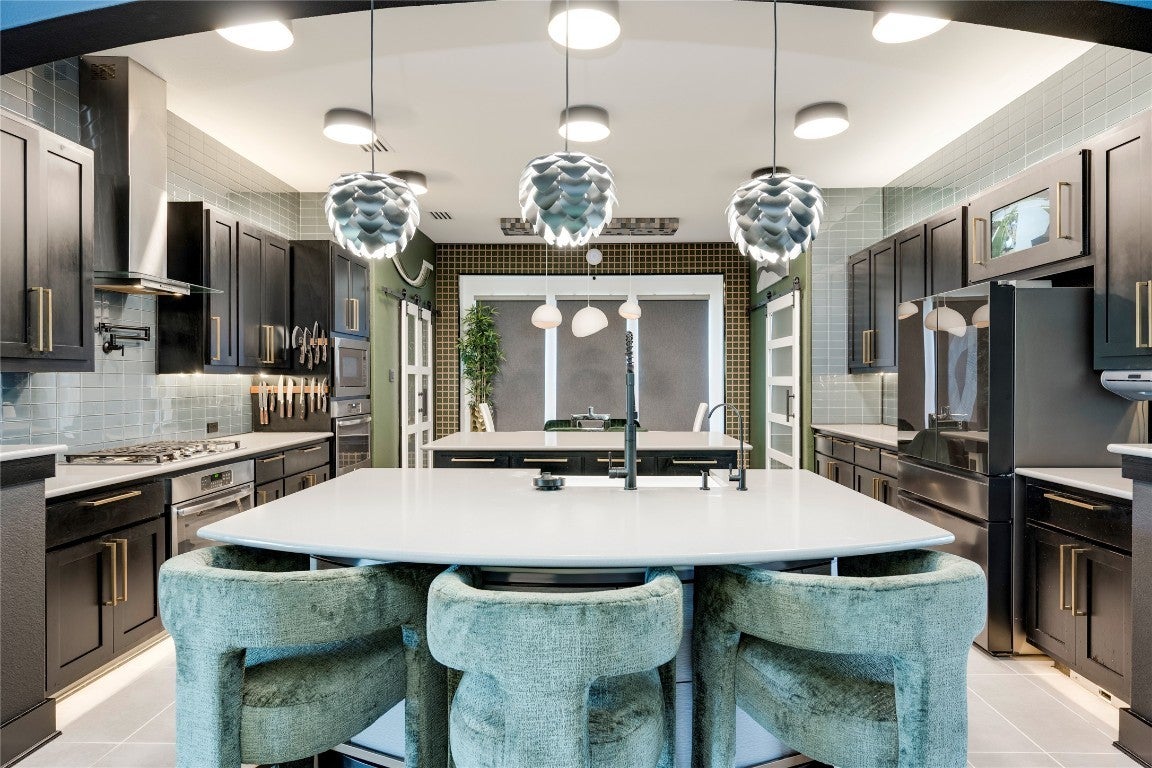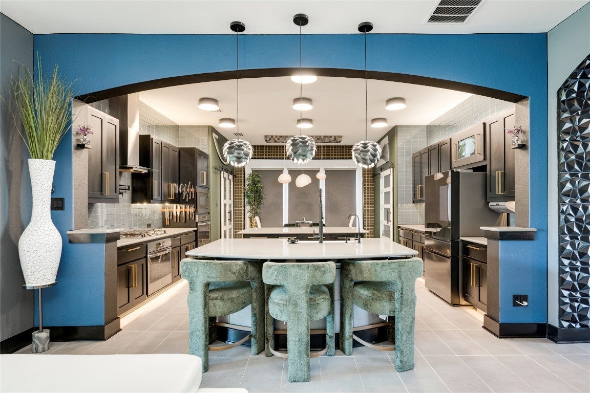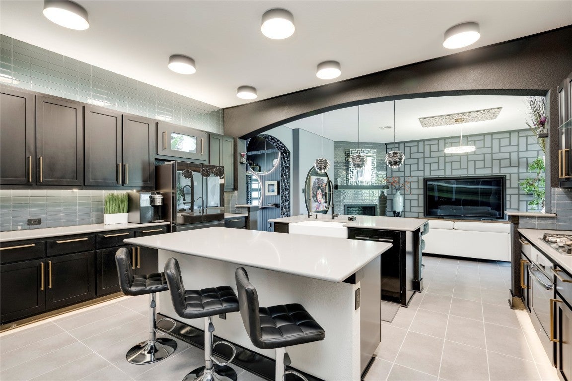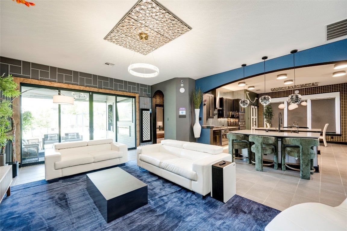Model-perfect, this stunning 5BD/4BA Chesmar Archer 2.0 home in Avalon is unlike anything else on the market. Professionally designed interiors feature tons of upgrades. Furnishings, Network equipment and tools—all negotiable to be included with the home for a true turnkey experience. From the dramatic accent walls to custom built-ins, designer lighting, and premium furniture, every room has been elevated to showcase-style living. The open-concept living room boasts a statement chandelier, modern fireplace, and a sleek media wall with floating cabinetry. The dream kitchen is outfitted with quartz countertops, a bold backsplash, double ovens, commercial-grade vent hood, and a custom oversized island with velvet barstools. The primary suite stuns with custom paneling, showcasing room for a floating king platform bed, mounted flat screen, and spa-inspired bath with freestanding tub and dual vanities. A home office features architectural wall detail and executive furniture, while the dedicated media room includes optional theater seating, projector, surround sound, and blackout drapes. Upstairs, you'll find a huge game room with room for a pool table, poker table, dart board, and vintage arcade cabinet—(offered for purchase). Guest bedrooms are equally stylish and move-in ready. The expansive 3-car garage has been transformed into a workshop showroom with full wall cabinetry, slatwall tool systems, and epoxy flooring. Outdoor living is dialed in with a covered patio, outdoor TV, ample room for lounge seating, and custom lighting—all overlooking a manicured backyard with raised garden beds and fruit trees. Zoned to top-rated Pflugerville ISD schools, minutes to Costco, Stone Hill shopping, and major employers.