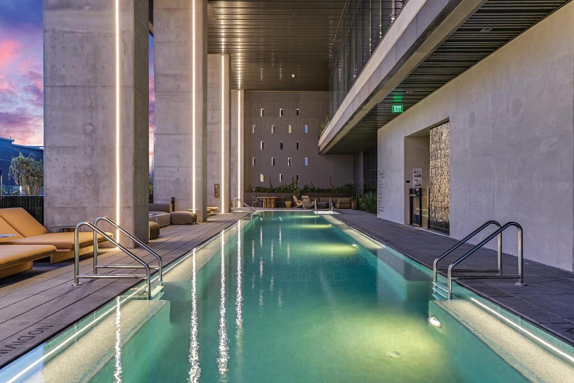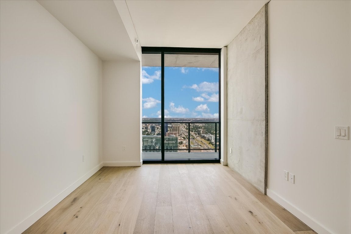 Be the first to experience unparalled luxury at The Modern in this thoughtfully designed 5 bed, 5.5 bath residence with premium northwest facing views. This spacious 3,285 sq ft home features floor-to-ceiling windows framing stunning sunset, city skyline and hill country views, along with a sprawling covered balcony spanning the length of the residence. The chef-inspired kitchen features dark quartzite natural stone countertops and full height backsplash, Italkraft cabinetry, high-end appliances including SubZero refrigerator, Wolf six-burner range and microwave, and Bosch dishwasher. Entertain with ease with the beautifully designed wet bar equipped with SubZero 86-bottle wine fridge with LED lighting and separate temperature controls, refrigerator drawer and freezer drawer with ice maker, and lighted shelving. The elegant primary bath is a welcome retreat with a spacious walk-in shower showcasing a curated selection of designer tiles, separate soaking tub, dual vanity with backlit mirrors and spacious walk-in closet. Three of the secondary bedrooms feature en-suite baths for added privacy. Additional highlights include hardwood flooring and two premium reserved parking spaces. Residents will enjoy over 19,000 sq ft of curated amenities across three levels, including a 25-meter pool and spa, indoor and outdoor lounges with private dining areas, catering kitchen and gas grills, fitness center and yoga studio, dog park and wash station, board rooms and business center, sky lounge, guest suites, and 24/7 concierge service. Perfectly positioned in the Rainey Street District, The Modern offers unmatched access to Austin’s best restaurants, nightlife, and the scenic trail along Lady Bird Lake.