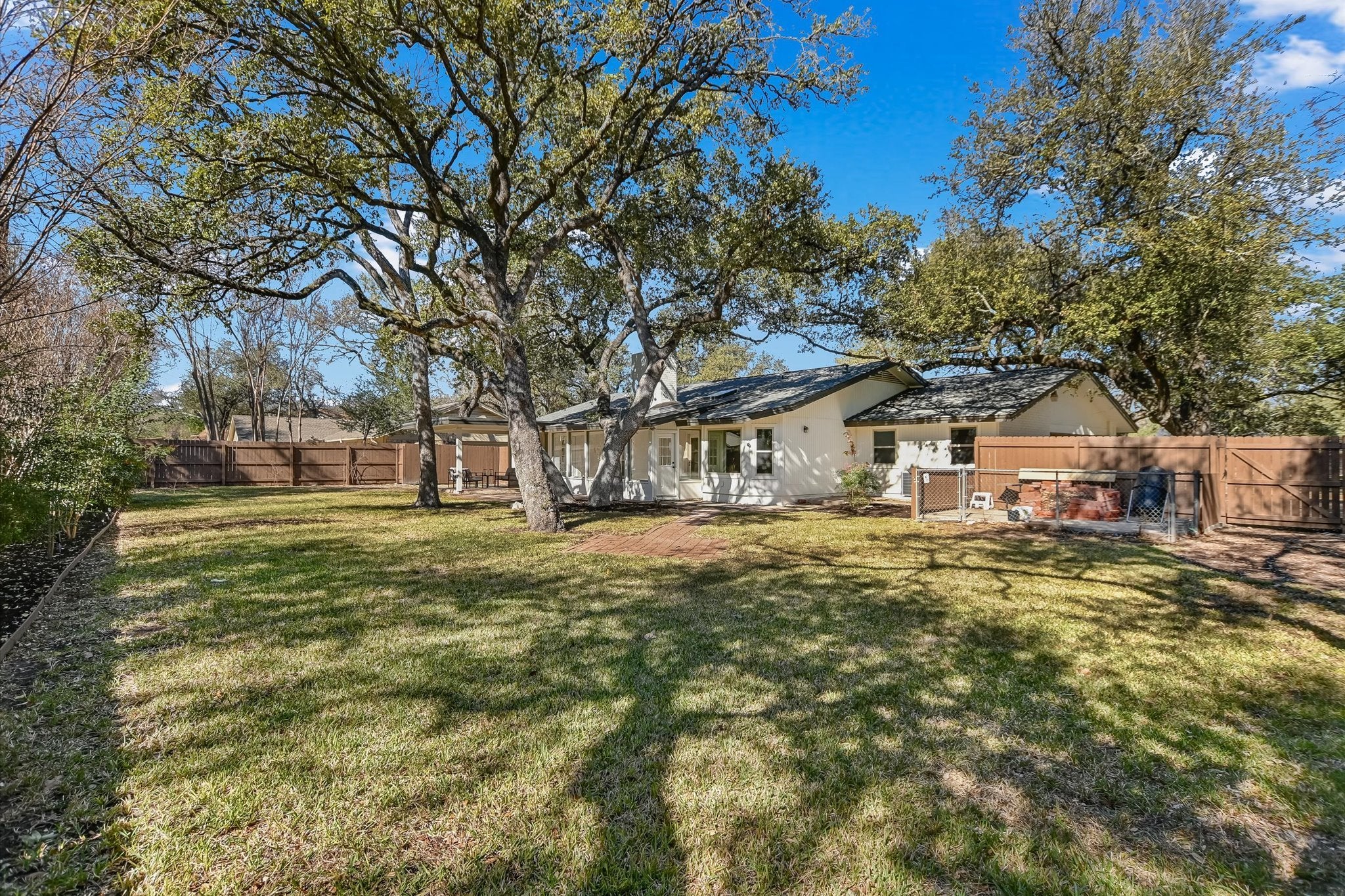 A stunning single-story home featuring 4 bedrooms plus an office, boasting modern updates and no carpet, with light luxury vinyl plank waterproof flooring throughout. The open eat-in kitchen is beautifully designed with quartz countertops, new cabinetry, updated lighting, and stylish hardware. Additional highlights include a separate dining room, a cozy family room with a fireplace, and a versatile bonus room offering expansive views of the backyard. Recent upgrades include a new roof in 2022, a new water heater, and a whole-house water softener system. The spacious backyard provides plenty of space for a pool and showcases tall trees, mature landscaping, and a designated compost area. Room for a double-gate to back yard (currently an oversized single gate). Located in a fantastic family-friendly neighborhood, this home is near Spicewood Elementary School, an IB World School, making it easy to escort your child to school on a golf cart. Westwood High School, consistently ranked among the top public high schools in Texas for academic excellence and college readiness, further enhances the appeal of this location. Impressively, Westwood led Texas with 63 National Merit Semifinalists in 2025. Balcones Country Club with golf course, pool, tennis courts by separate membership. Balcones Sharks swim team, tennis lessons, golf lessons also available to club members. New Roof 3/2022 See Seller Comments to Repaired purchase Inspection items attached in mls documents.