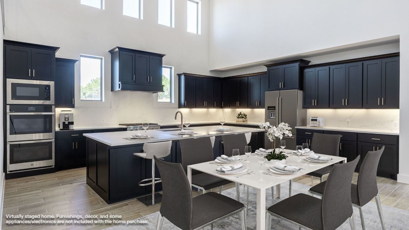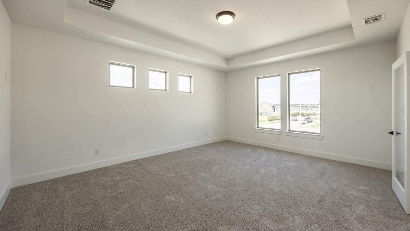 READY FOR MOVE-IN! The grand entryway unfolds to reveal a sweeping curved staircase. French doors open into a home office, while across the hall, the formal dining room awaits. Step into the two-story family room, which offers a warming fireplace and a wall of windows. The morning area seamlessly connects the living space to the kitchen, which boasts an island with built-in seating, ample counterspace, a walk-in pantry, and a butler's pantry, with easy access to the utility room. The primary suite features a wall of windows and French doors that open into the primary bathroom. This retreat includes dual vanities, a freestanding tub, a separate glass-enclosed shower, and two walk-in closets. A private guest suite off the morning area provides comfort. Upstairs, discover a game room with expansive windows and an adjoining media room for entertainment. Secondary bedrooms with walk-in closets and a Hollywood bathroom, along with an additional guest suite, complete the second floor. Step outside to the two-story extended covered backyard patio. A mudroom is just off the three-car garage.