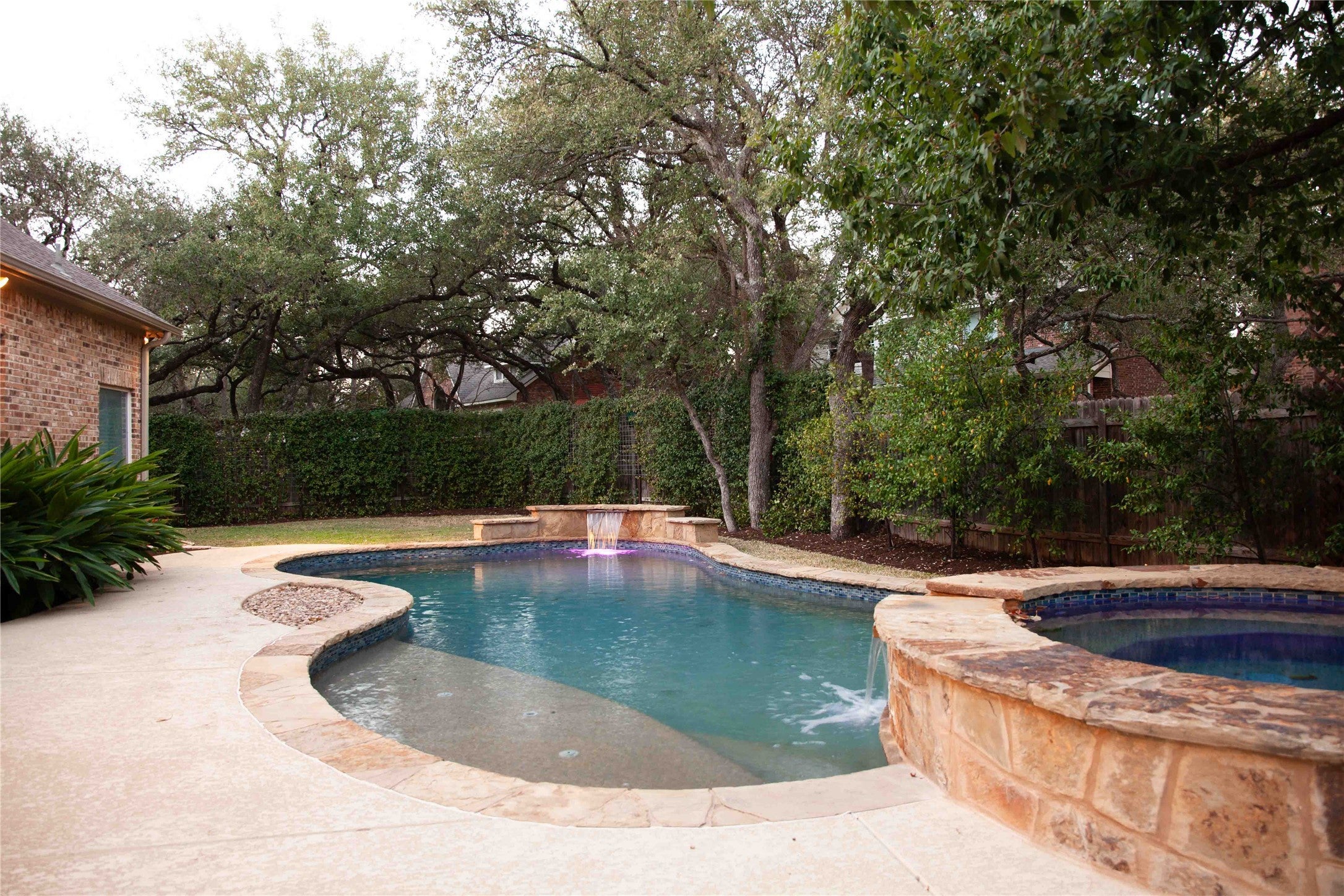 This is the one! This stunning home in Circle C Ranch truly has it all. Thoughtfully updated, it offers 5 bedrooms, 4 full bathrooms, a private office, an oversized game room, a media room, and a three-car tandem garage. Step outside to your own backyard retreat featuring a pool, hot tub, and a large grassy yard on a pie-shaped cul-de-sac lot. The beautiful open kitchen is designed for gathering, with double islands, quartz countertops and backsplash, under-cabinet lighting, a walk-in pantry, stainless steel appliances, double ovens, and a third-rack LG dishwasher. The home currently features an electric cooktop, with a gas valve already installed below for an easy future conversion. The kitchen flows seamlessly into the living room, where you can enjoy the upgraded fireplace surround and views of the pool. The layout is ideal with the primary suite downstairs as well as a guest bedroom, a full bathroom, an office and formal dining room. Upstairs features 3 more bedrooms, 2 full bathrooms, a massive game room plus a media room. The 3-car tandem garage is packed with upgrades, including a Tesla charger, wall-mounted LiftMaster app-controlled garage door opener, RainMachine app-controlled irrigation system, and a Rinnai tankless water heater. Holiday decorating is effortless with app-controlled eave outlets. The roof was replaced in 2022, and the heated pool and spa were built in 2017. Walk to Clayton Elementary and the neighborhood splash pool, and enjoy community events like the annual Turkey Trot and Food Trailer Nights! This home is also zoned to Gorzycki Middle School and Bowie High School. Residents of Circle C enjoy four community pools, miles of trails, a playground, sand volleyball court, basketball court, soccer fields, disc golf, and more. Just 15 minutes from downtown Austin and the airport, with restaurants and shops nearby, this location offers the perfect balance of lifestyle and convenience. This property truly has it all.