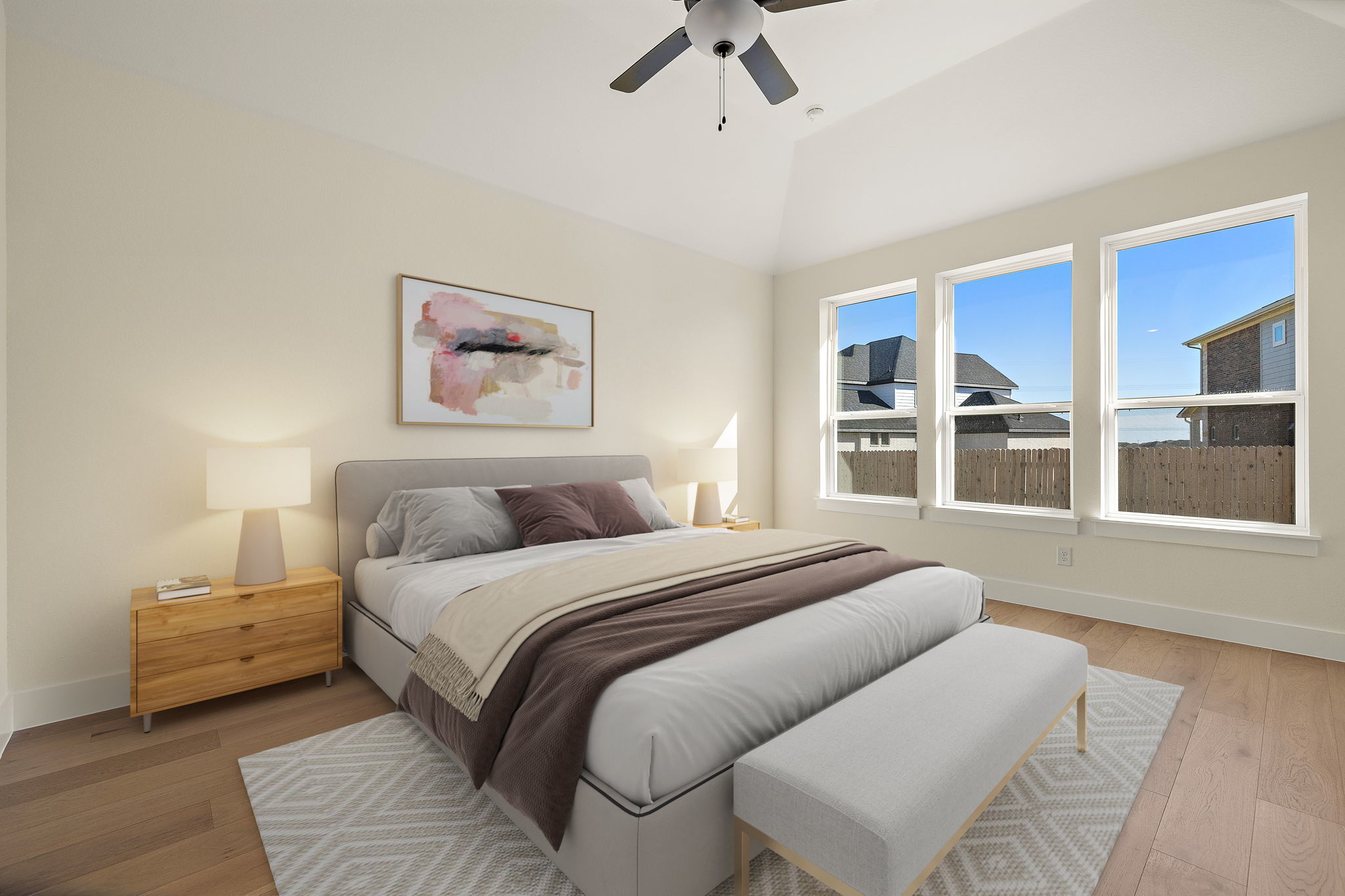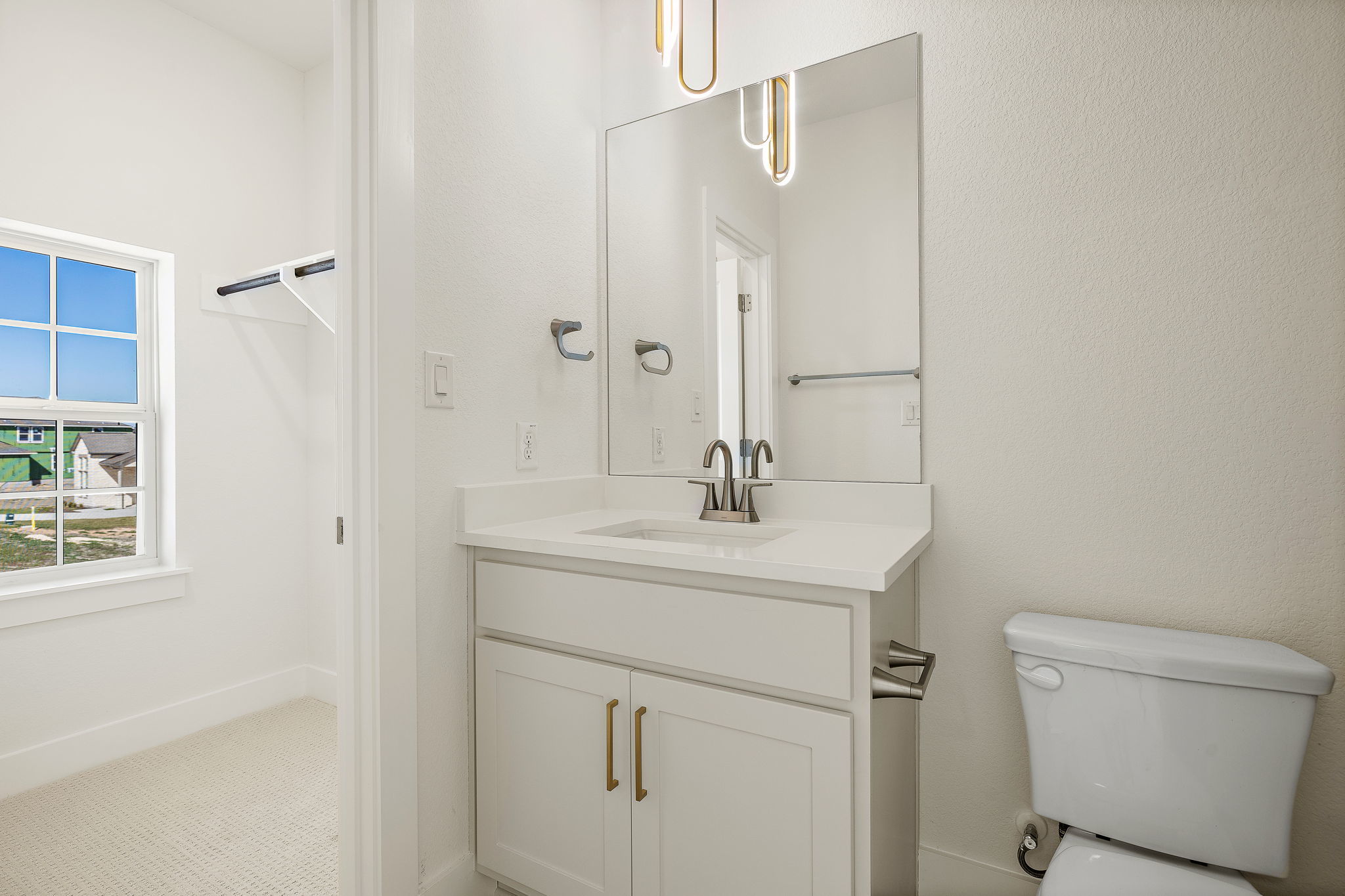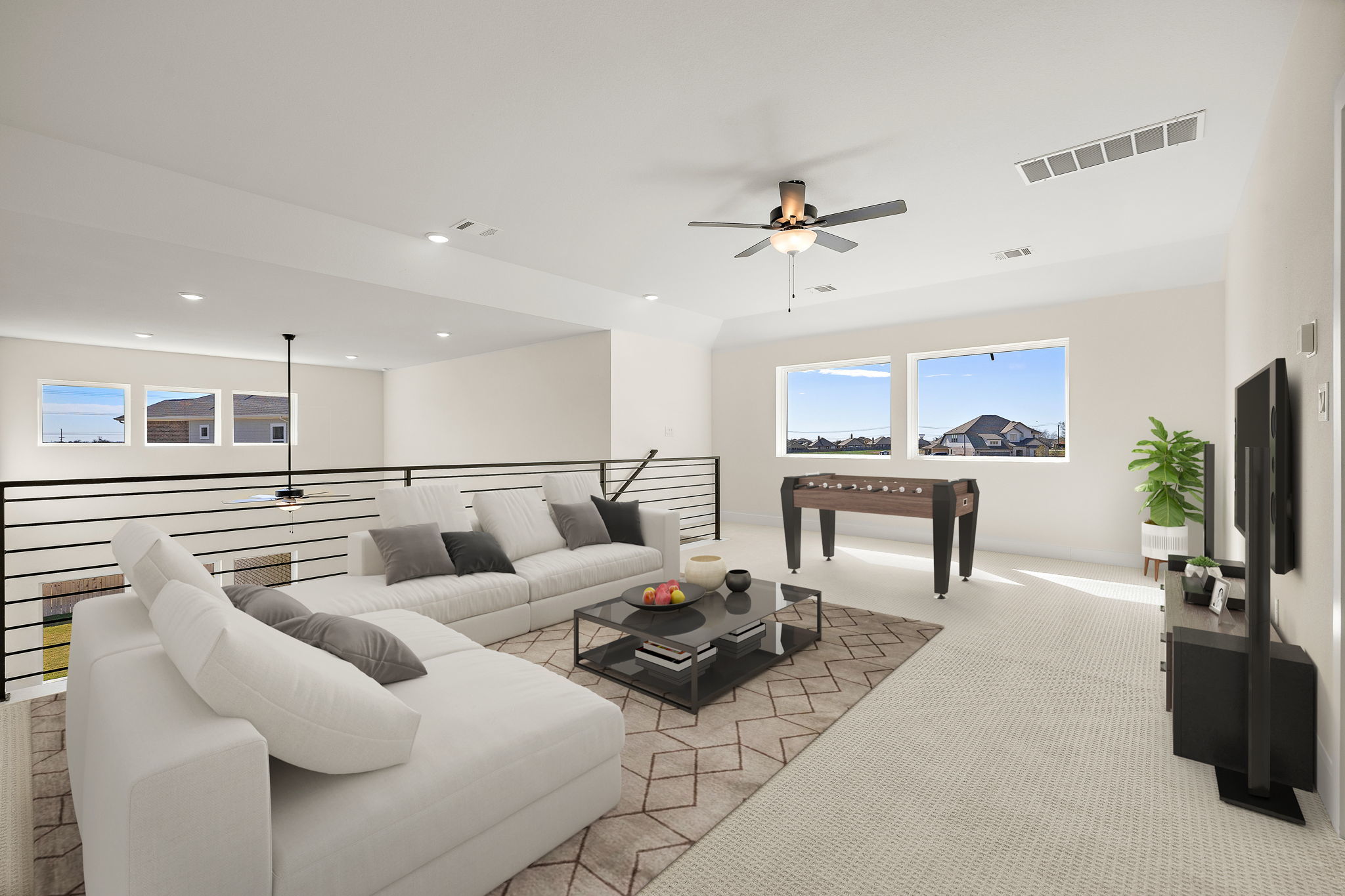 Brand New Travis floor plan by Capitol Communities. Over $60k in upgrades included! This stunning 2-story home offers 5 bedrooms and 5 full bathrooms, with 2 bedrooms and 2 baths on the first floor. The main level also features a private study, while upstairs you’ll find a spacious game room overlooking the soaring 2-story family room. Every bedroom has a large closet, with the oversized primary closet offering direct access to the utility room. The kitchen is designed with ceiling-height cabinets, a large island, and plenty of counter space. The primary suite includes a walk-in shower, soaking tub, and extended vanity area. Natural light flows throughout, and the large covered back patio makes outdoor living easy. This west-facing corner home sits across from the future amenity center. Energy-efficient features include spray foam insulation, a tankless water heater, low-E windows, and Energy Star appliances. Additional highlights: stone/brick exterior, composite shingle roof, 2-car garage, and full sprinkler system. Contact the sales representative for details on current incentives!