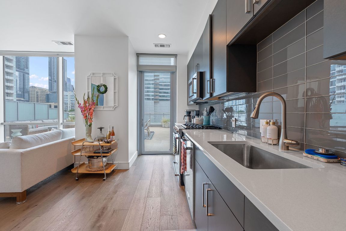Behold - a rare gem in the heart of downtown Austin, an extraordinary condo that offers unmatched views, style, and space unlike anything else under $2.5 million! This one of a kind residence can easily accommodate 20+ guests without ever feeling crowded. We challenge anyone to find another downtown condo sold in the past five years that rivals this home's combination of livability, layout, and luxury at this price point. The show stopping 900 square foot private balcony surpasses what most penthouses offer, an outdoor space of this scale is truly exceptional. From the moment you walk in, you’ll be struck by the smart design: an abundance of counter space, ample cabinetry, and an open layout that proves once and for all; it's not about square footage, it's about how you use it. Every inch of this home is outfitted with sleek, modern finishes, and not a detail has been overlooked. Floor-to-ceiling windows flood the space with natural light and offer stunning views of downtown that will remain unblocked for years to come, thanks to the quiet electrical substation directly across the street. No looming towers popping up overnight, just peace of mind and a lasting view. Within walking distance, you’ll find the popular Town Lake hike-and-bike trail, along with countless restaurants to explore. Prefer to host at home? Trader Joe’s is right next door, making it easy to pick up everything you need to prepare a fresh, home-cooked meal for your guests. Don’t miss your chance to own one of the most unique and sought-after condos in all of Austin, schedule your showing today!