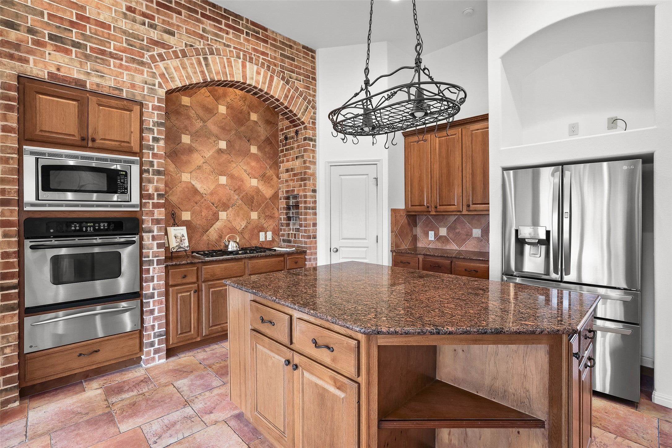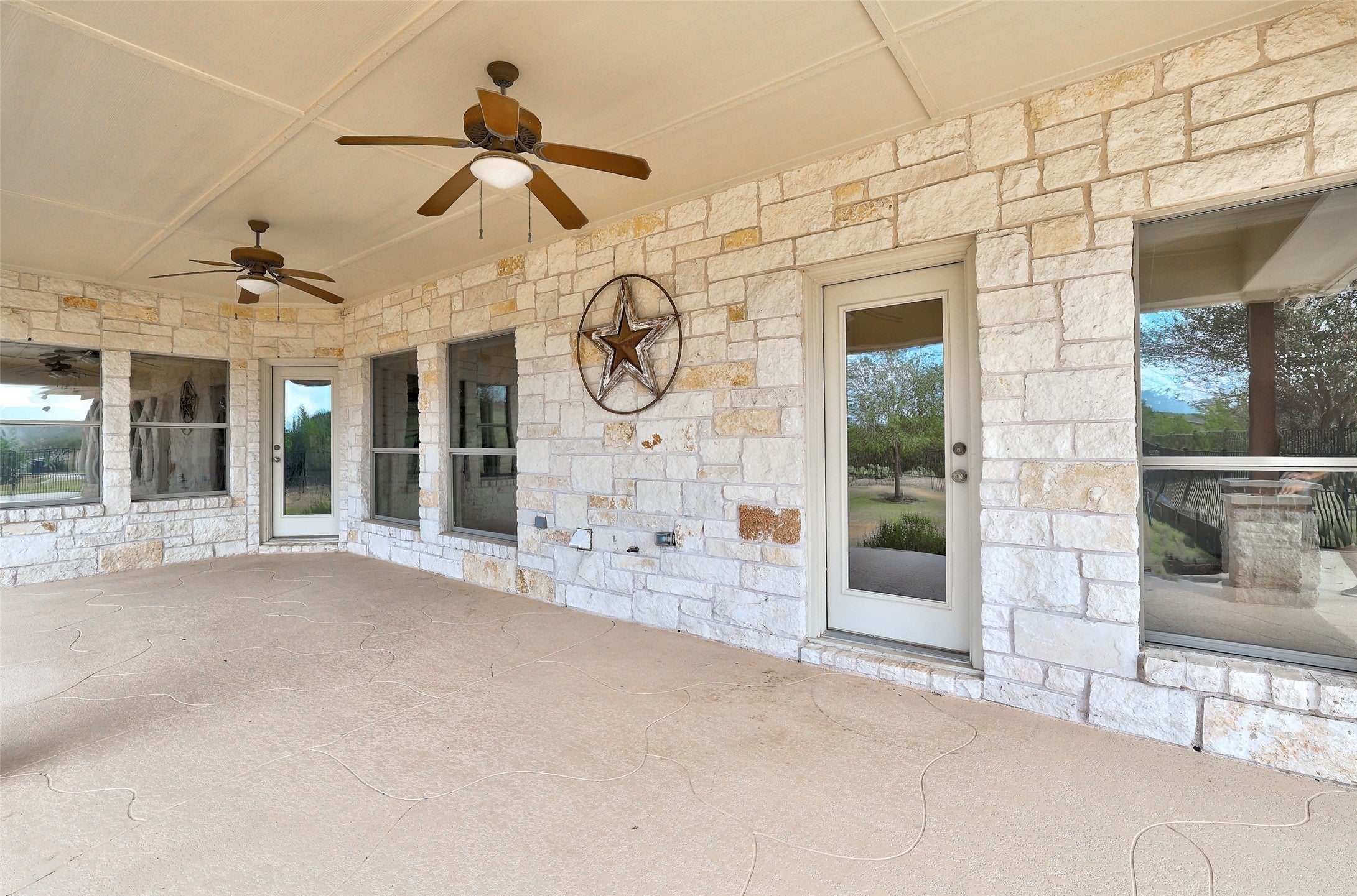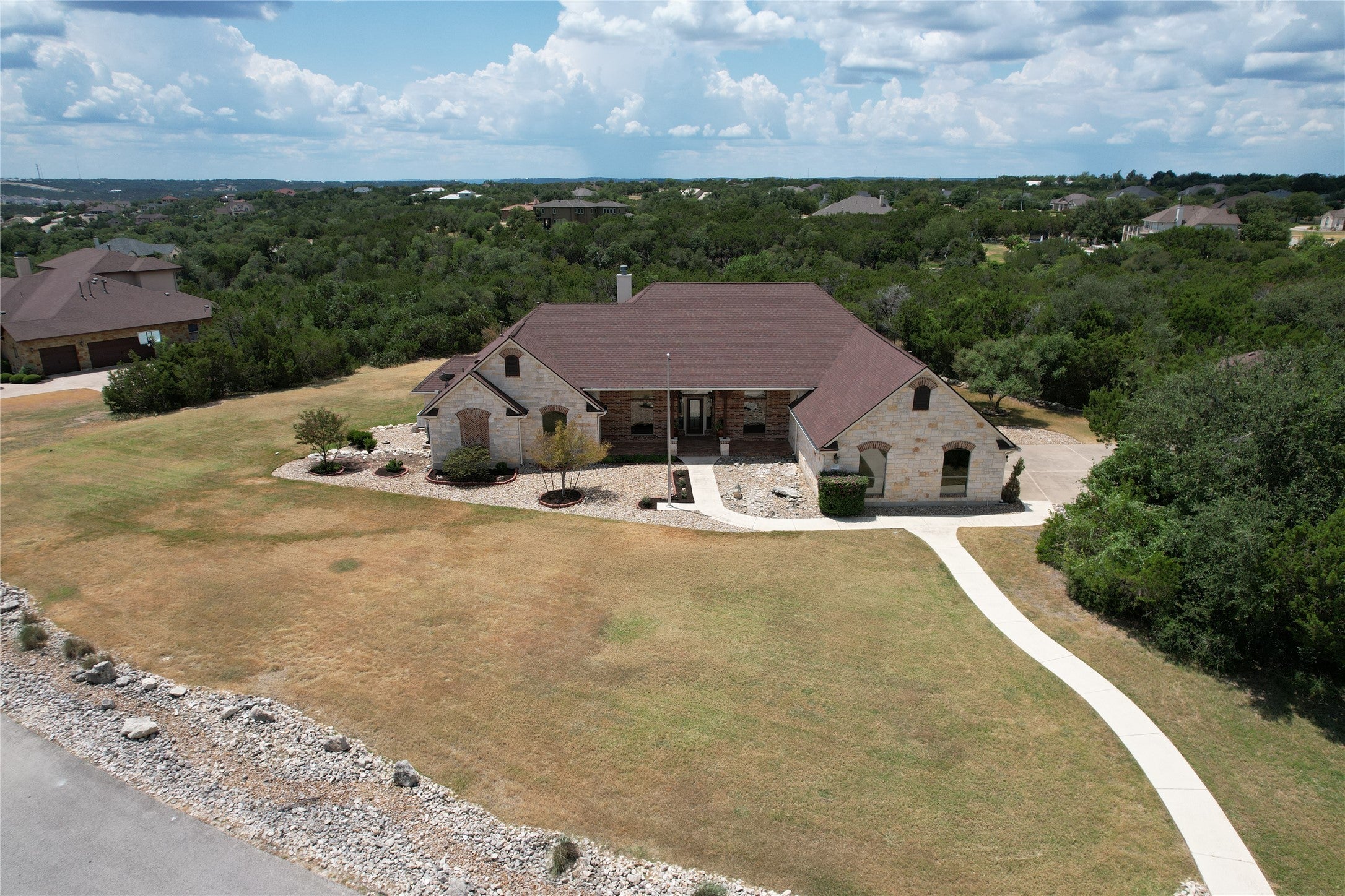 Grand Mesa in Crystal Falls! Nestled on 2.18 acres with breathtaking canyon views, this custom-built Texas limestone home with brick accents offers Hill Country living at its finest. The thoughtfully designed layout features a private primary suite with a huge walk-in closet outfitted with Container Store Elfa shelving, a spa-like bath with soaking tub, dual vanities, and a walk-through shower with dual tandem shower heads. A dedicated workout room sits just off the primary bath for ultimate convenience, and this could be an optional 4th Bedroom. The gourmet kitchen boasts a brick-arch accent over the gas cooktop, stainless steel appliances, and open sightlines to the spacious living areas. A private study offers built-ins and lighted art niches, while a large game/bonus room at the rear of the home provides space for entertaining or hobbies. Enjoy outdoor living with a wrought-iron-fenced backyard, full front and back sprinkler system, and a matching outbuilding with electricity—ideal for a golf cart, mower, or workshop. The oversized 3-car garage features overhead storage and access to a massive attic. Professionally installed whole-house Generac generator for automatic backup power, keeping essentials running during outages. Located in the gated Grand Mesa community, this property offers serene privacy, gorgeous sunsets, and proximity to Crystal Falls Golf Club, shopping, dining, and top-rated Leander ISD schools.
