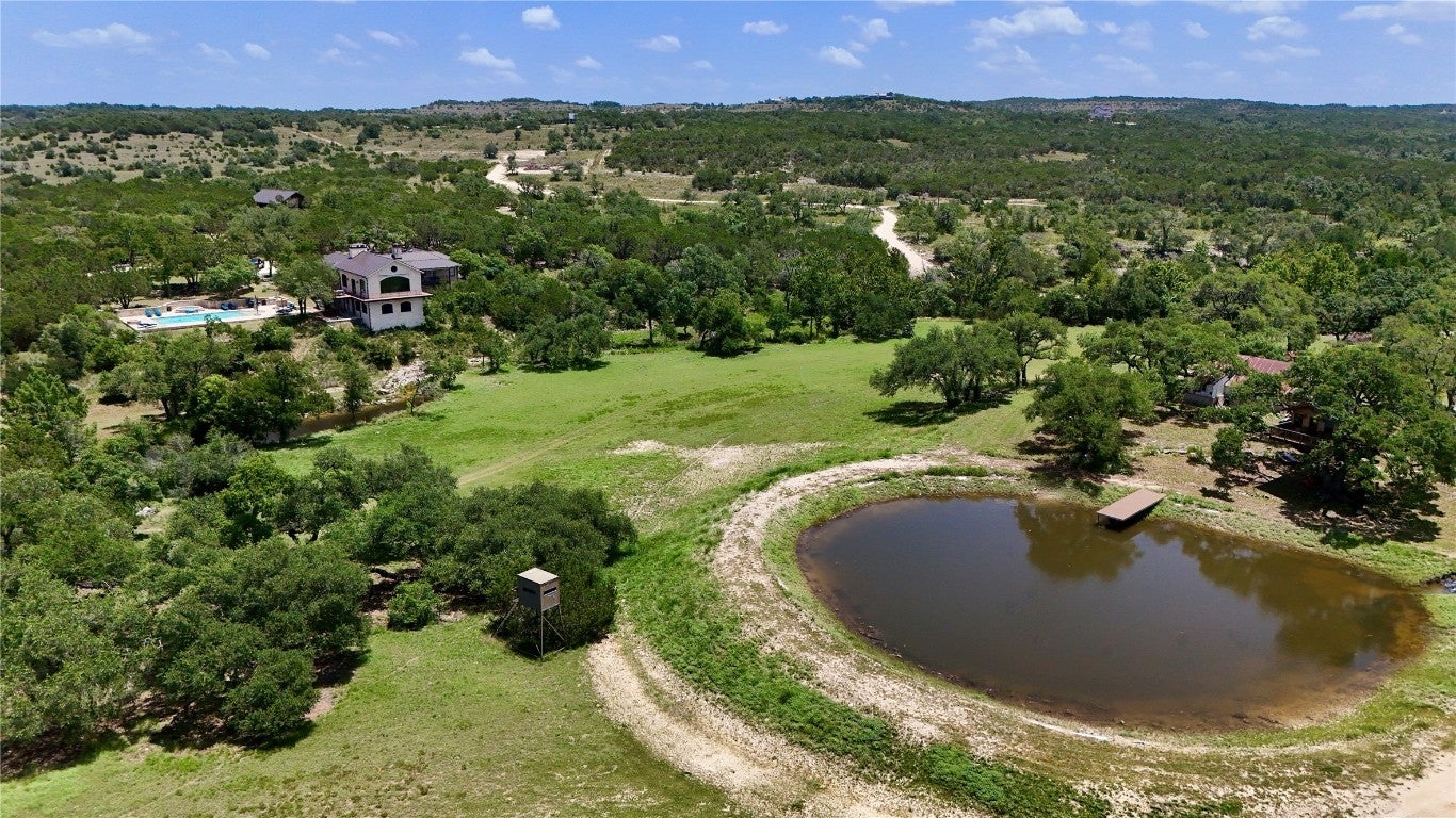 Welcome to Seven Falls Ranch—a 39.5-acre live water Hill Country oasis offering a rare mix of scenic beauty, privacy, and turnkey improvements. Located off Mt. Gainor Rd. with over 3,000’ of road frontage, this unrestricted property is just 15 min to Dripping Springs/Wimberley and 50 min to downtown Austin. Land + Water Features: Elevated views from the main home provide constant breezes and stunning sunsets. The land features varied topography with multiple homesites, open pasture at the entrance, and a wooded creek bottom lined with Live Oaks and hardwoods. A newly built lined pond and 3,300' along spring-fed Cat Hollow creek and the wet weather Storm Creek with five low-water crossings and seven waterfalls enhance the property’s natural appeal. Both creeks merge on the property to then feed into the nearby Onion Creek. The land is teeming with Whitetail Deer and Turkeys and is mostly surrounded by large neighboring ranches, perfect for privacy and wildlife. Three large hunting blinds and nine feeders are in place for hunters and wildlife lovers alike. Main Home + Improvements: The 5,400 sqft 5BD/3BA masonry home blends rustic charm with modern upgrades. Highlights include a spacious family room with wet bar and fireplace, pool room, formal living, and office. A large wraparound deck, covered porch, huge pool and spa, outdoor fire pit, and grilling area offer exceptional outdoor living and entertainment options. Additional improvements include a 1BD/1BA foreman’s cabin, multiple barns/sheds/garage (one convertible to guest quarters), and a standout air-conditioned treehouse with bunk beds and a prime pond view—perfect for kids or guests. Other Features: Well, septic, power, and internet in place. Unrestricted. Ag-exempt through wildlife management (2024 taxes: $6,205). Split between Dripping Springs and Wimberley ISD—two of the Hill Country’s top-rated districts.