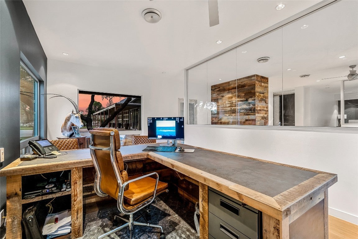 2606 RR 620 N is a truly distinctive property ideally located between Lakeway and Steiner Ranch, offering a rare blend of luxury, functionality, and future potential. Currently utilized as luxury office space, the property could easily be converted back to residential use, offering even greater flexibility for future owners. Originally built as the caretaker’s home for a 50-acre waterfront estate, the property was completely reimagined in 2017 into a high-design, luxury office space that has served as a corporate headquarters. This thoughtfully transformed space serves as a refined environment for daily operations, client entertainment, and private events. Set on a gated one-acre lot within Austin’s ETJ in western Travis County, the property offers unmatched flexibility and a wealth of future possibilities. The property encompasses approximately 2,990 square feet of interior space across two beautifully designed structures. Building 1 currently serves as the principal’s office and features a welcoming foyer, two private offices, a conference room, full kitchen, mud room, private bathroom with shower, and generous closet and storage space. Building 2 includes a receptionist desk, reception lounge, copy room, four private offices, co-working space, second conference room, kitchen, and two private bathrooms. Design and craftsmanship are evident throughout, with bespoke finishes, custom millwork, architectural detailing, and thoughtful landscaping that reflect a commitment to quality and aesthetics. Outside, the property is enhanced by an in-ground pool, hot tub, lush landscaping, and ample parking—all fully fenced and gated. Whether you're looking to make a bold statement for your business or seeking a flexible property with creative potential, 2606 RR 620 N offers a rare and refined opportunity in one of Austin’s most desirable corridors.