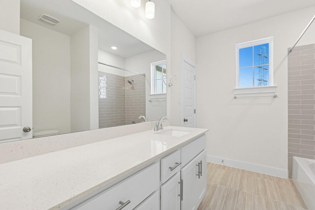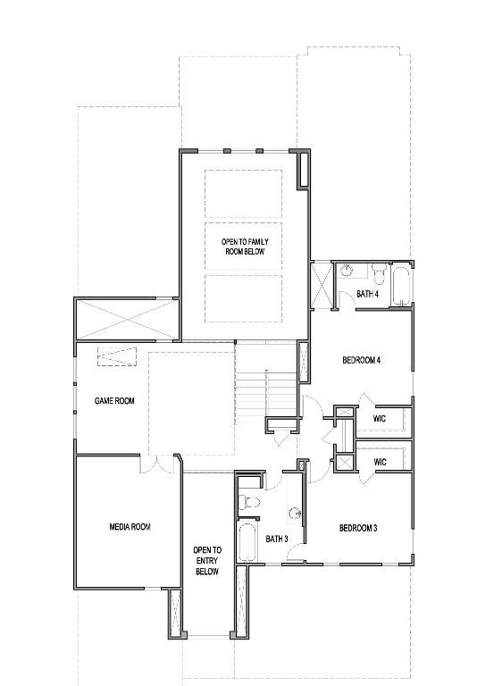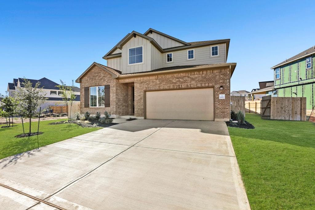 The Oltorf is a two story with approximately 3,084 sf of living space. 4 bedrooms (primary plus 1 guest room down), 4 full bathrooms, powder bath, formal dining, home office, game room, media room, luxury master bathroom, covered patio, and a 3-bay tandem garage. The homesite is approximately 8,798sf and faces East. The spacious kitchen features built-in stainless-steel appliances, quartz countertops, under cabinet lighting, 42" upper cabinets and more. The flooring is hard surface throughout the main areas, tile in the bathrooms, and carpet in the bedrooms. The quality construction includes; 10’ ceilings and 8’ doors throughout downstairs, open to below entry and family room, 4 sides masonry, Zip System sheathing, tankless water heater, and much more.