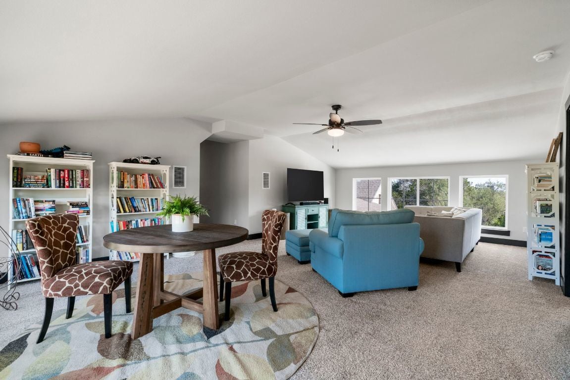 Welcome to 125 Brown Saddle Cove, where refined luxury meets relaxed Hill Country living in one of Driftwood’s most sought-after gated communities! Custom built in 2021, this 3,664 square foot estate captures the perfect balance of sophistication, functionality, and Texas charm, all set on a tree-filled 1.82 acre corner lot that offers rare privacy and space to breathe. Vaulted ceilings, exposed wood beams, and a grand stone fireplace create a dramatic yet inviting main living area, while walls of windows fill the home with natural light. The heart of the home is a true chef’s kitchen, anchored by a 48 inch ZLINE range with double ovens, quartz countertops, abundant cabinetry, and an oversized island built for gathering. Every surface has been thoughtfully designed for beauty and performance, from the durable Mohawk RevWood flooring to the exquisite tilework.The primary suite is a sanctuary of comfort with high ceilings, a spa worthy bathroom, and a closet designed to impress. Four additional well proportioned bedrooms, a large study (can be another bedroom), and an upstairs bonus living area with a full bath make this home ideal for both quiet relaxation and lively entertaining. Energy efficient features such as blown cellulose insulation, PEX plumbing, and a hybrid electric water heater ensure modern comfort and sustainability. La Ventana offers an unparalleled lifestyle. Enjoy three resort style pools, a relaxing spa, tennis and pickleball courts, a putting green, a driving range, and scenic equestrian trails. Residents even share ownership of the community’s iconic longhorns, adding to its unmistakable Hill Country charm. Located 25 miles from Downtown Austin and minutes from local favorites like The Salt Lick BBQ and Duchman Family Winery, this home delivers the ultimate Driftwood experience, luxury living surrounded by nature, community, and timeless Texas beauty. Schedule your private showing today and discover why life in La Ventana is truly extraordinary.