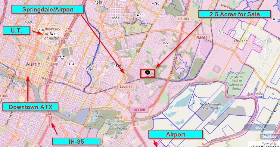 2+/- acres of raw land available in East Austin. Lot is currently land locked. adjoining half acre lot (3 residential lots in one) is also for sale, thus providing street access. Great opportunity for developers 2.5 acres available for sale. (5405 Prock Ln) Contact listing agent for more details.