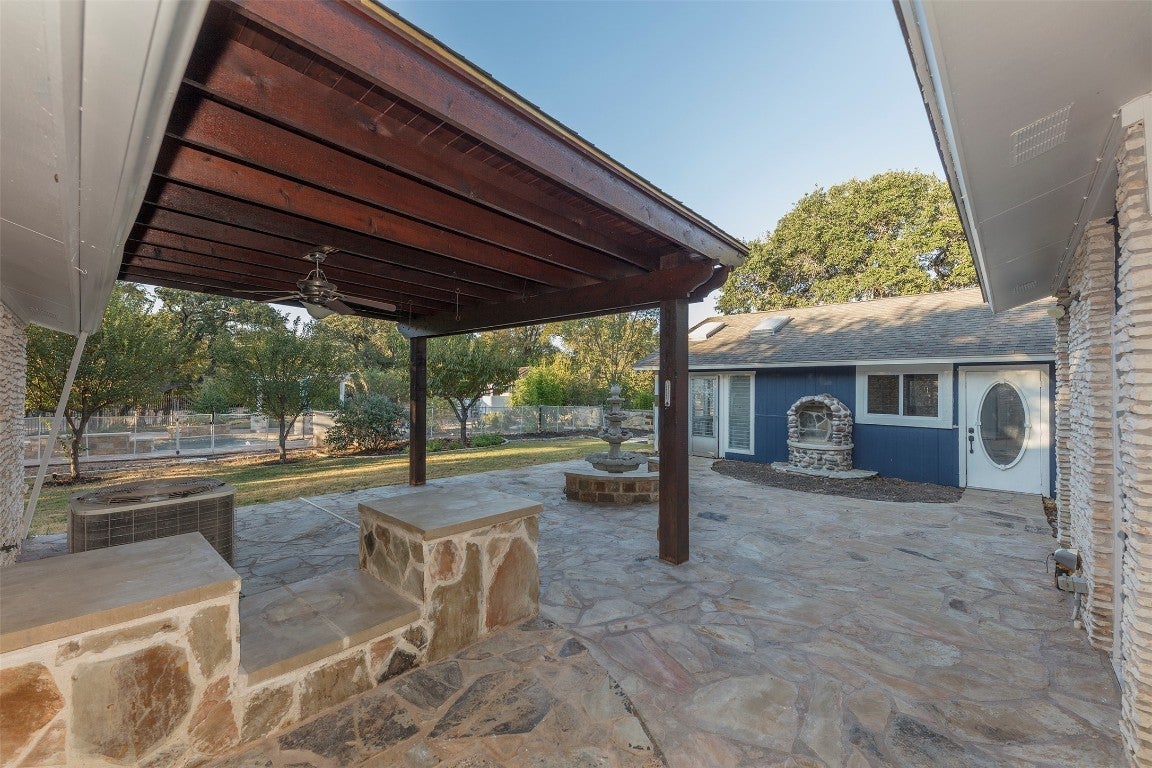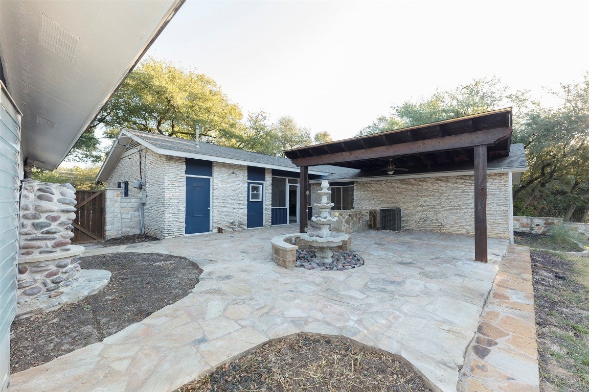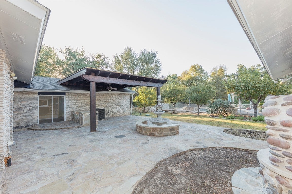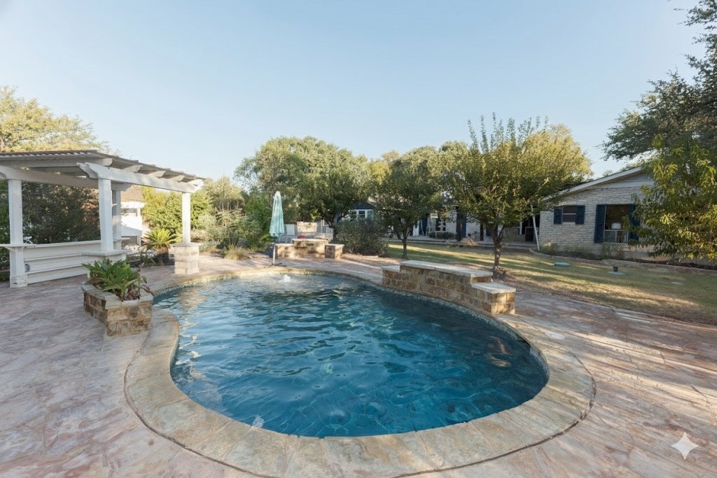 Welcome to 3809 Wyldwood Road, a private Hill Country retreat just minutes from the heart of Austin. Nestled on over three acres of lush, tree-covered land, this serene property blends modern updates with natural beauty, offering a lifestyle that feels both secluded and connected. The main home and guesthouse have been meticulously maintained and thoughtfully improved. A new roof with architectural shingles was added in 2021, and the property features a recently built pool (2020), extensive retaining walls and drainage systems along the creek, and a well with new pumps and a 5,000-gallon storage tank installed in 2022. The home's outdoor spaces shine with added lighting, Wi-Fi-enabled irrigation, and multiple entertaining areas, including a pergola, ball wall, and basketball court. Inside, you'll find a comfortable, updated layout with newer LG appliances, a 2022 water heater, and a whole-home water softener and filtration system. The guesthouse is equally well equipped, featuring a mini-split with heat (2024) and a tankless water heater (2022), making it perfect for guests or multi-generational living. Every detail has been considered for comfort and peace of mind, from the 2023 electrical panel upgrade with a transfer switch for a generator to the septic system's recent performance test and pump service. The property also boasts fruit-bearing peach, plum, apple, and persimmon trees, as well as colorful bluebonnets and wildflowers that bloom year after year. This one-of-a-kind property combines the charm of country living with the convenience of modern upgrades a true Austin sanctuary ready to be enjoyed.