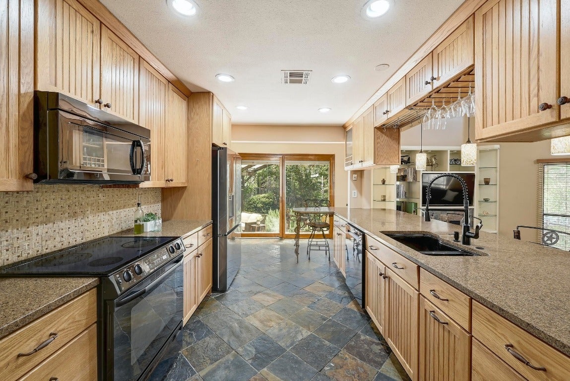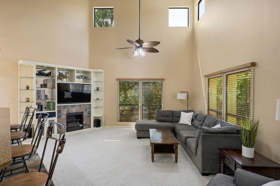 OFFERING UP TO $10,000 TOWARDS A RATE BUY DOWN! A one-of-a-kind home in the highly revered Old Lakeway neighborhood that is in close proximity to Lakeway City Park on Lake Travis. This sprawling two-story home blends artisan touches with modern style and everyday comforts at every corner, creating a unique and comfortable living experience. As you step inside, you're greeted by an inviting open floor plan that seamlessly connects the kitchen and living room that is bathed in natural light and features soaring ceilings that enhance the warm atmosphere. The formal dining room invites you to host memorable gatherings, complimented by a spacious kitchen with modern appliances and stylish finishes. Adjacent to the formal dining area, you'll find a cozy, dedicated office that serves as a serene retreat for productivity. With a tranquil view of the patio, this space is ideal for focused work or creative inspiration. The home also features brand new carpet, slate tile floors, and custom wooden stairs. The backyard is a gateway to your own private garden retreat complete with shade trees, covered patio and courtyard, and vibrant greenery. This backyard setup is perfect for unwinding after a long day, gardening, and entertaining friends and family. The fenced yard provides a secure space for children and pets to play, while modern improvements throughout the home offer style, space and convenience. Each spacious bedroom boasts its own private bath, tall ceilings and a balcony patio, ensuring comfort and privacy for everyone in the household. The primary bedroom features a high ceiling, two closets, renovated bathroom with spacious walk-in shower and private balcony patio. This is a rare find in Lakeway. The unique and spacious design, modern upgrades throughout the home, and spectacular multi-level backyard is a must see in person. Don't miss the opportunity to make this Old Lakeway gem your own!