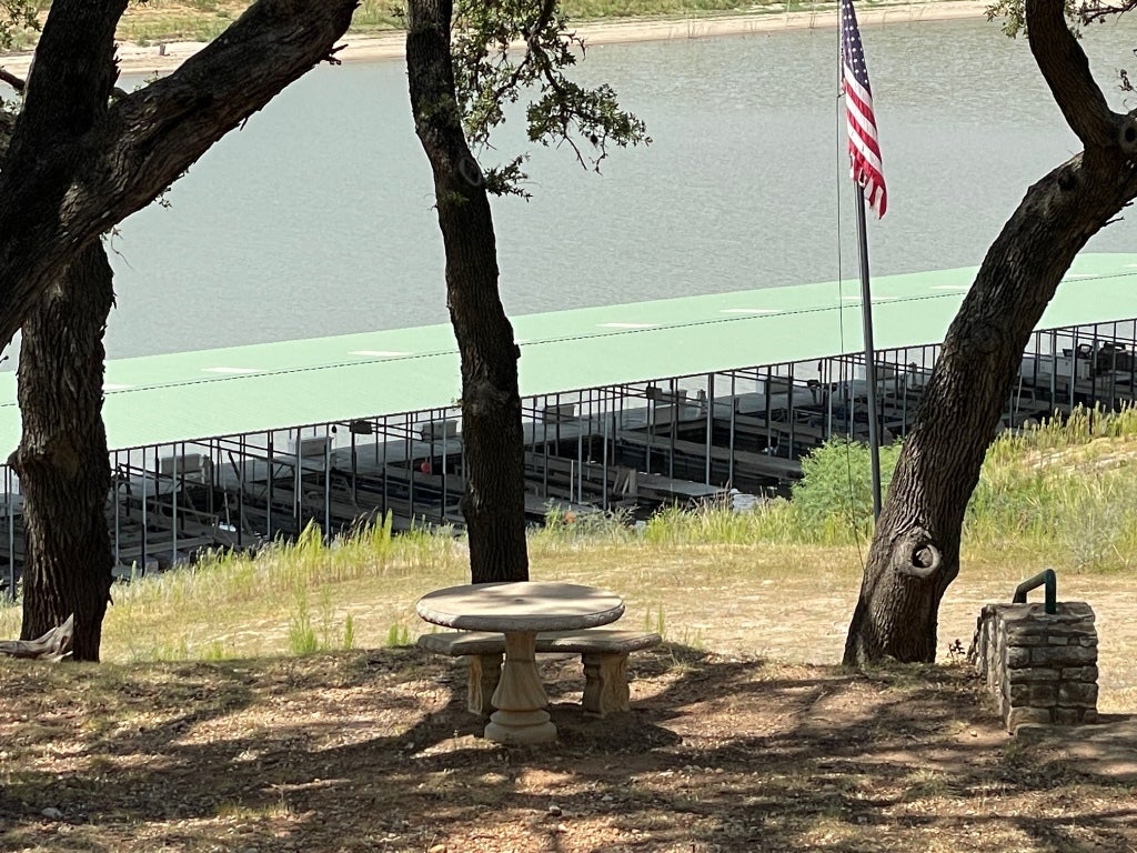 Ridge Harbor on Lake Travis! Gated community with 2 boat ramps, inviting pool, tennis/pickleball courts, waterfront picnic area. There is a marina with boat slips for lease or for sale. Lot 80 goes from street to street with lots of room for your home. Minimum sq.ft. is 2500, private water & sewer, internet, and underground utilities. Only 20 minutes to Bee Cave or Marble Falls for shopping. Lot is not cleared but has character and trees.