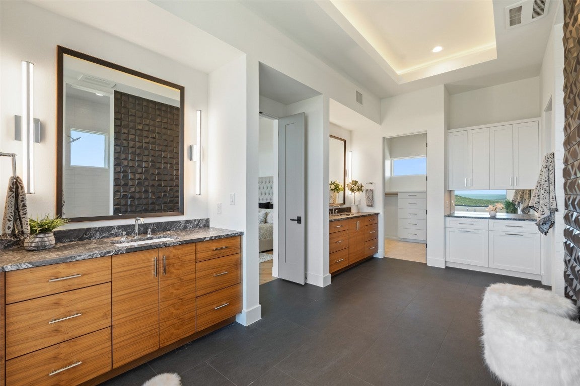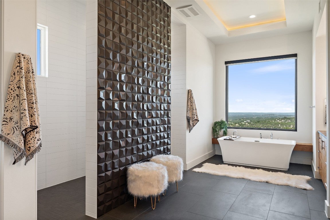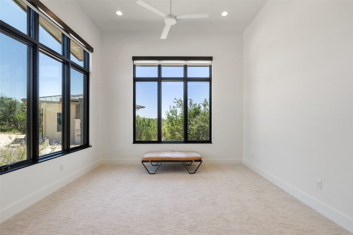 Discover the pinnacle of modern Hill Country living at 416 Julieanne Cove- a privately gated estate nestled on nearly 29 acres of pristine landscape in West Austin. Designed and built by renowned John Siemering Custom Homes in 2018, this one-of-a-kind retreat offers breathtaking panoramic views, unrivaled privacy, and exceptional craftsmanship throughout. Set at the end of a long private driveway, this striking residence is sited to maximize its dramatic vantage point over the rolling hills. Inside, interiors curated by Jennifer Garner Interiors blend bold sophistication with natural elegance, balancing comfort, functionality, and luxury. An expansive open-concept layout offers effortless flow between living, dining, and entertaining spaces, all framed by soaring wood-beamed ceilings and walls of glass that bring the outdoors in. The chef’s kitchen is a true showpiece, featuring Thermador appliances, custom black cabinetry, and a dramatic granite island. The main-level primary suite is a serene escape with sweeping views, while additional bedrooms, a dedicated office (or optional fifth bedroom), and an upstairs game room with full bath provide ample space for family and guests. Every detail of this home was designed with efficiency and comfort in mind- foam insulation, zoned HVAC, tankless water heaters, whole-house reverse osmosis system, AV wiring, and automatic window shades ensure seamless, high-performance living. Step outside and embrace a world of endless possibilities- savor the art of outdoor cooking in the summer kitchen, unwind beneath the covered terrace in the company of family and friends, or let the night sky captivate you as you stargaze from the balcony. There's room to add a guest house, pool, barn, sport court, or equestrian facilities- all while enjoying absolute seclusion in a premier Hill Country setting. A rare opportunity to own a modern luxury estate with uncompromising views, room to grow, and unparalleled privacy.